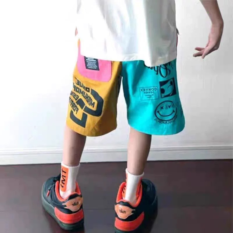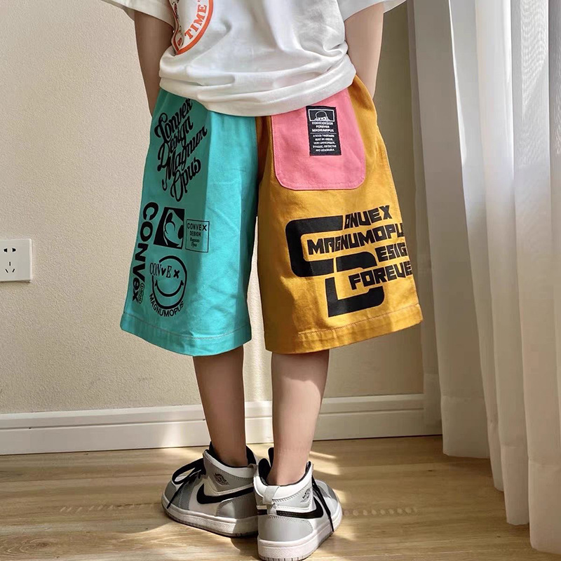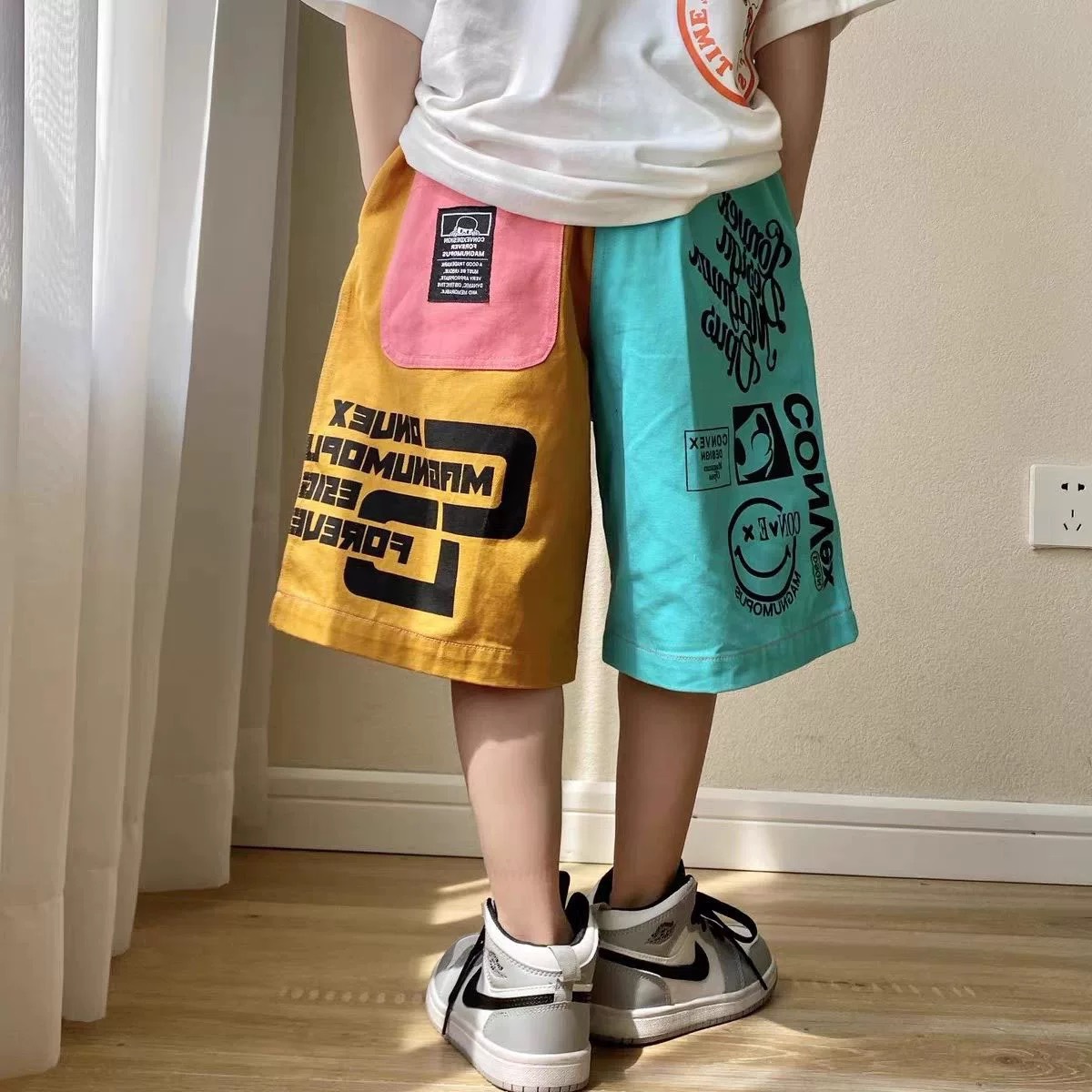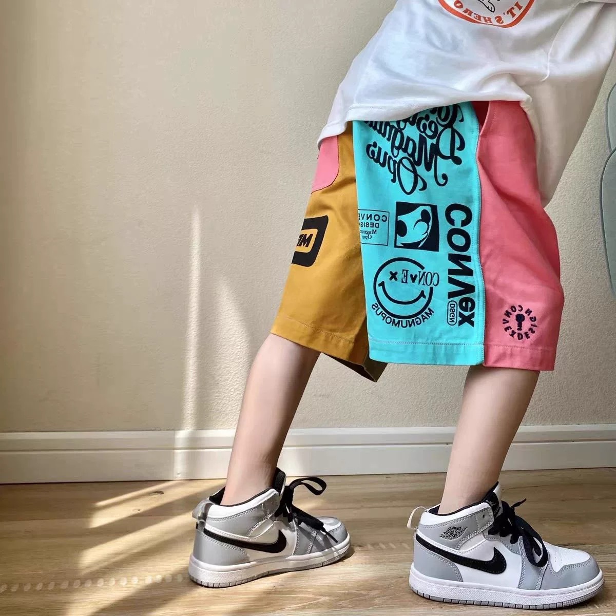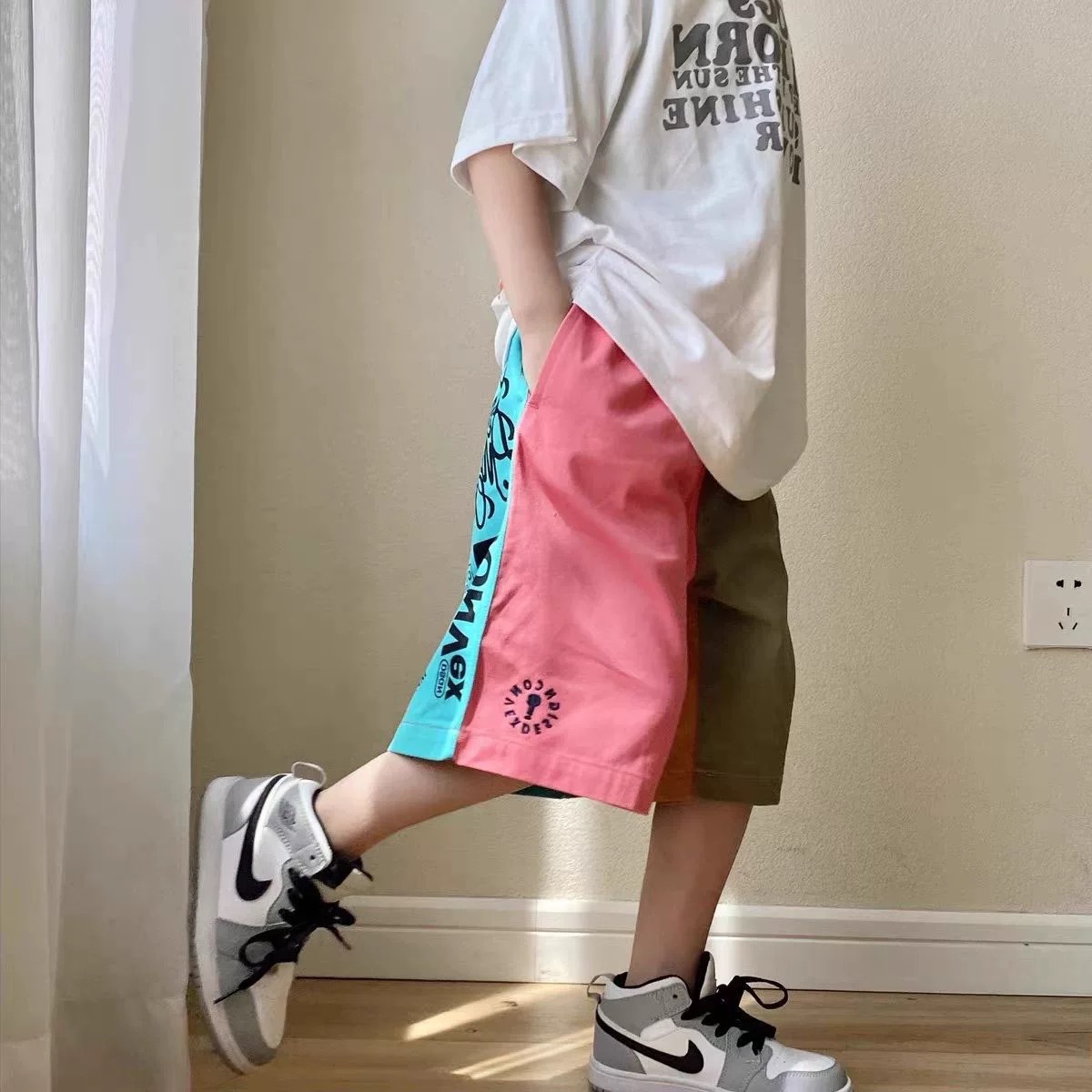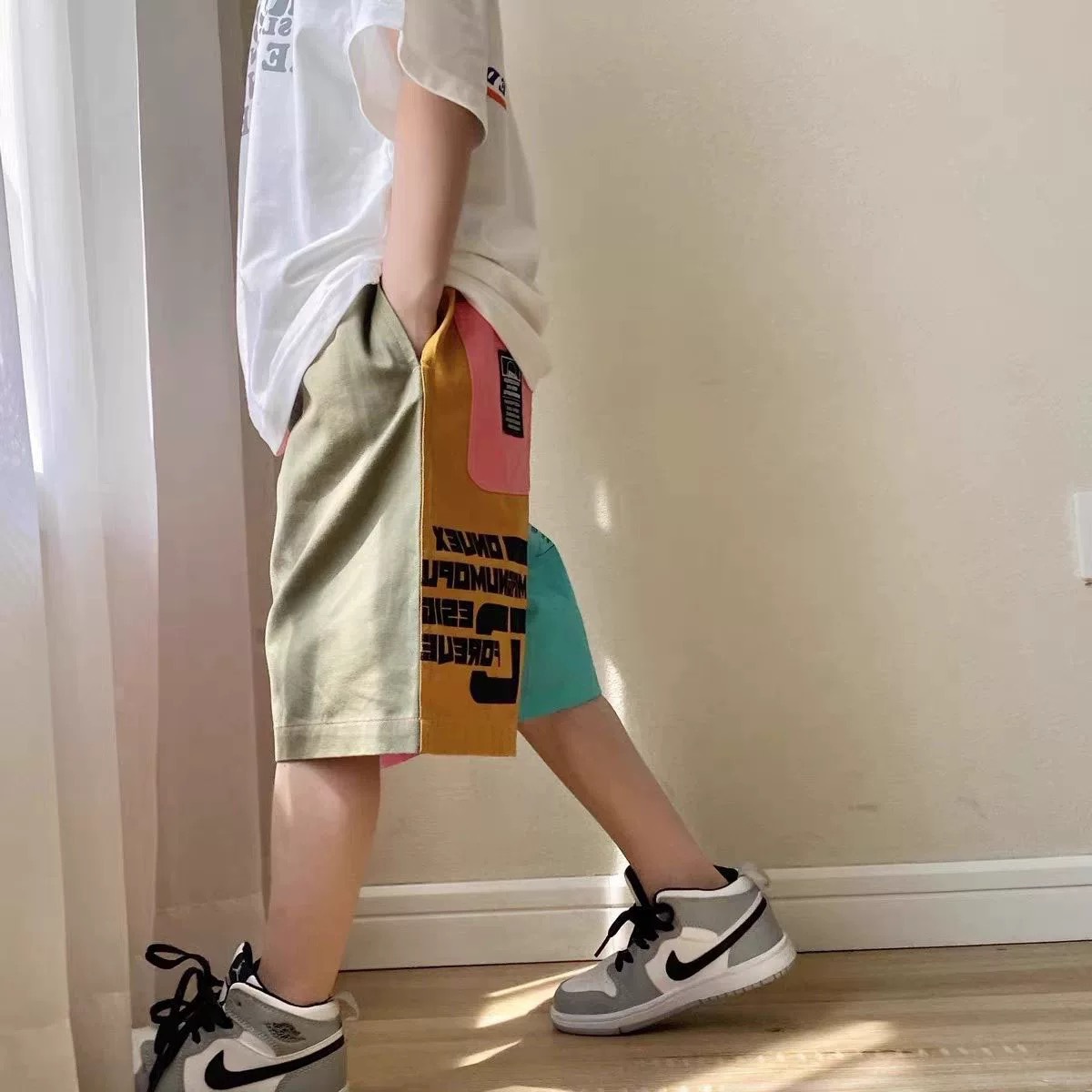 어린이 반바지 여름 새 소년 일본 스타일 색상 블록 캐주얼 느슨한 중간 길이 바지 스타일라인 중간 길이 바지스토어 가기