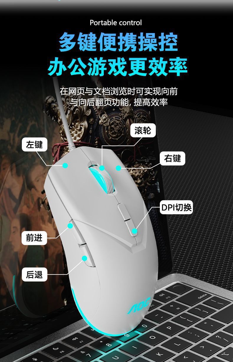 새로운 도매 AOCGM130 데스크탑 컴퓨터 게임 4D 유선 USB 발광 마우스 오피스 게임 노트북스토어 가기