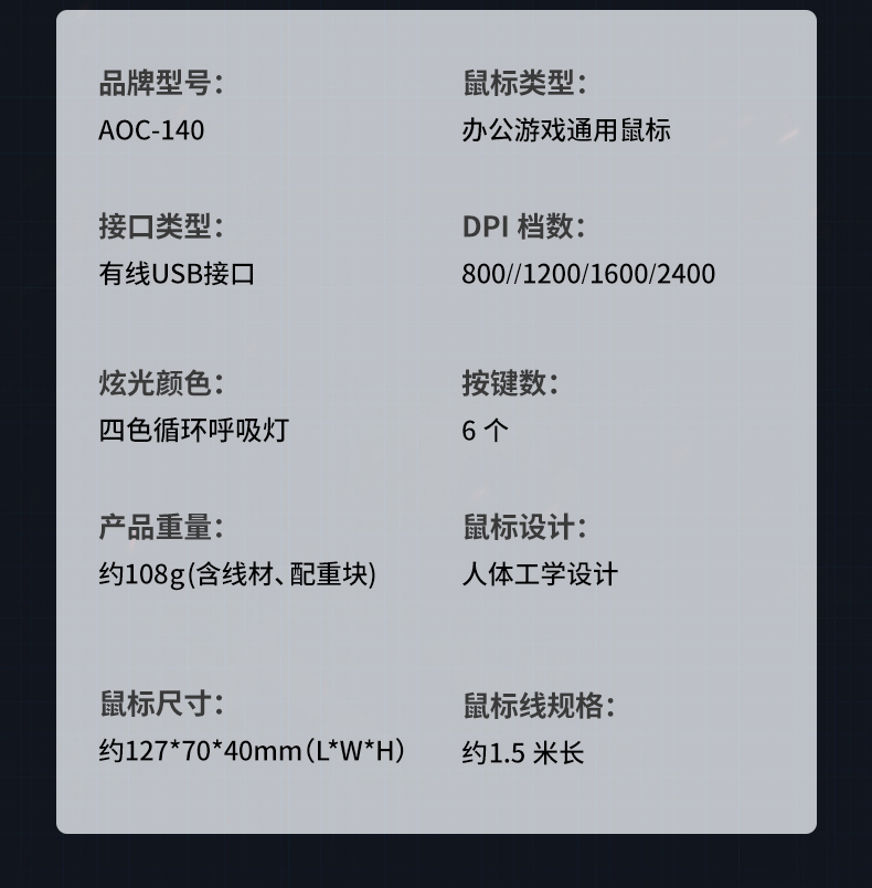 • AOCGM130 유선 마우스 [USB 인터페이스] [4D]