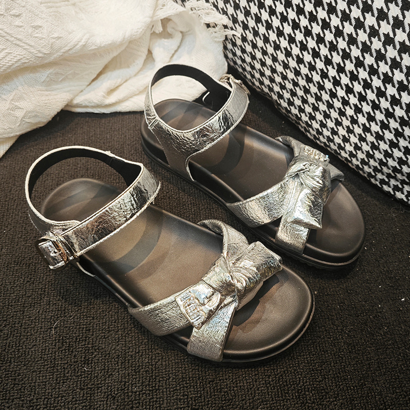 여성을위한 달콤한 스타일 슬리퍼 2025 새로운 스타일 편지 더블 보우 라인스톤 슬리퍼 여름 스커트와 비치 샌들