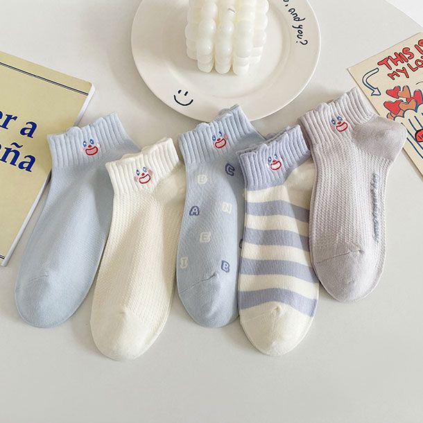 [복지 5 쌍] 양말 숙녀 레이스 양말 통기성 탈취제 보트 양말 한국 학생 짧은 튜브 양말