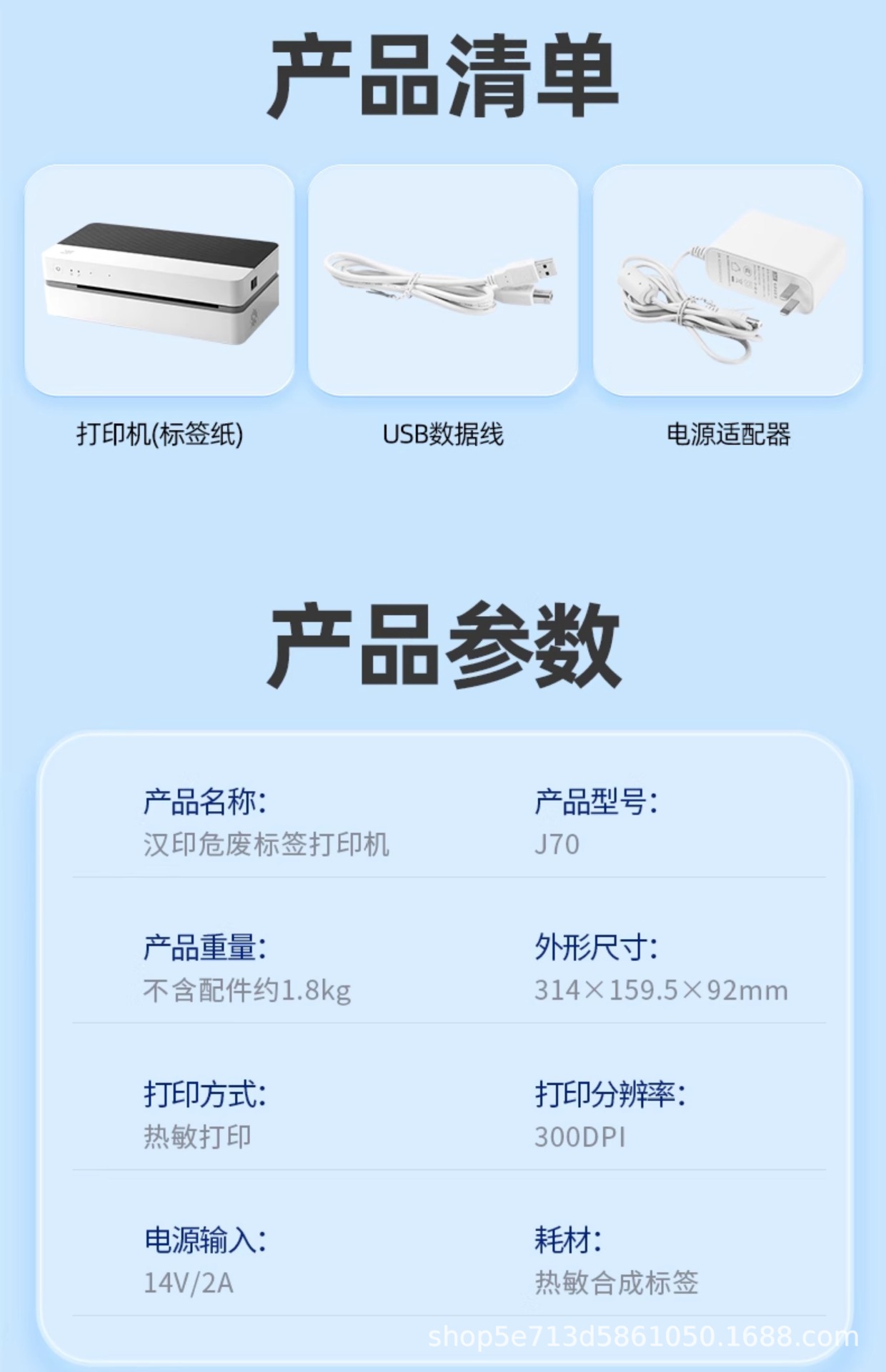한인 J70 유해 폐기물 라벨 프린터 새 국가 표준 유해 폐기물 관리 통합 시스템 주정부 플랫폼 휴대 전화 블루투스스토어 가기