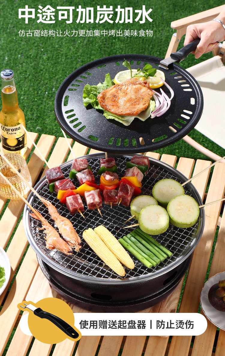 가정용 바베큐 그릴, 야외용 차 끓이기 휴대용 숯불 그릴, 무연 한국식 그릴, 상업용 캠핑 세트스토어 가기