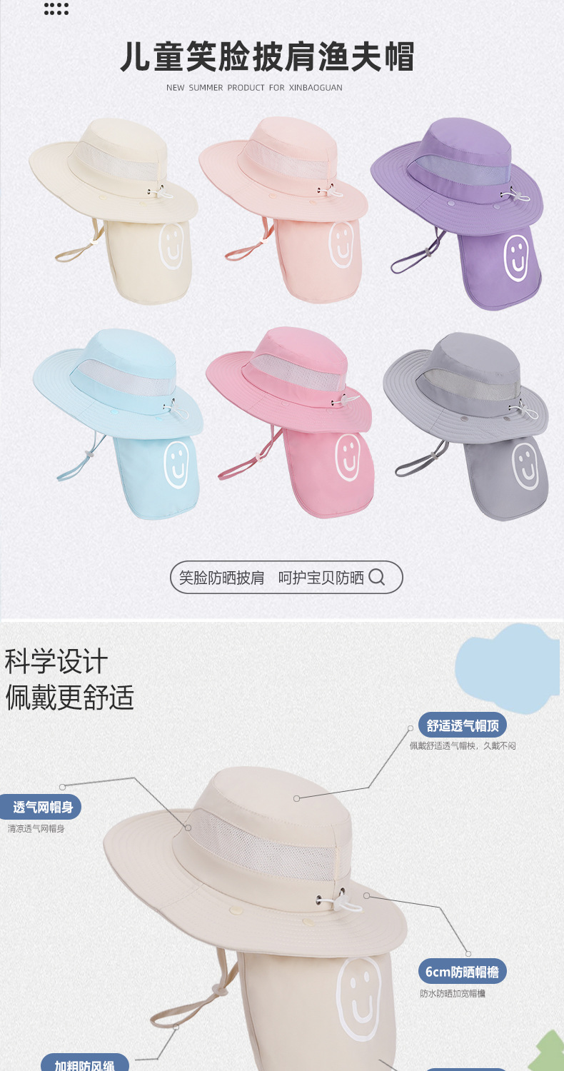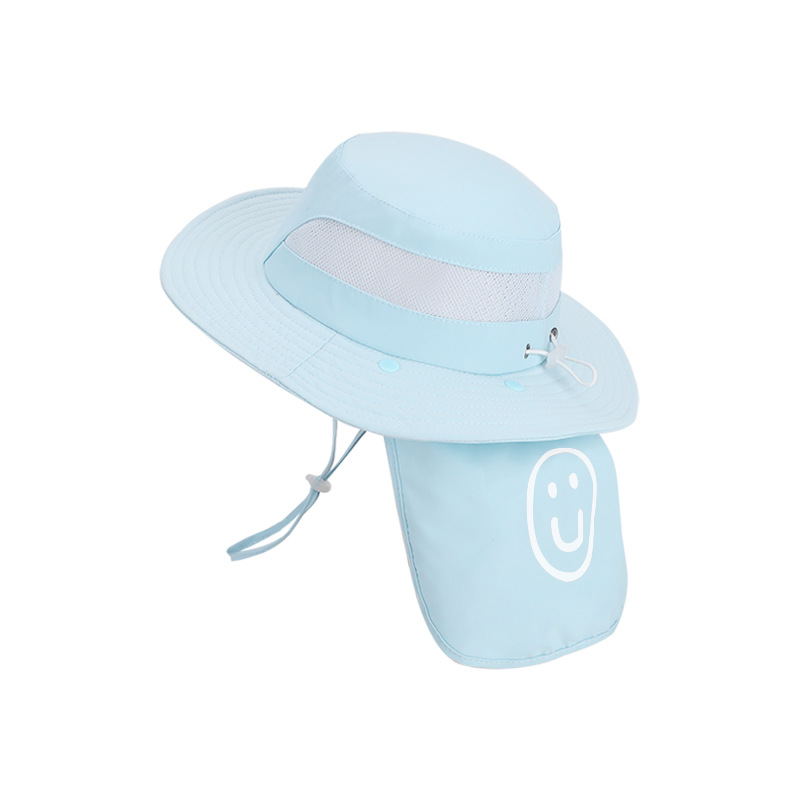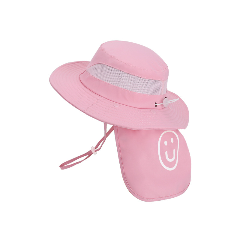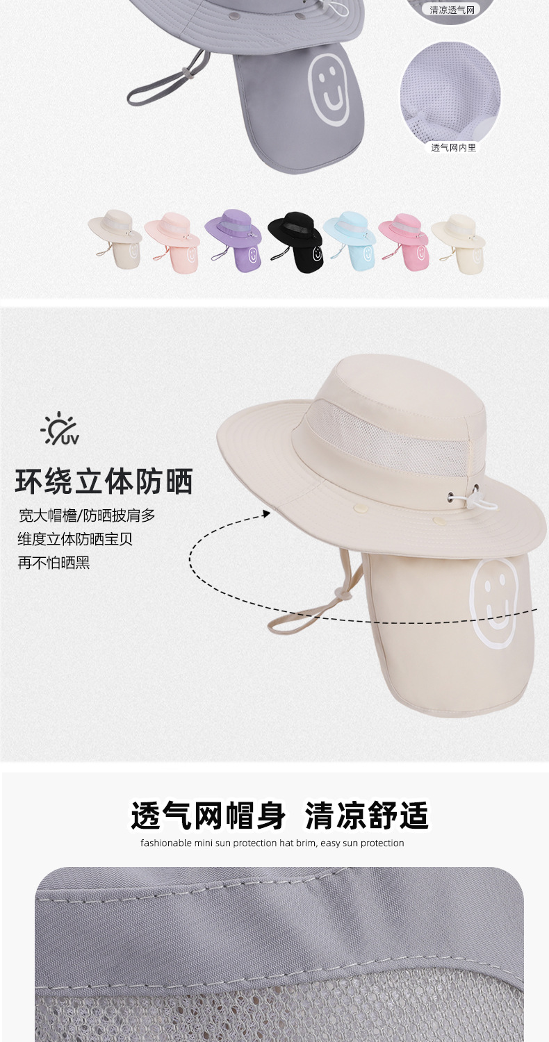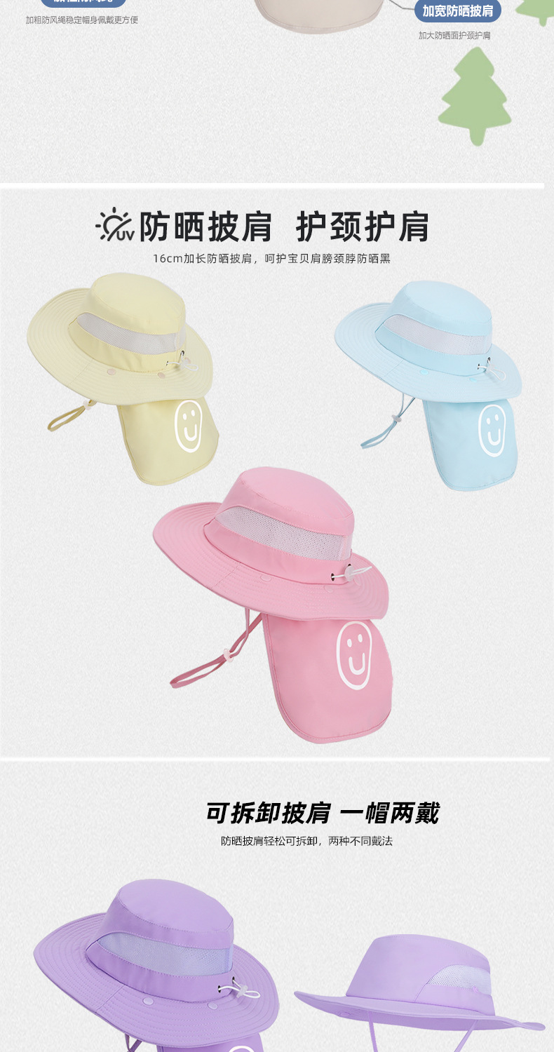 어린이용 자외선 차단 모자, 여름 해변 해변 차양, 소년 소녀용 대형 챙 숄, 핫 라벨 웃는 얼굴, 탈착식 어부 모자