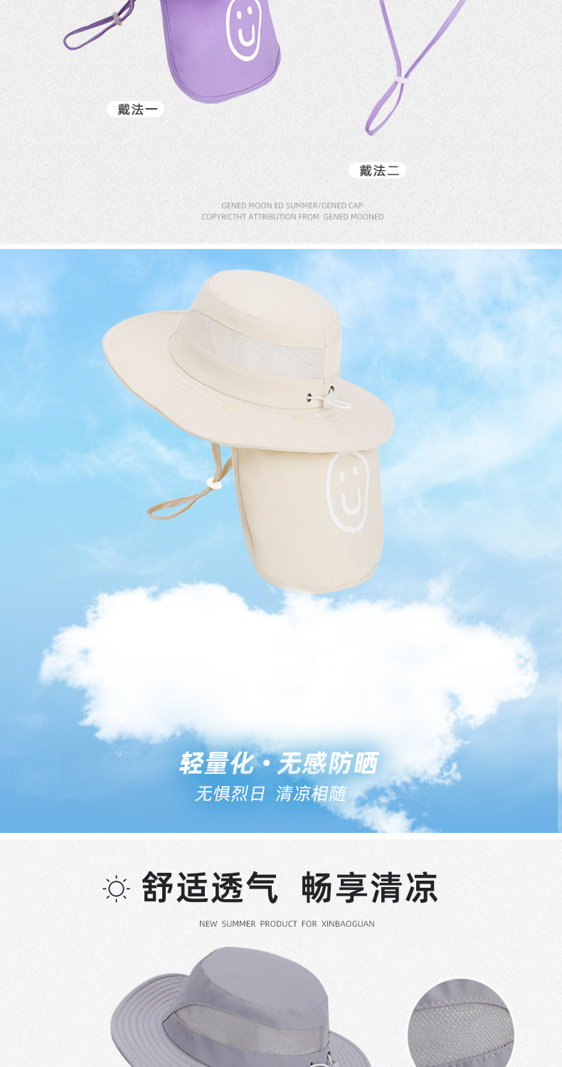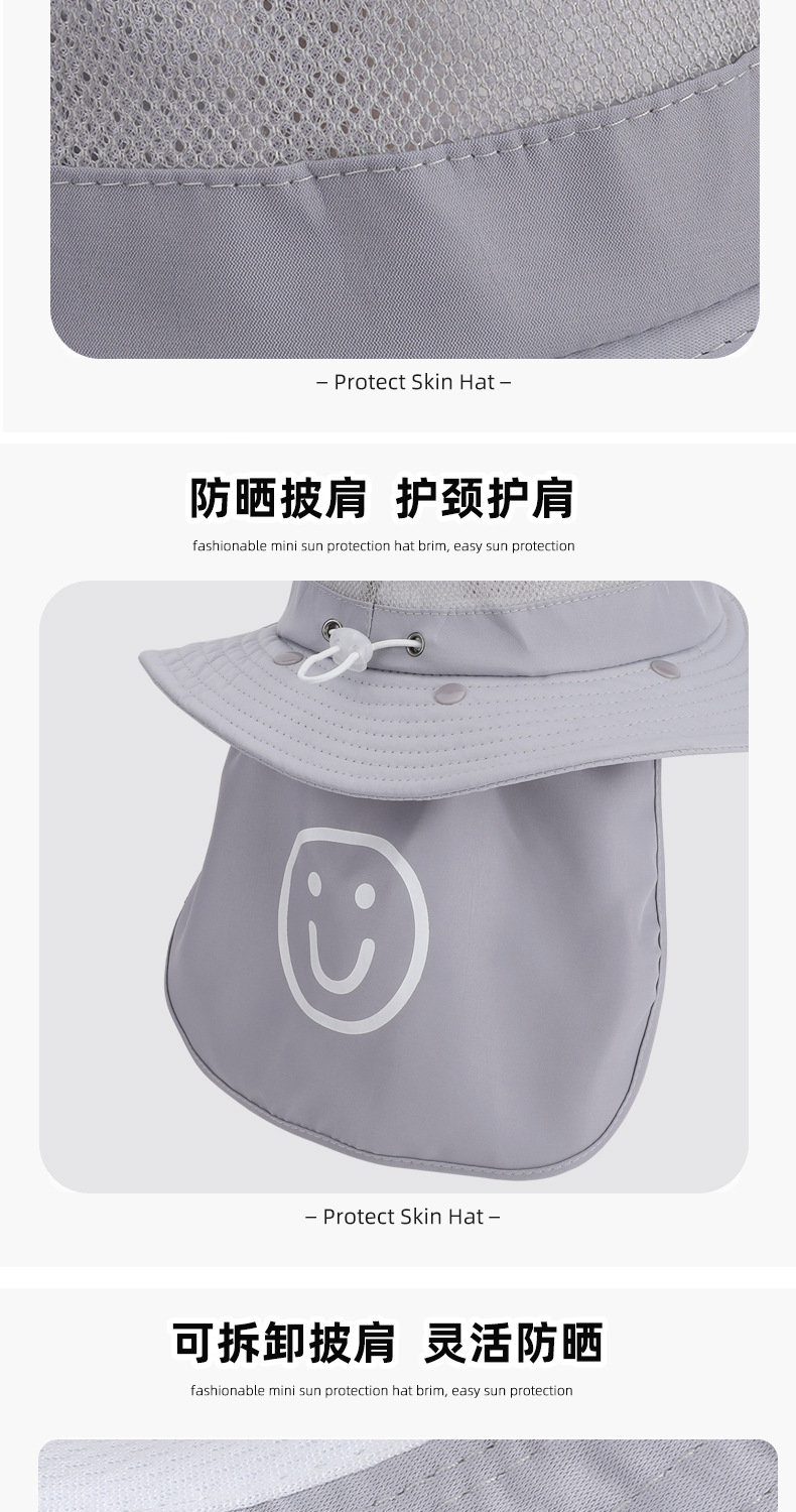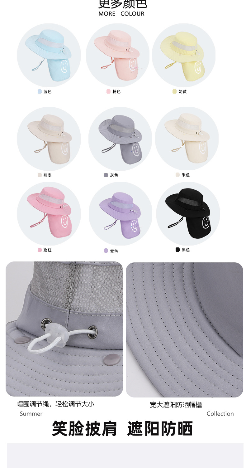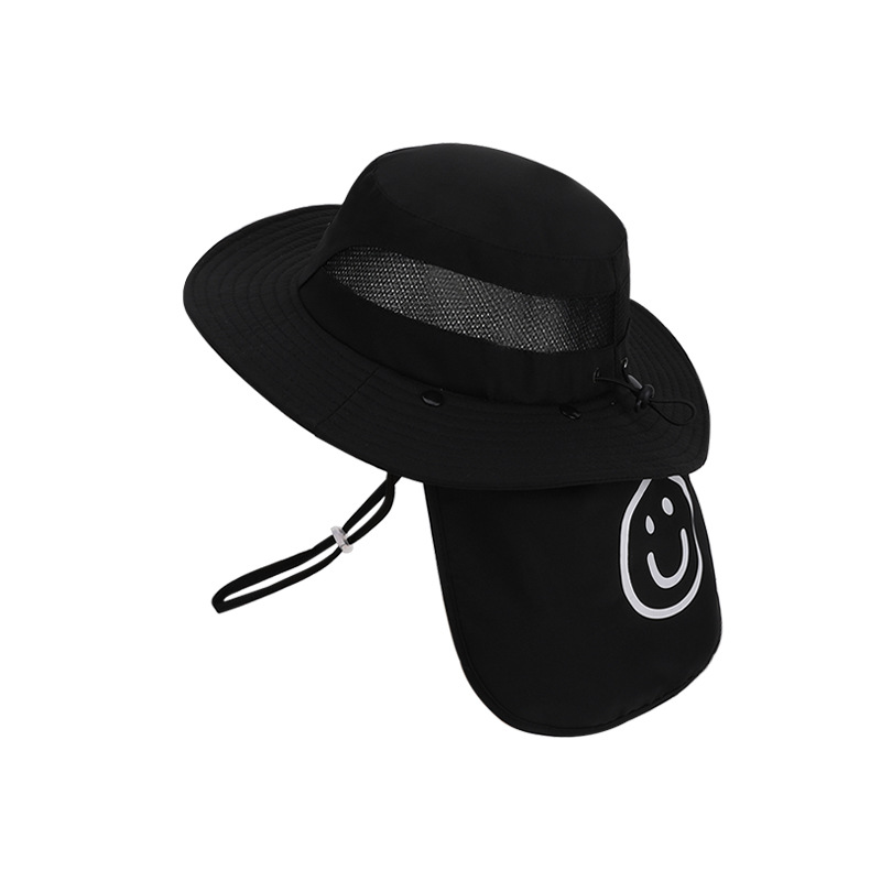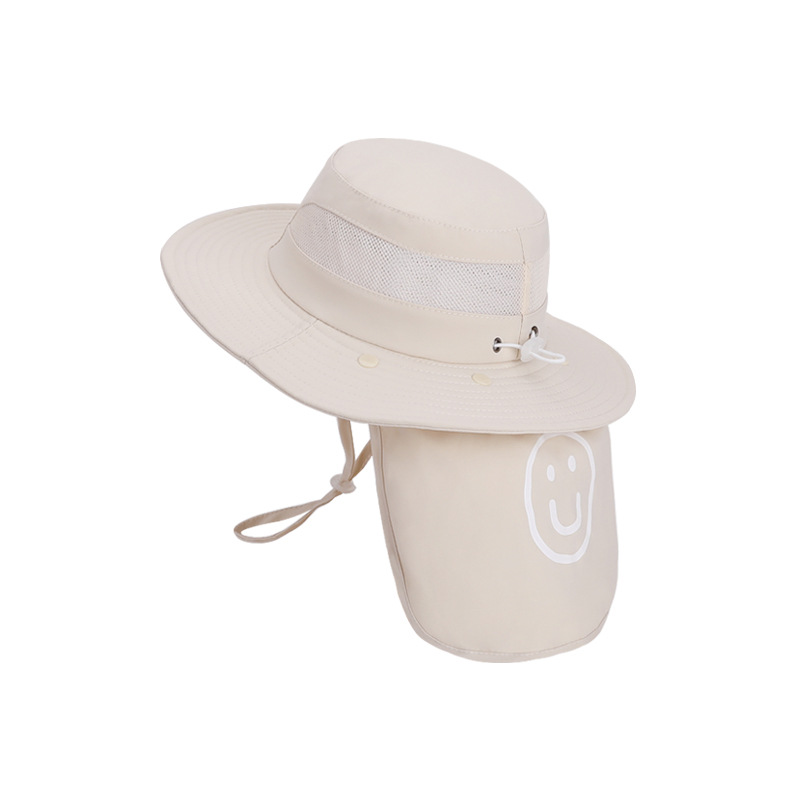 어린이용 자외선 차단 모자, 여름 해변 해변 차양, 소년 소녀용 대형 챙 숄, 핫 라벨 웃는 얼굴, 탈착식 어부 모자