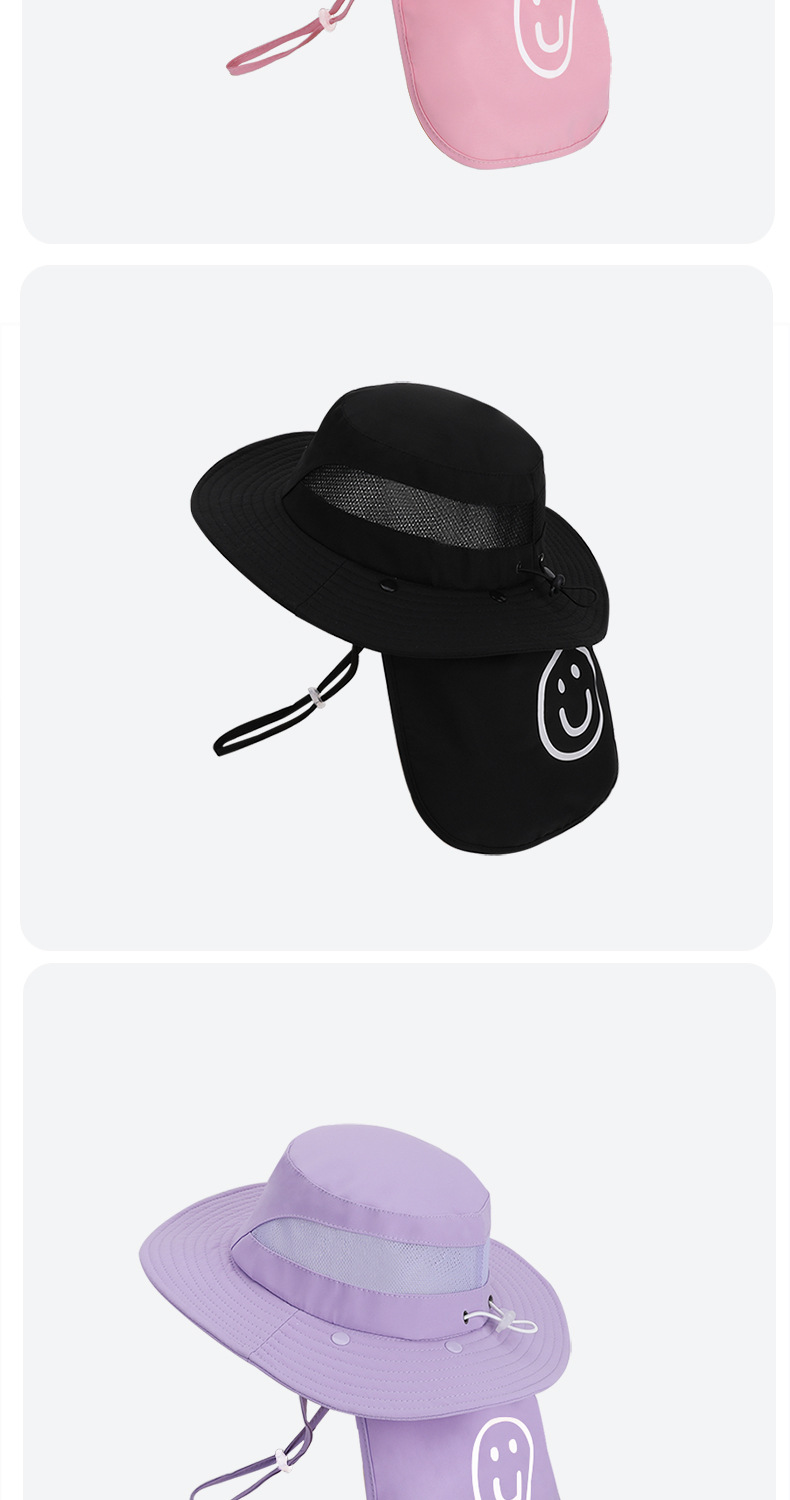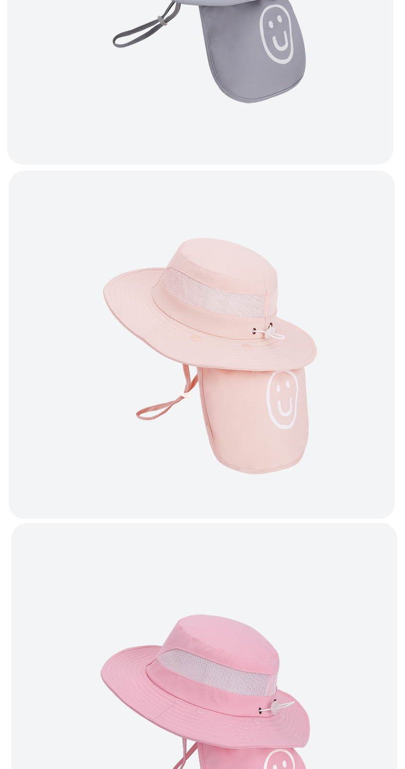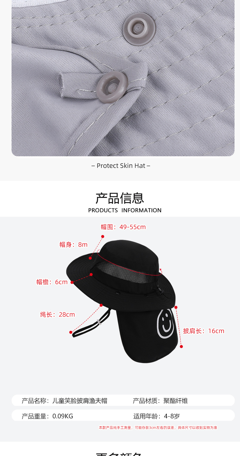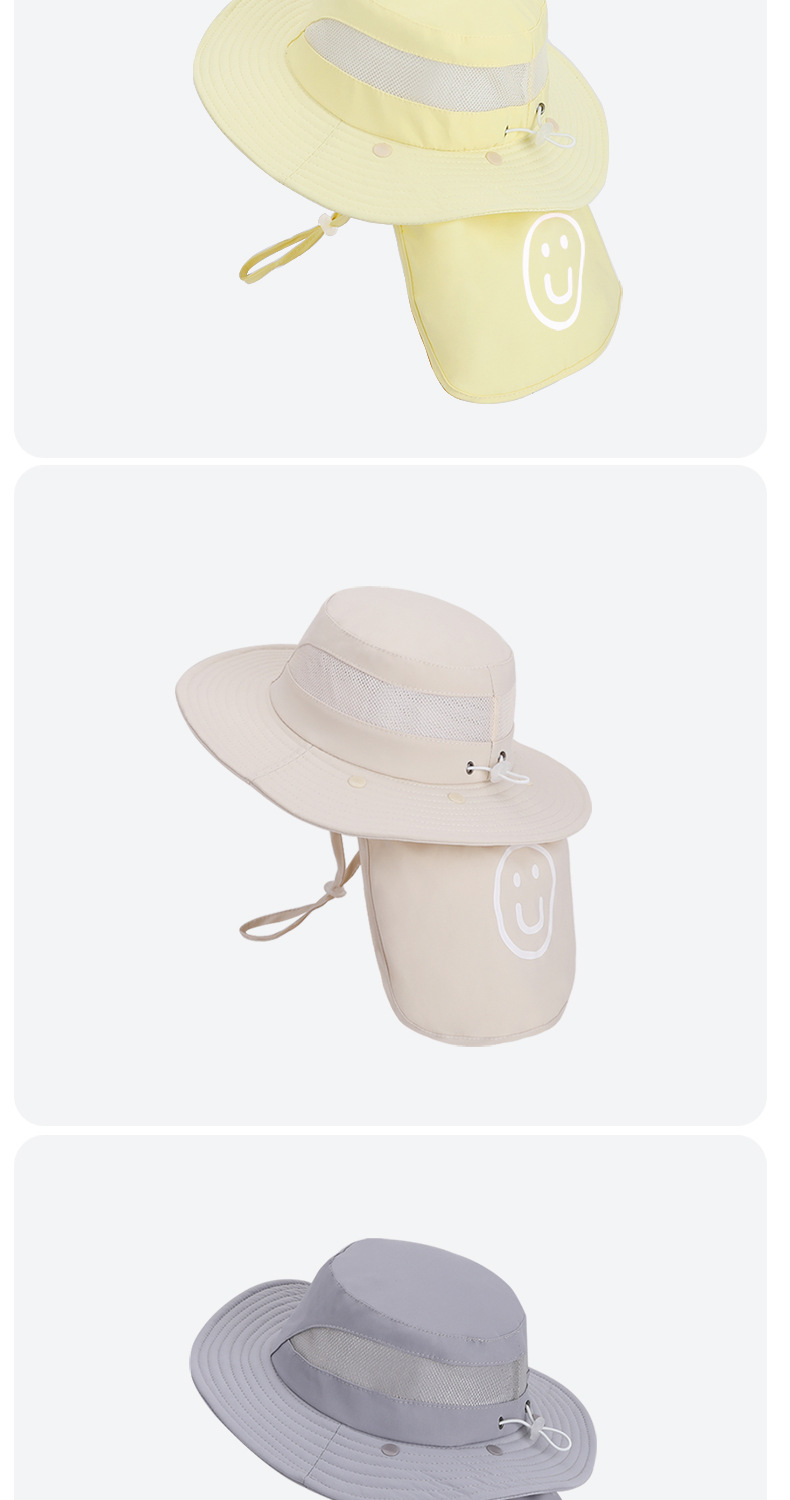어린이용 자외선 차단 모자, 여름 해변 해변 차양, 소년 소녀용 대형 챙 숄, 핫 라벨 웃는 얼굴, 탈착식 어부 모자