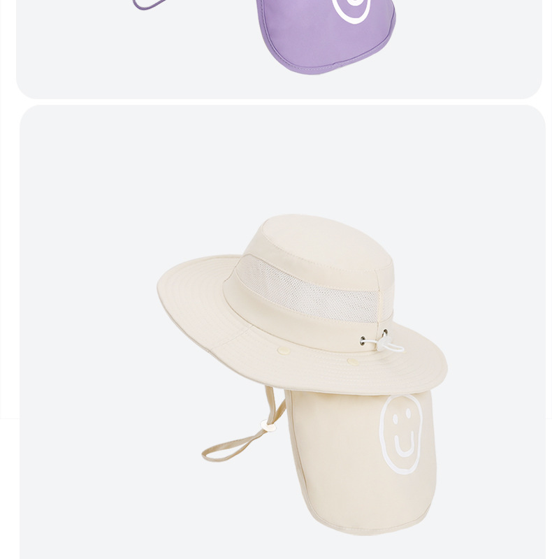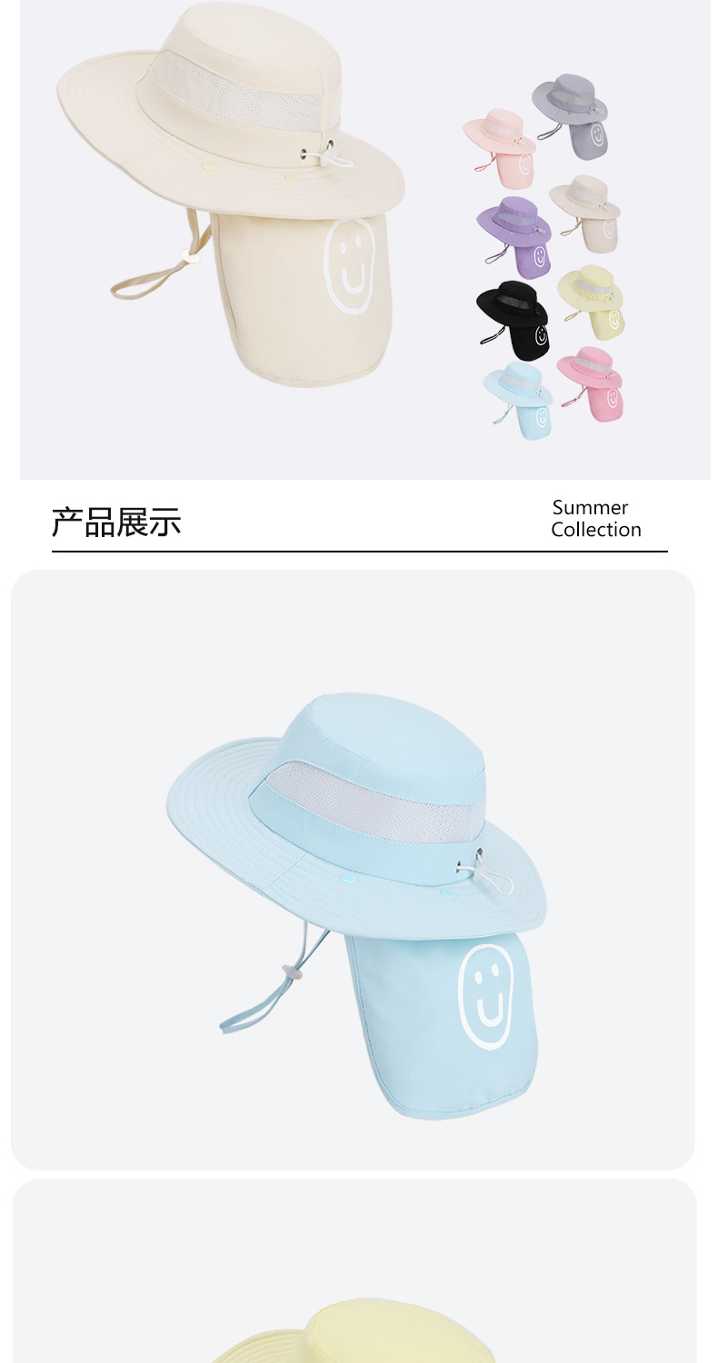 어린이용 자외선 차단 모자, 여름 해변 해변 차양, 소년 소녀용 대형 챙 숄, 핫 라벨 웃는 얼굴, 탈착식 어부 모자스토어 가기