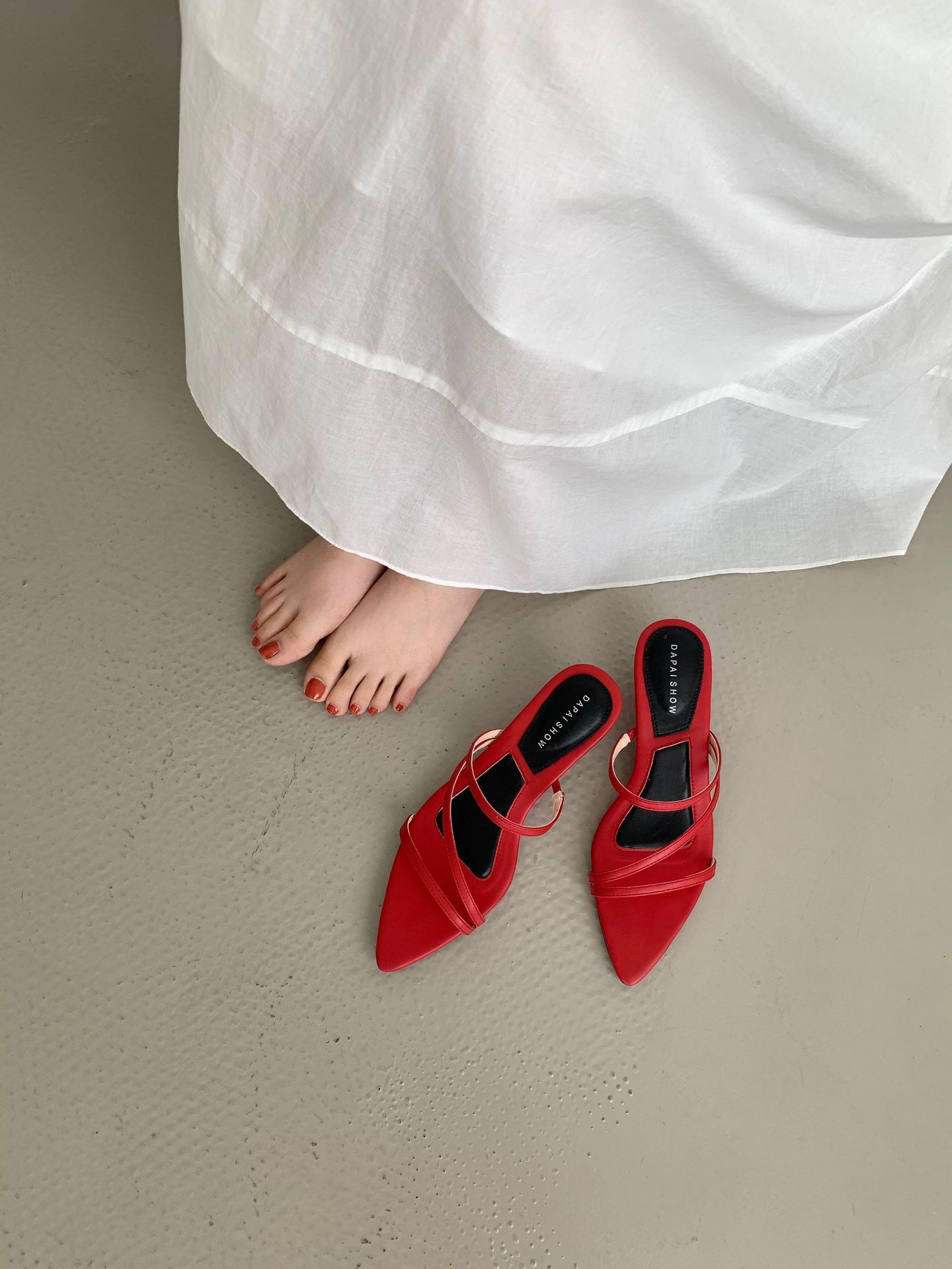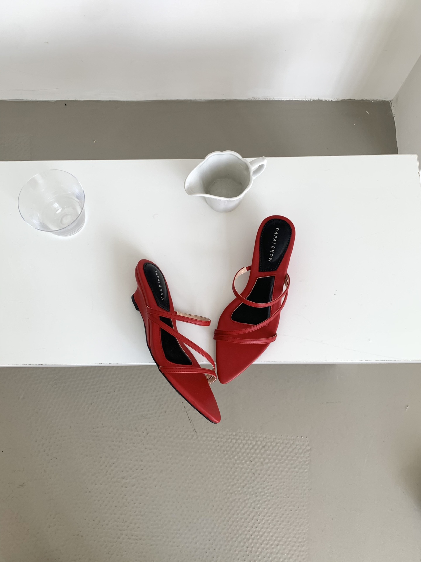 2025 새로운 요정 스타일 섹시한 뾰족한 발가락 슬리퍼 여성용 샤넬 스타일 우아한 올 매치 웨지 힐 하이힐 신발