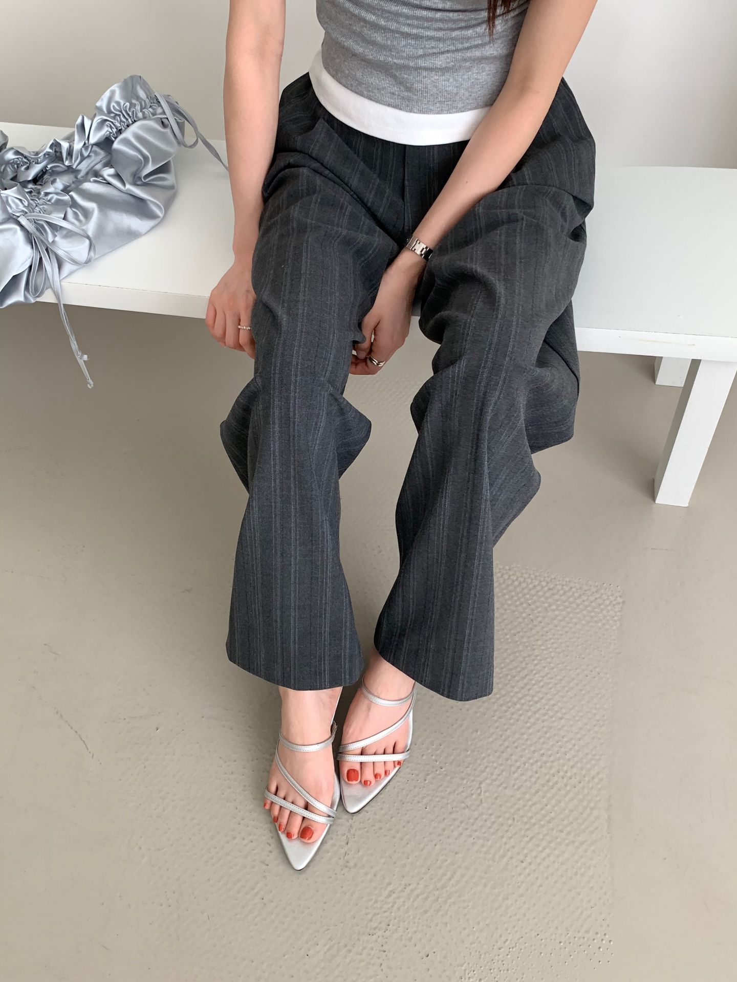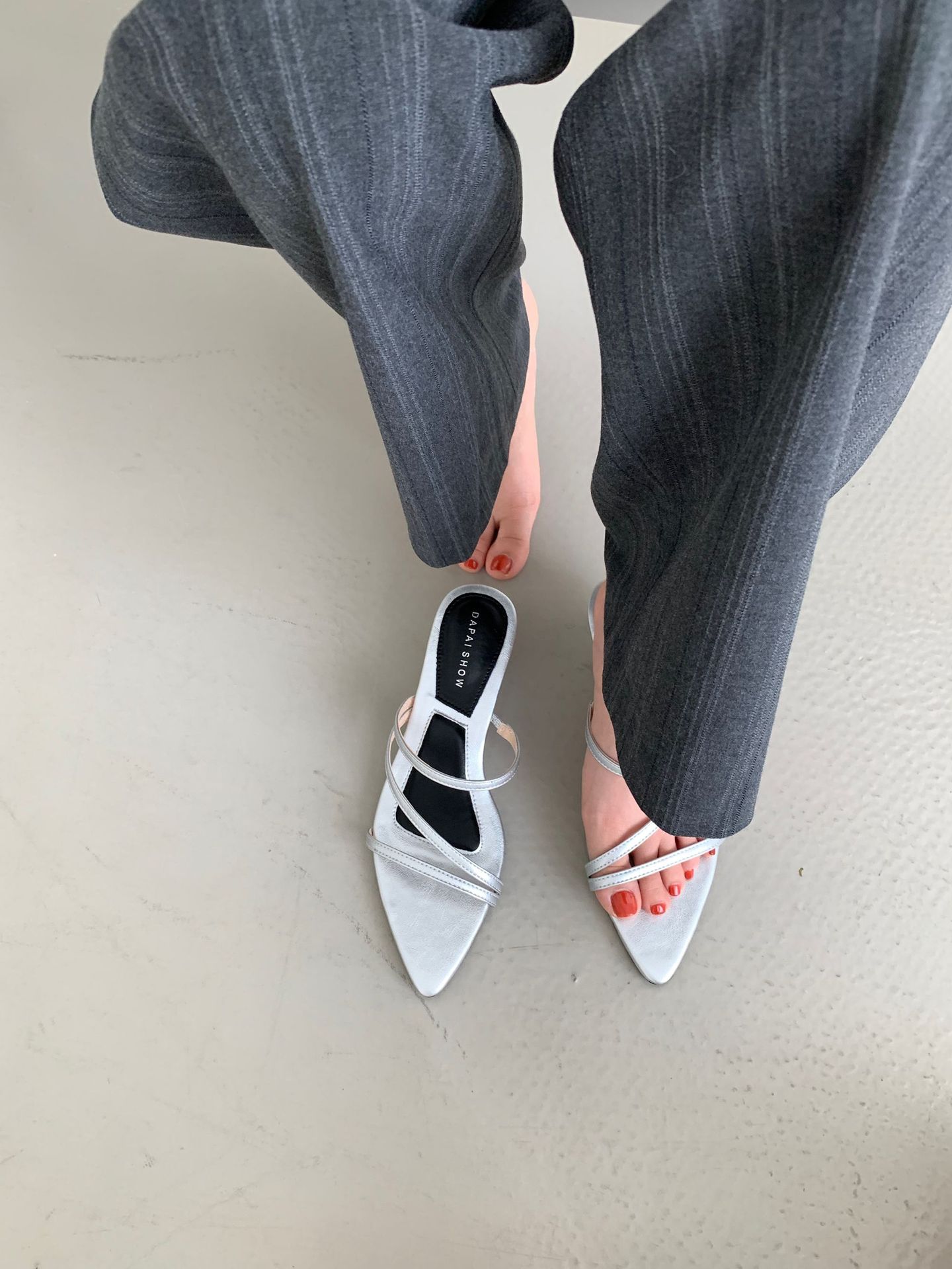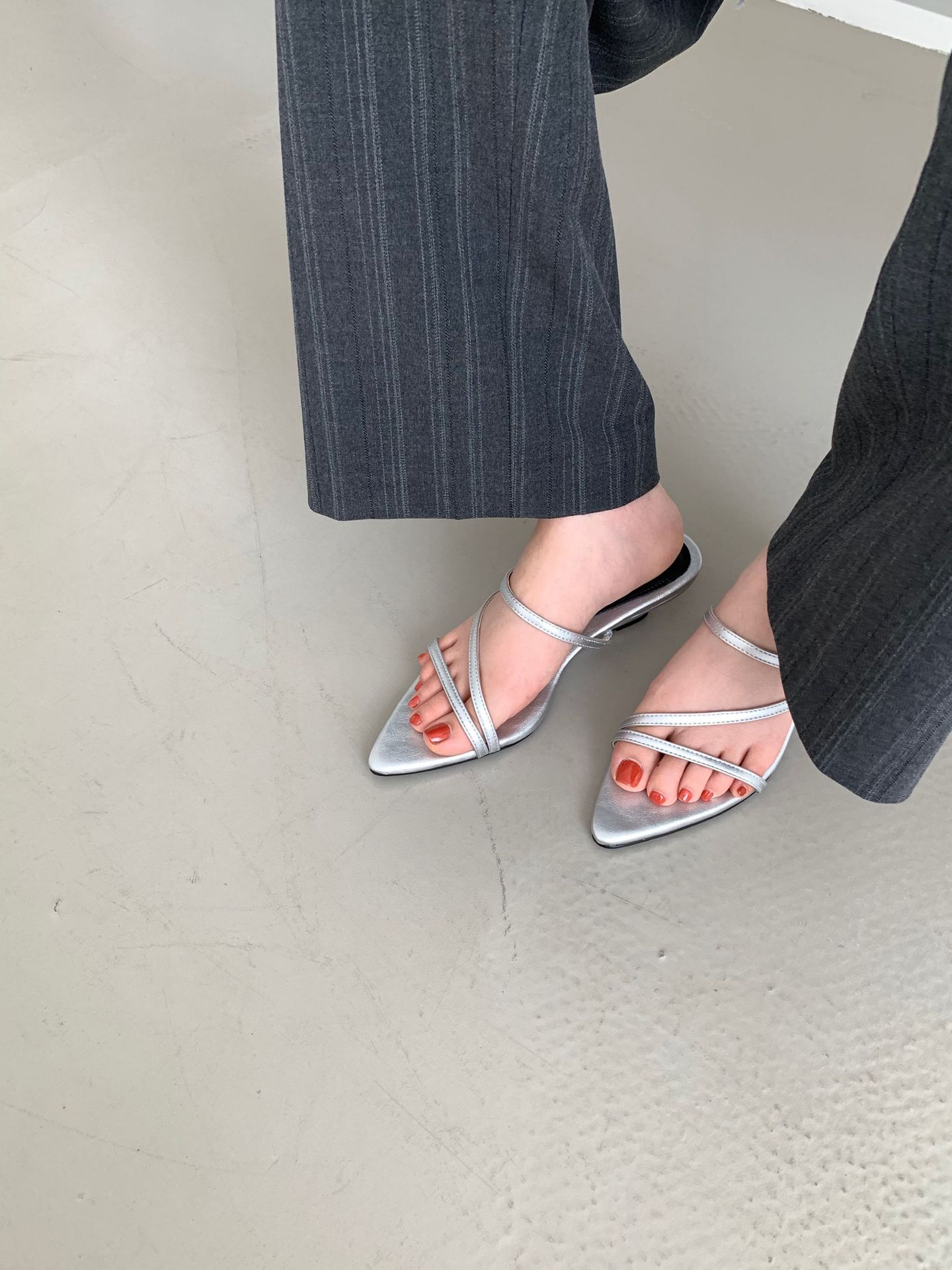 2025 새로운 요정 스타일 섹시한 뾰족한 발가락 슬리퍼 여성용 샤넬 스타일 우아한 올 매치 웨지 힐 하이힐 신발스토어 가기