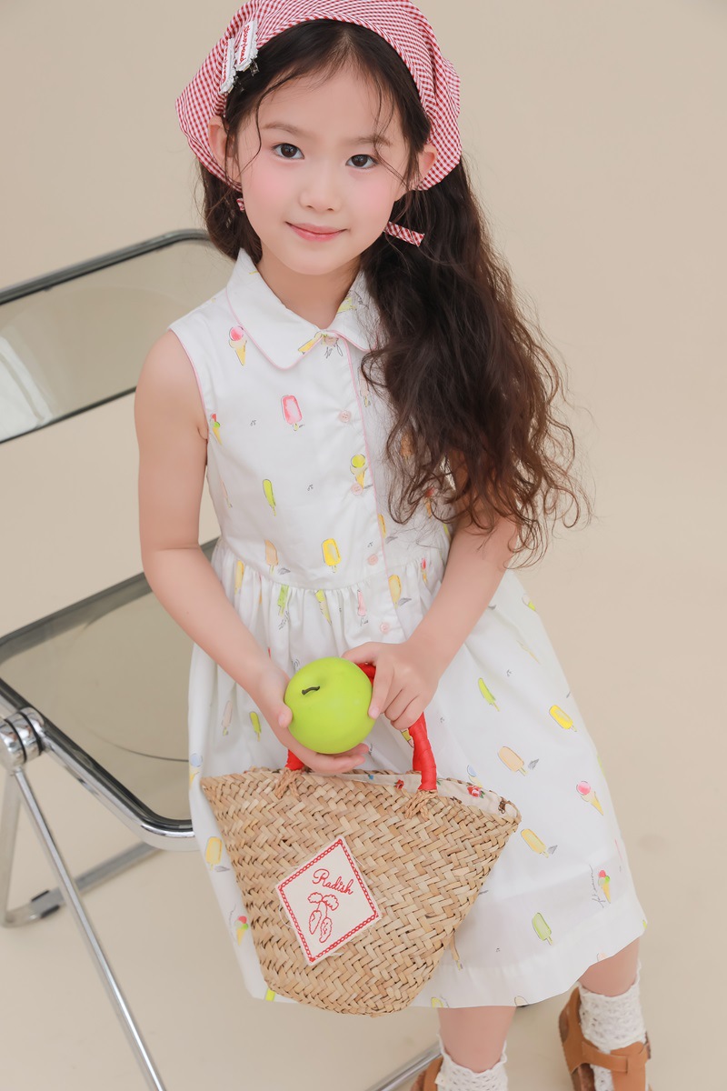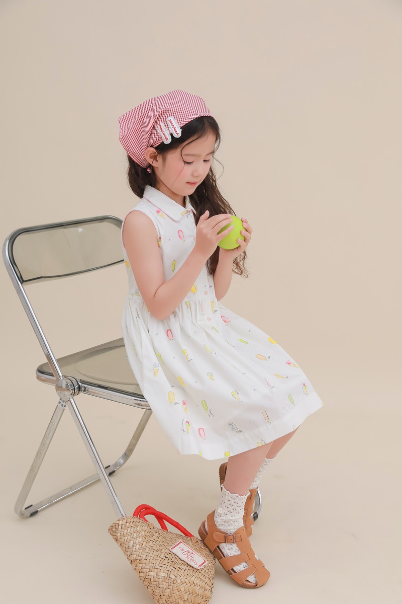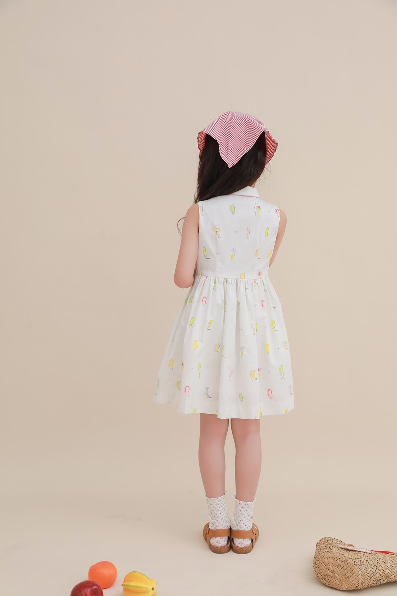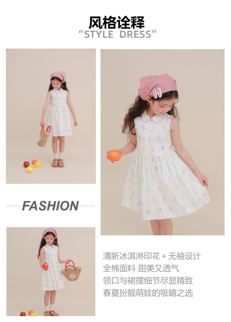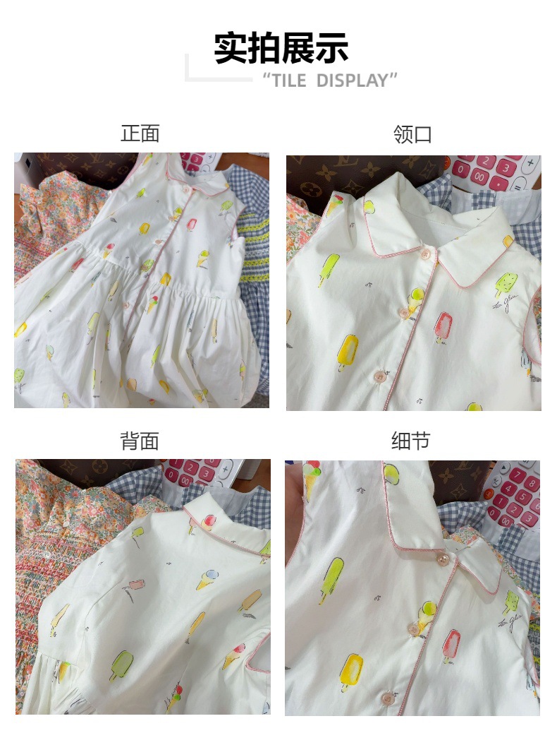 새 소녀의 빅 보이 아이스크림 민소매 인쇄 원피스 헵번 스타일 더블 레이어 짠 모든면 베살 원피스스토어 가기