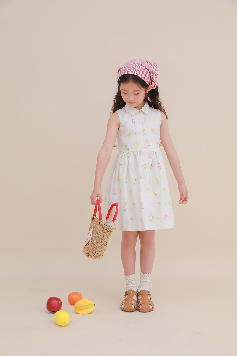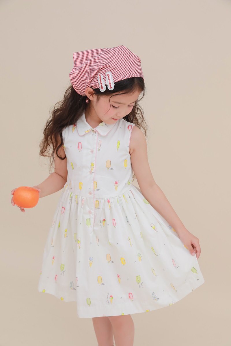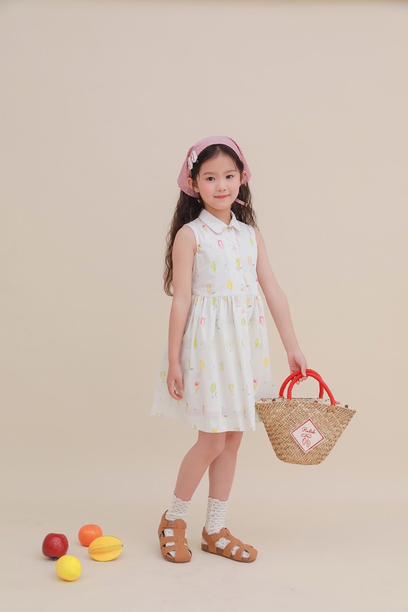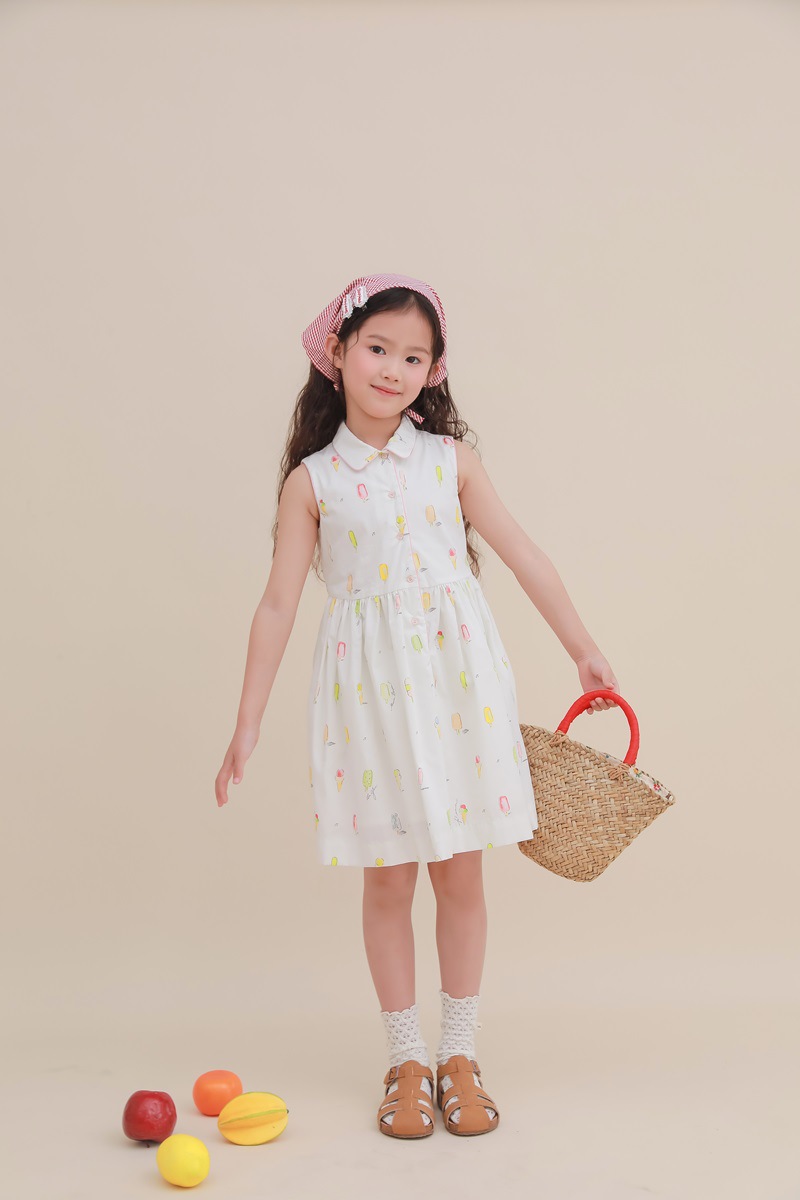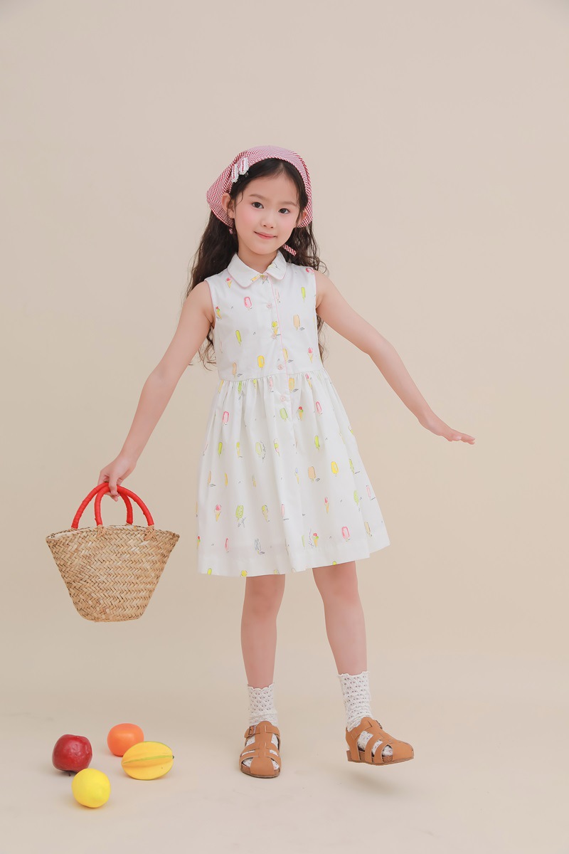 새 소녀의 빅 보이 아이스크림 민소매 인쇄 원피스 헵번 스타일 더블 레이어 짠 모든면 베살 원피스스토어 가기
