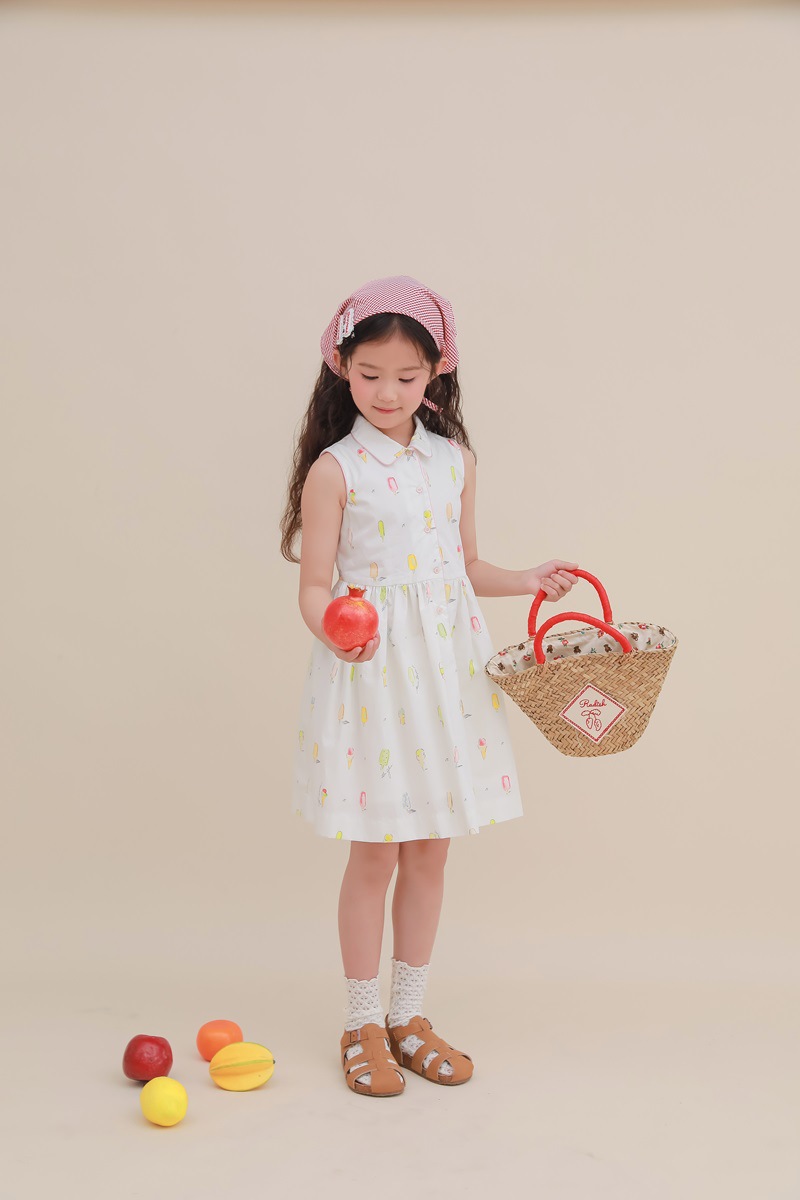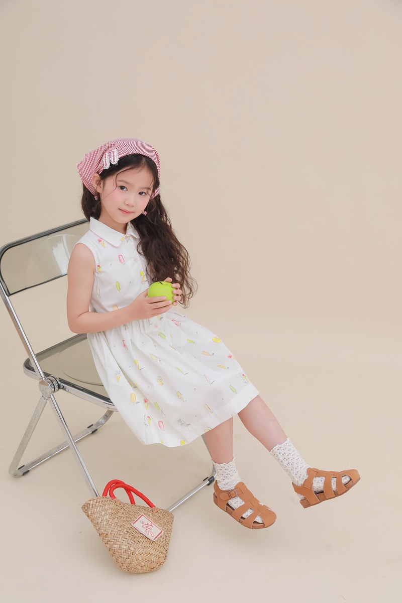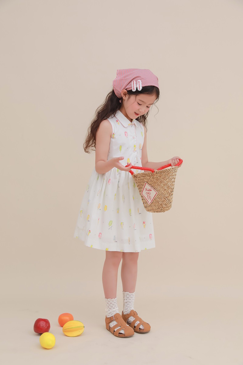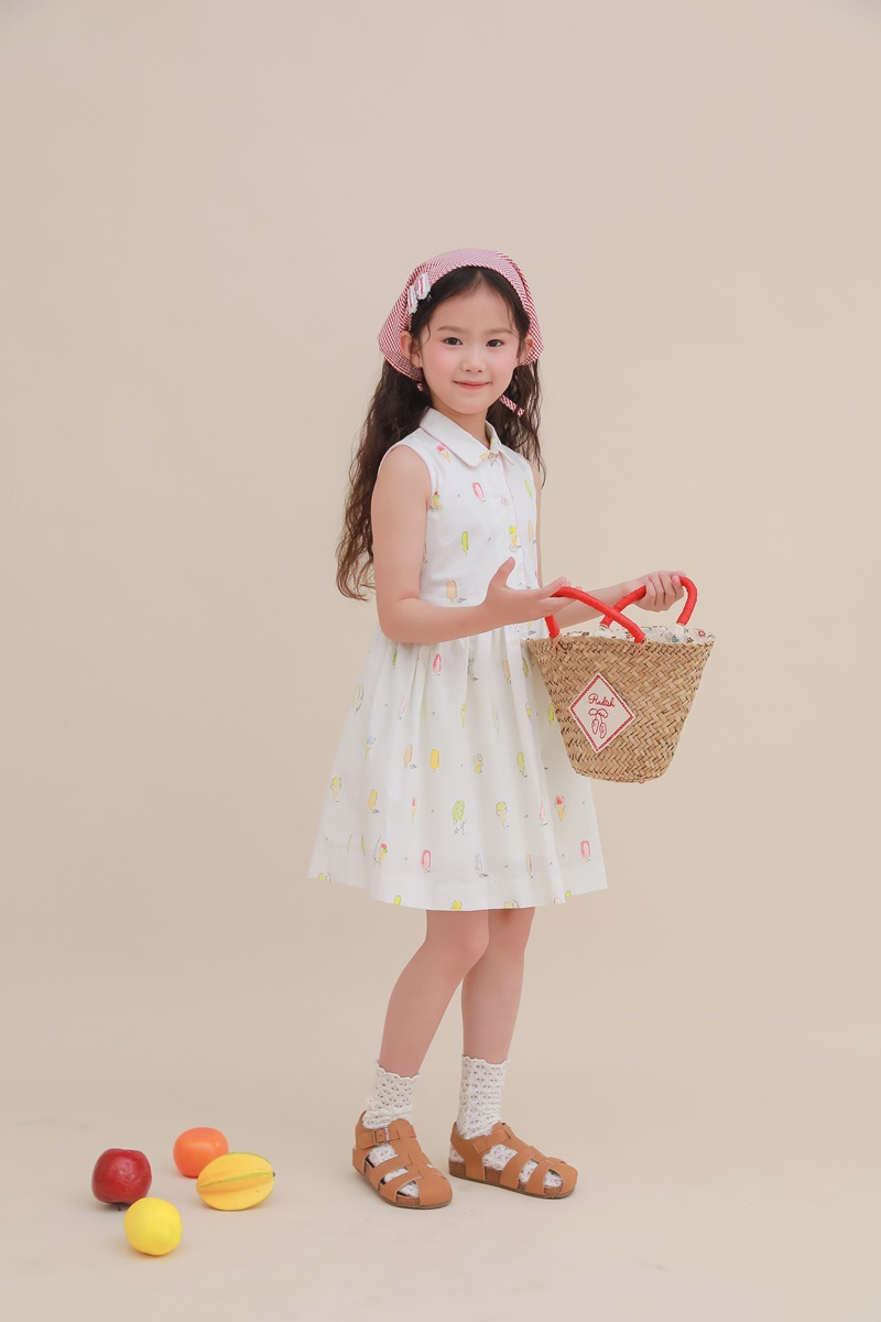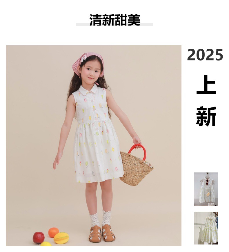 새 소녀의 빅 보이 아이스크림 민소매 인쇄 원피스 헵번 스타일 더블 레이어 짠 모든면 베살 원피스스토어 가기