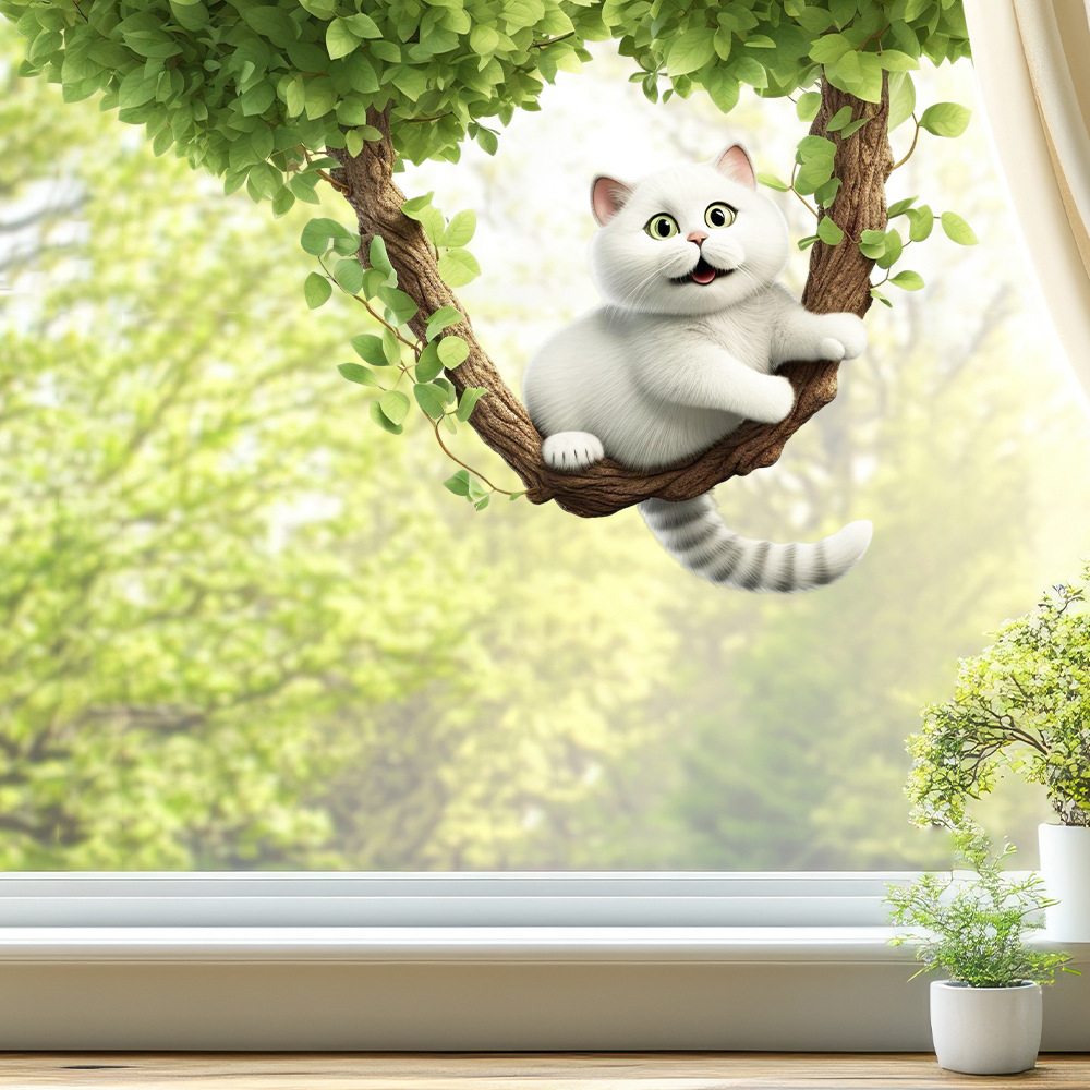 Yiyao JD3462 새로운 흰색 고양이 양면 인쇄 창 스티커 상점 유리 장식 이동식 정전기 스티커