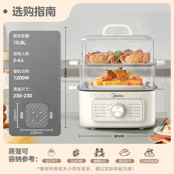 Midea 전기 증기선 3 층 대용량 외부 물 증기선 전기 증기선 투명 창 스테인레스 스틸 증기선스토어 가기