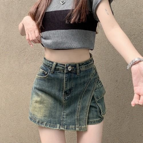 캐주얼 뉴 데님 Culottes 순수한 욕망 여성의 2025 스트레치 디자인 높은 허리 엉덩이 짧은 치마 블랙스토어 가기