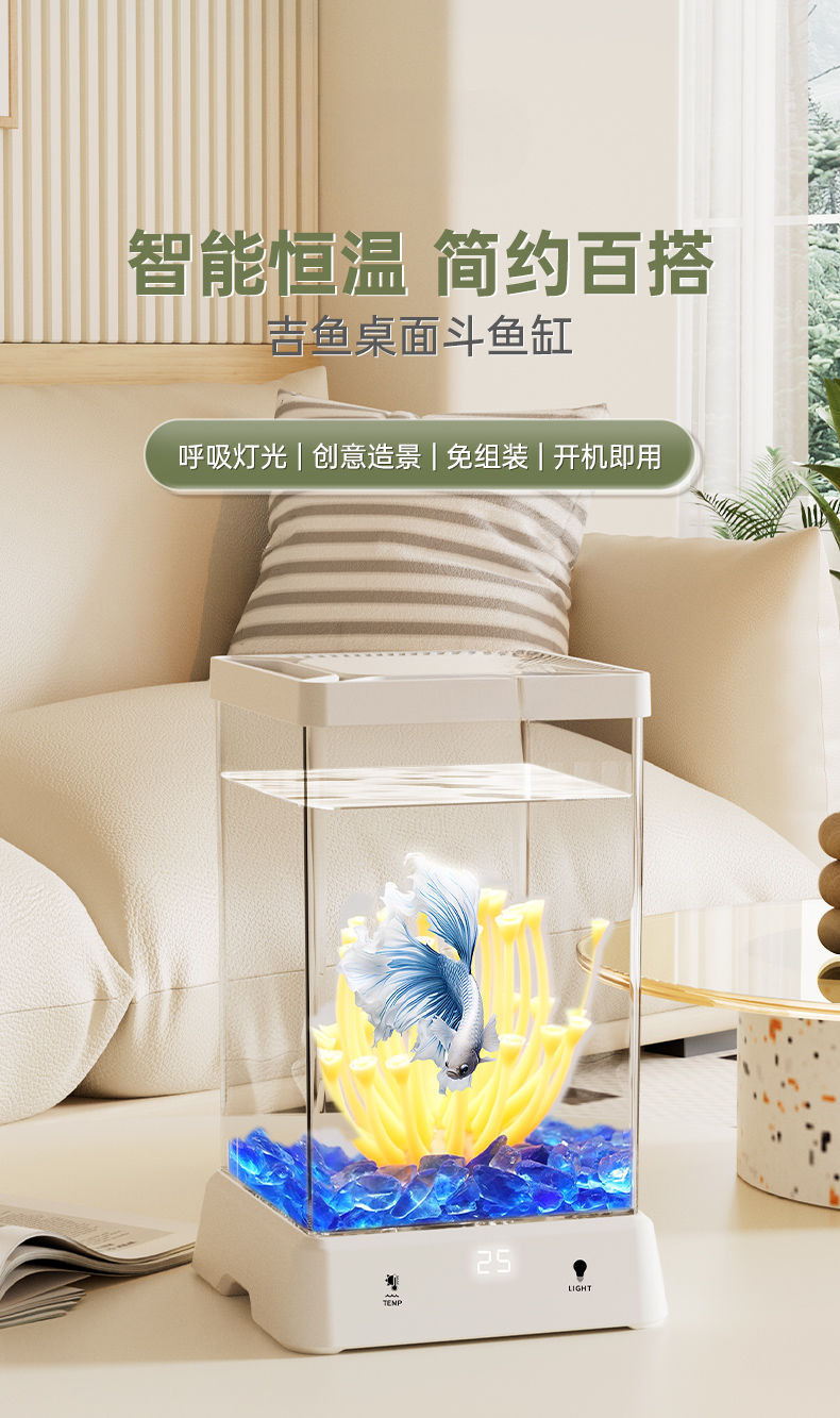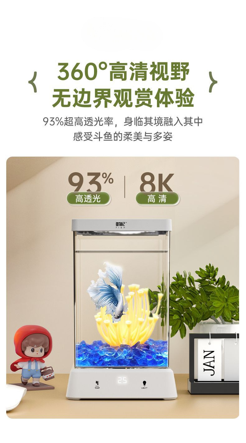 초보 양동이 물고기 태국 난방 어항 거실 데스크탑 미니 작은 생태 책상 홈 창조적 인 조경