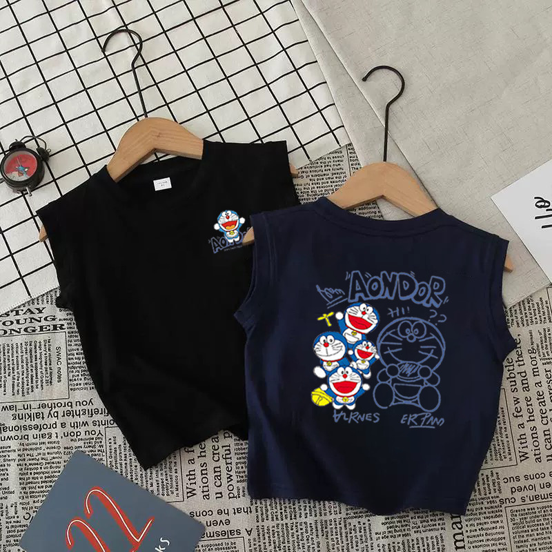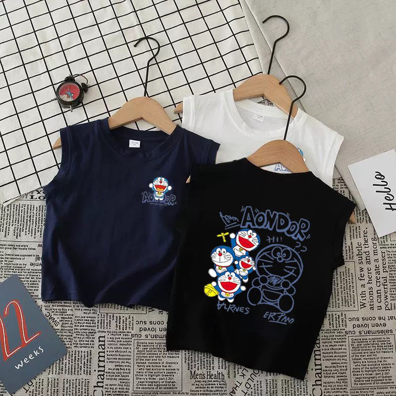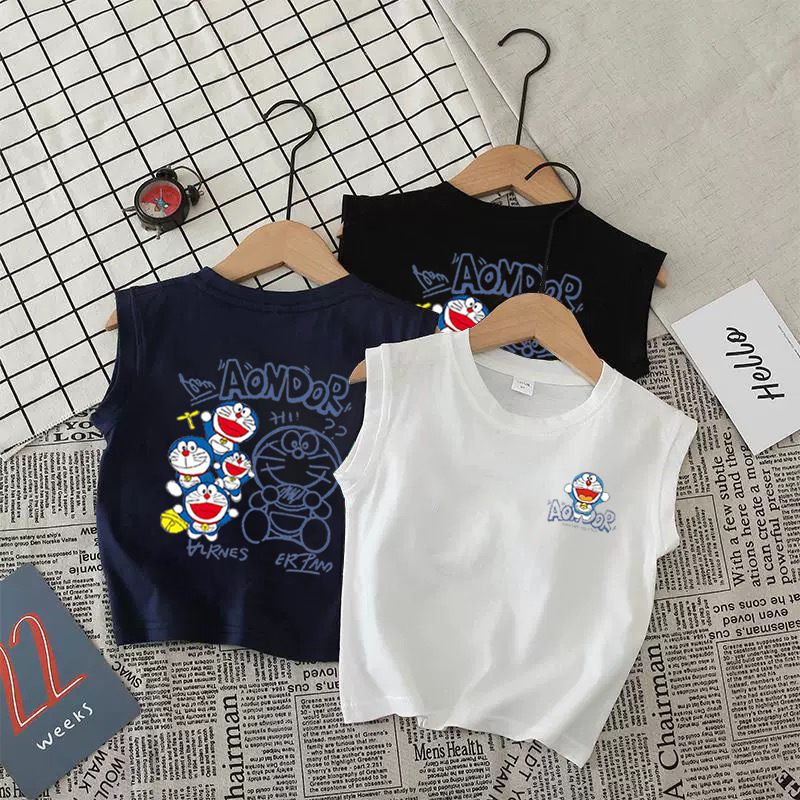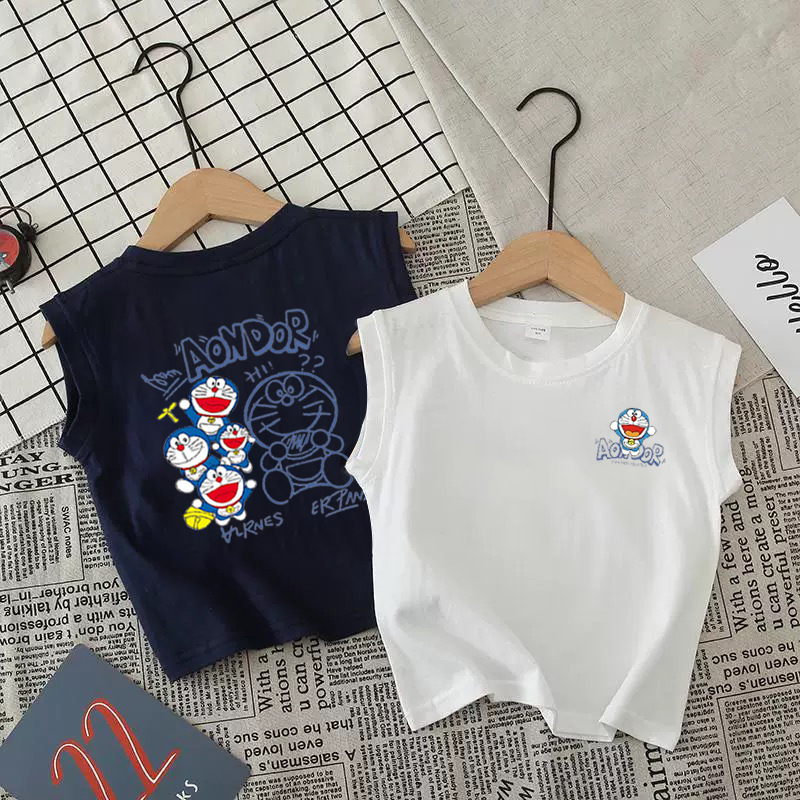 어린이 조끼 순면 민소매 소년과 소녀 탑 중소형 어린이 만화 라운드 넥 조끼 유행 트렌드 코튼 t