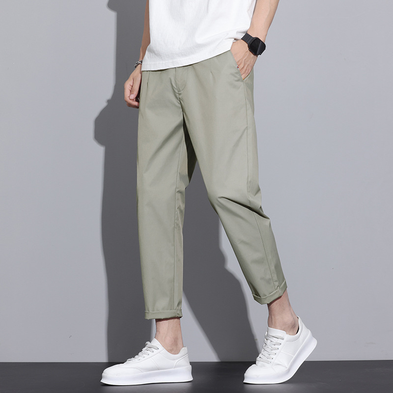 2025 캐주얼 바지 남성용 스트레이트 루즈 한국 패셔너블 간단한 여름 얇은 청소년 자른 하렌 바지스토어 가기