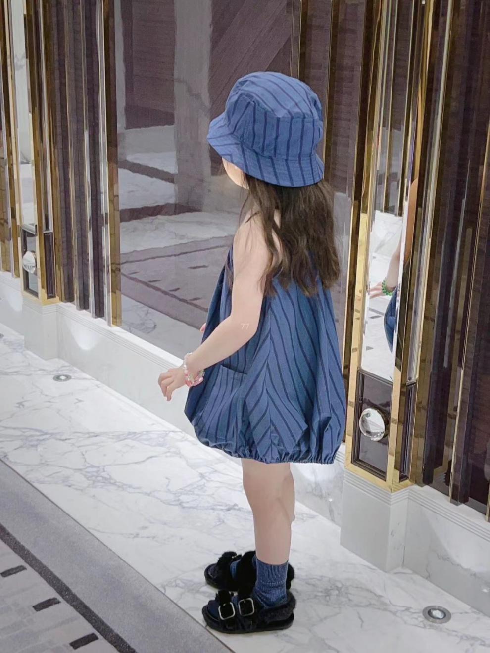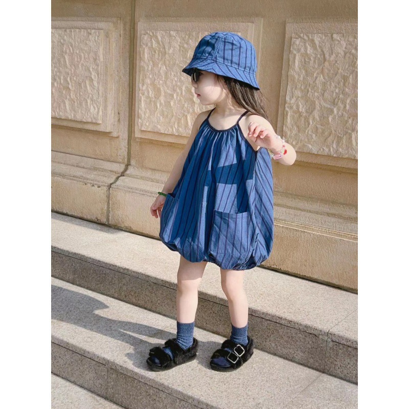 여자 여름 원피스 2025 새로운 여성의 세련된 민소매 수직 스트라이프 포켓 슬링 꽃 버드 스커트스토어 가기