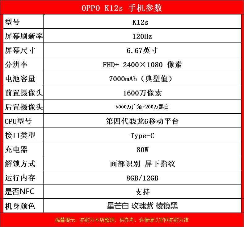 새로운 OPPO K12s 5G 휴대 전화 7000mAh 대형 배터리 AI 휴대 전화 새로운 oppo 휴대 전화 Qualcomm Xiaolong 6