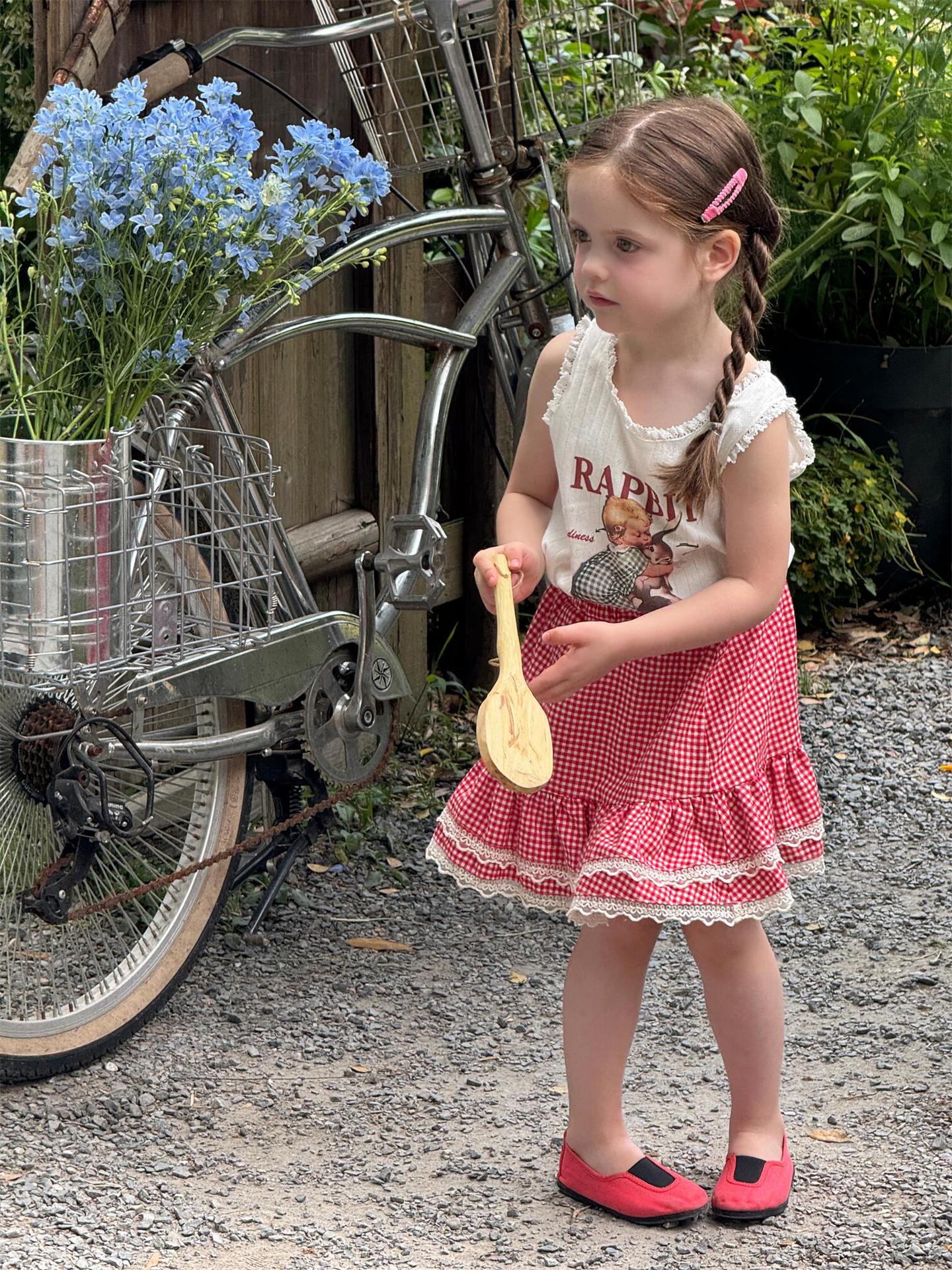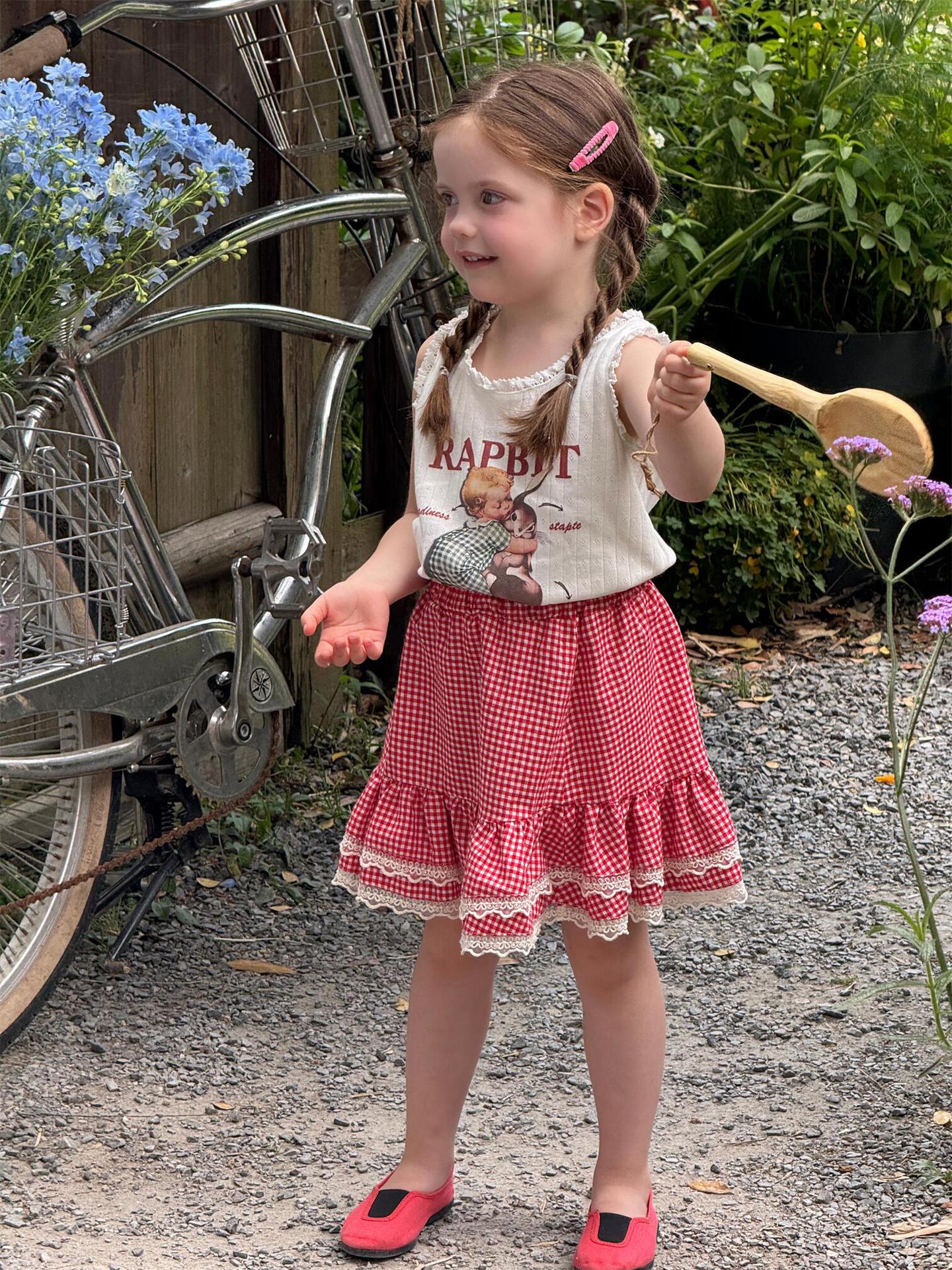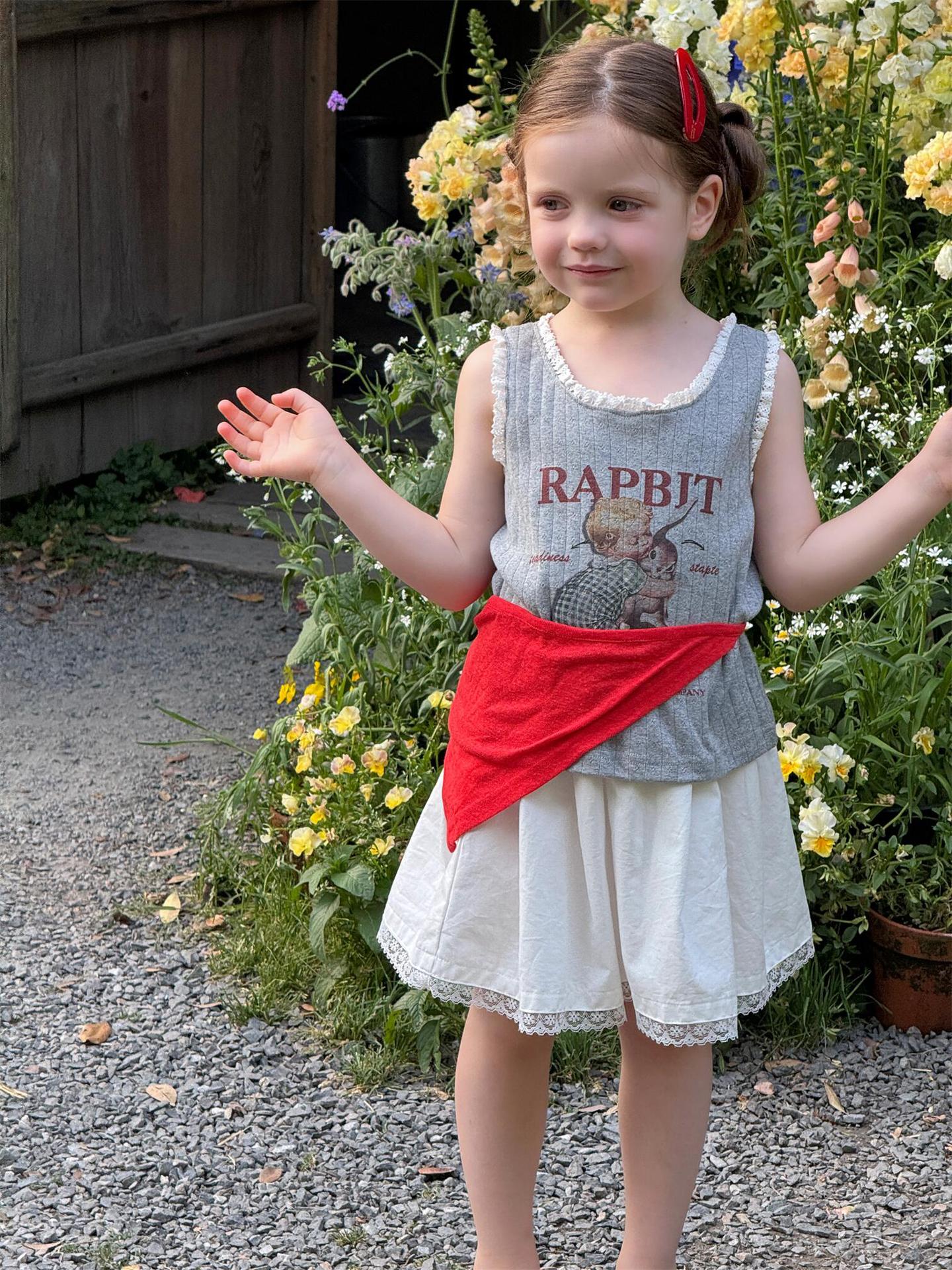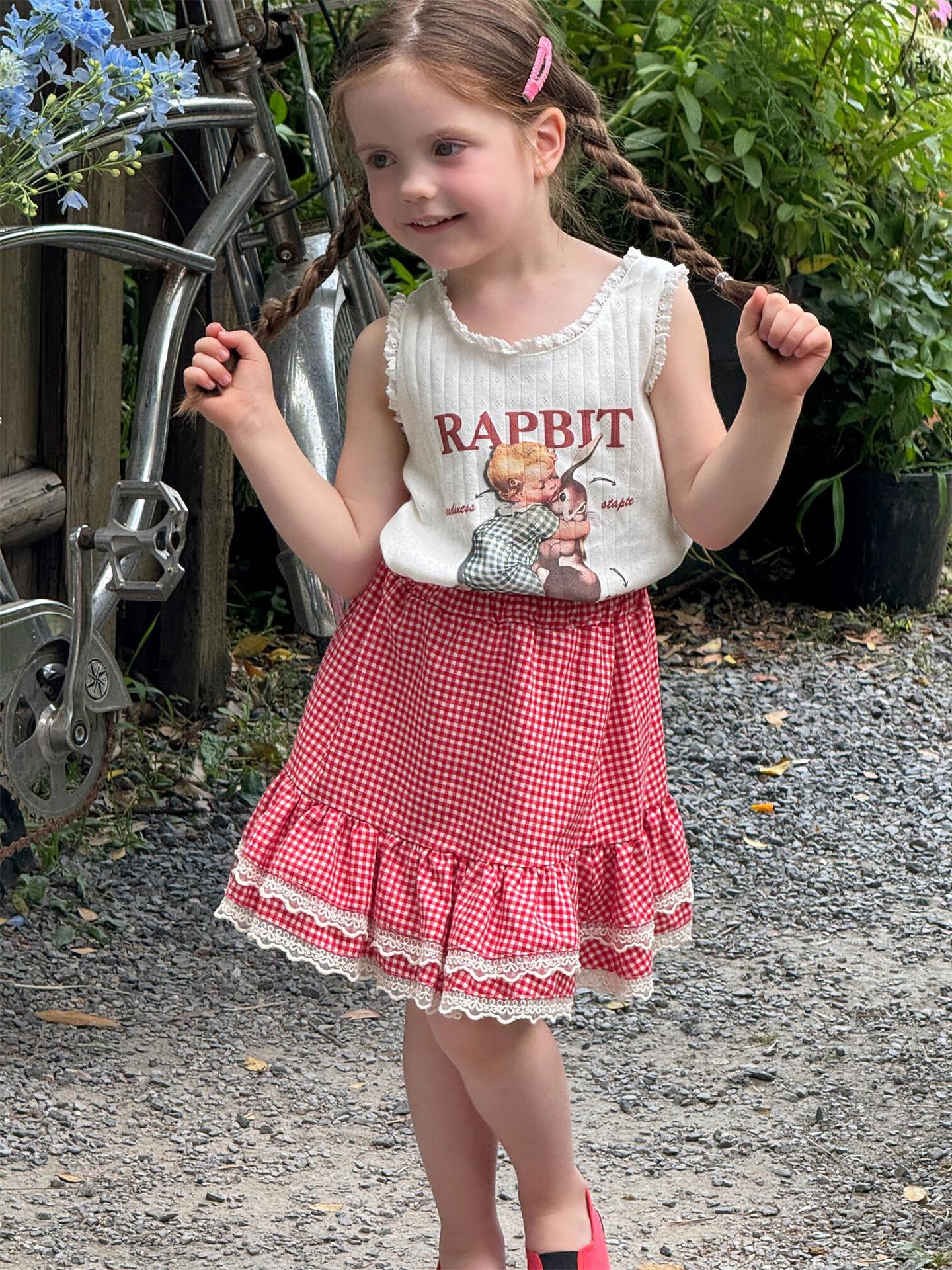 한국 스타일 아동복 2025 여름 새 스타일 소녀 조끼 귀여운 만화 인쇄 민소매 탑 풀오버