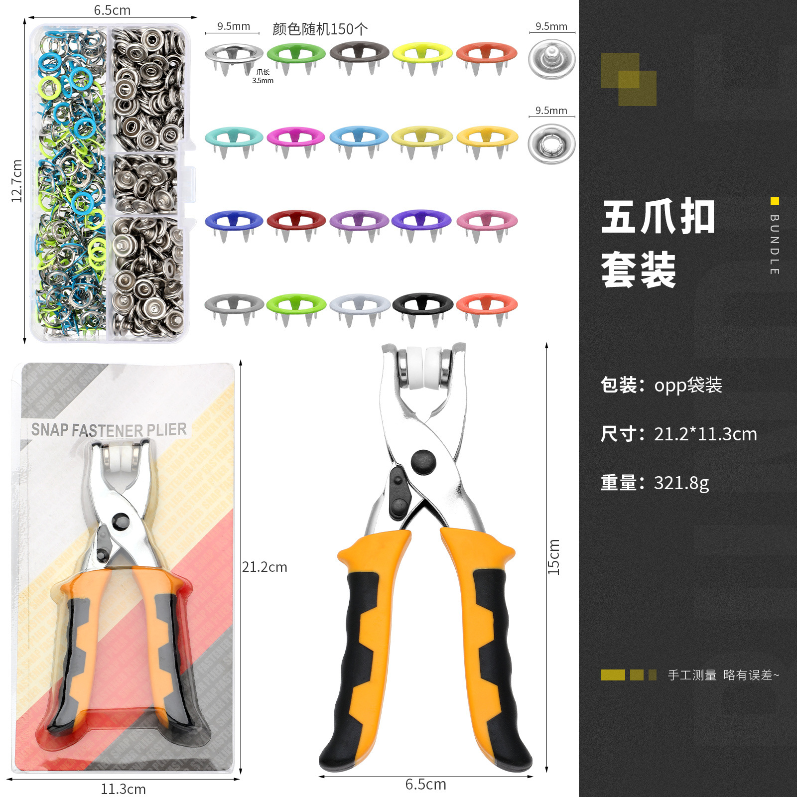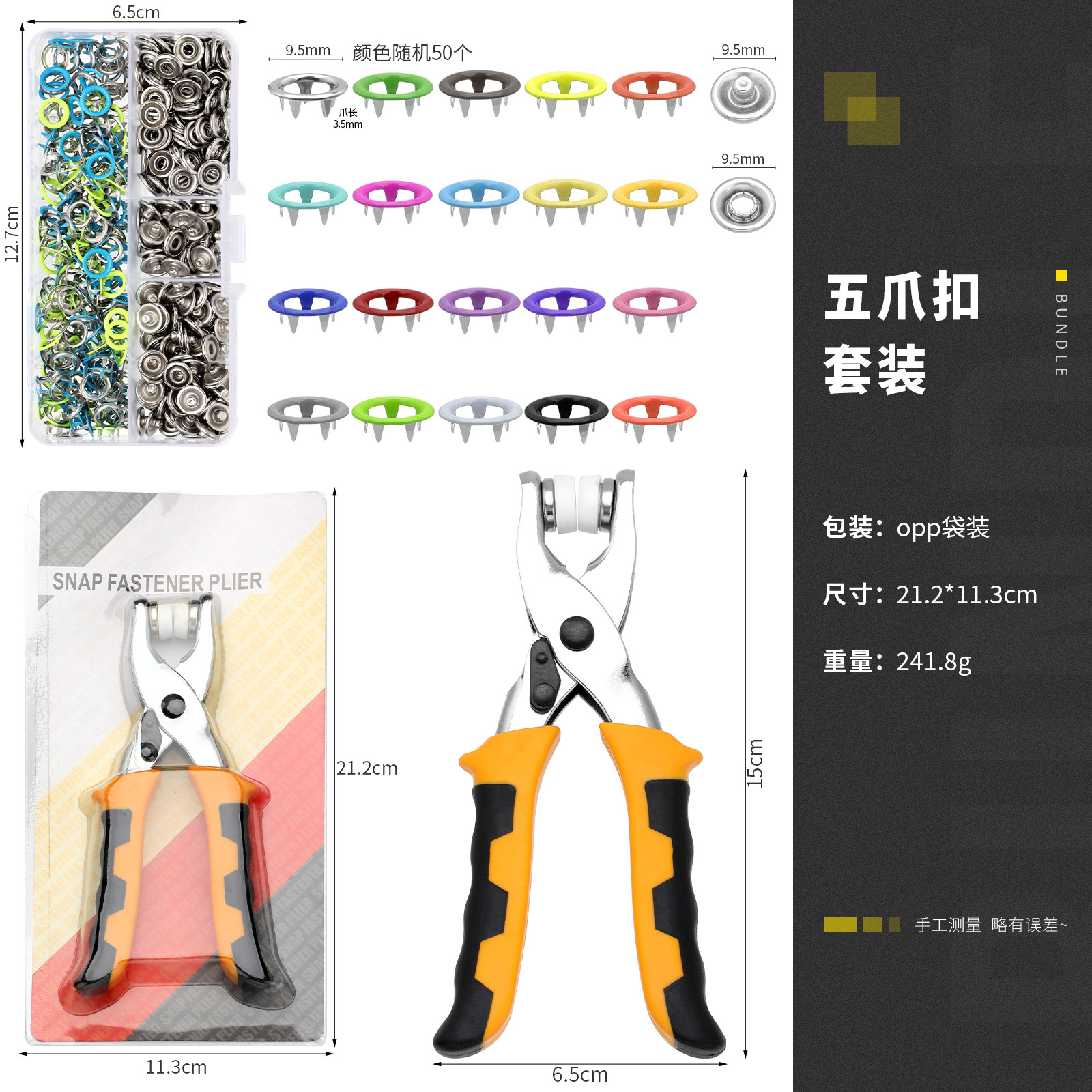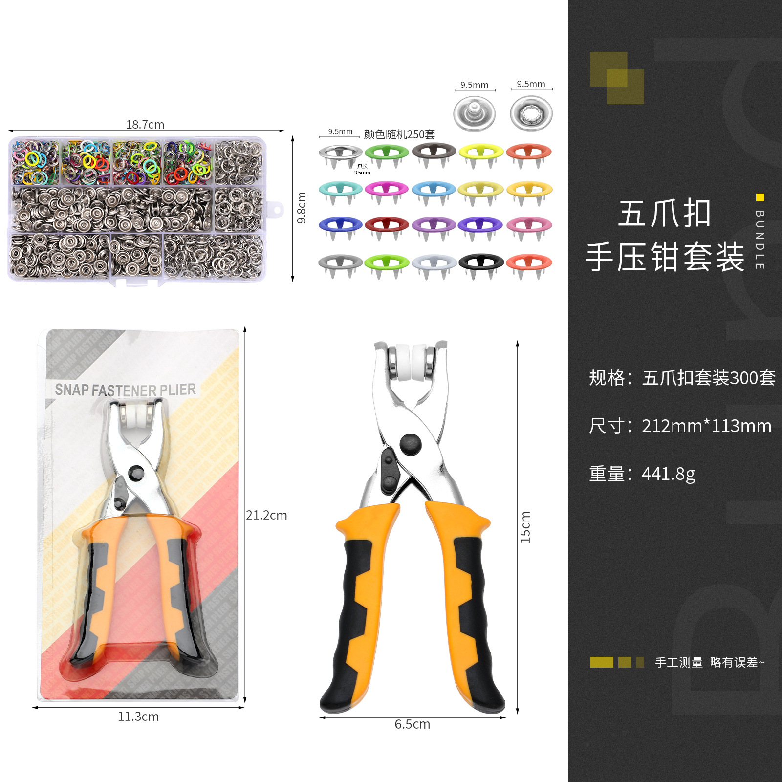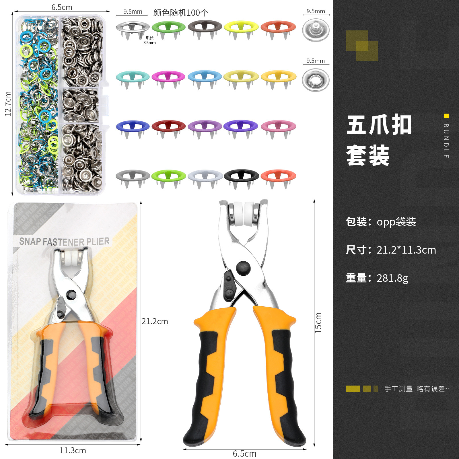 재고 컬러 중공 금속 5 발톱 버클 핸드 프레스 펜치 세트 숨겨진 버클 스냅 버튼 스테인레스 스틸 버클