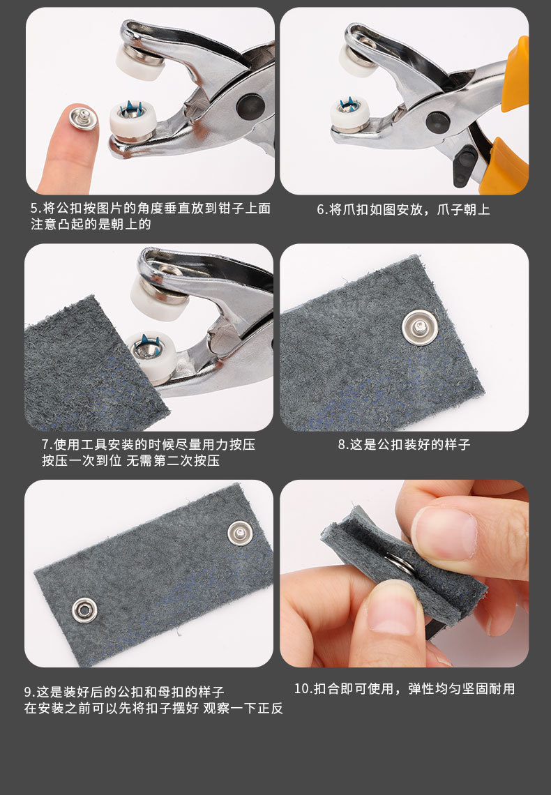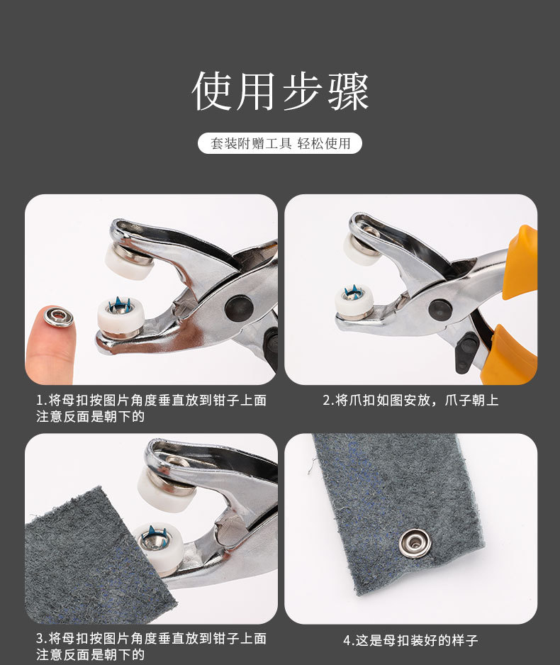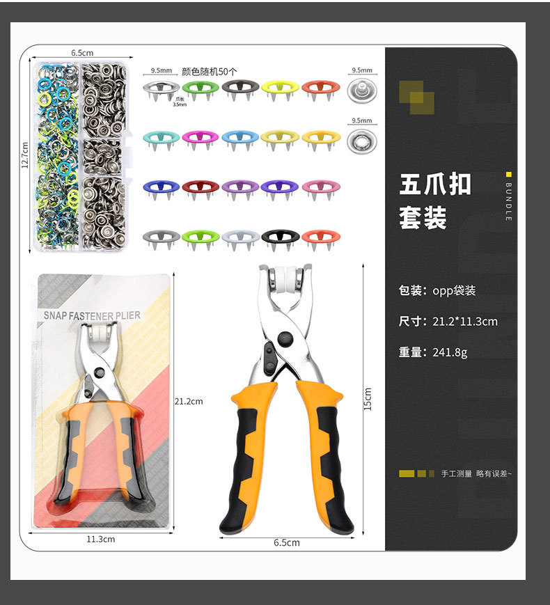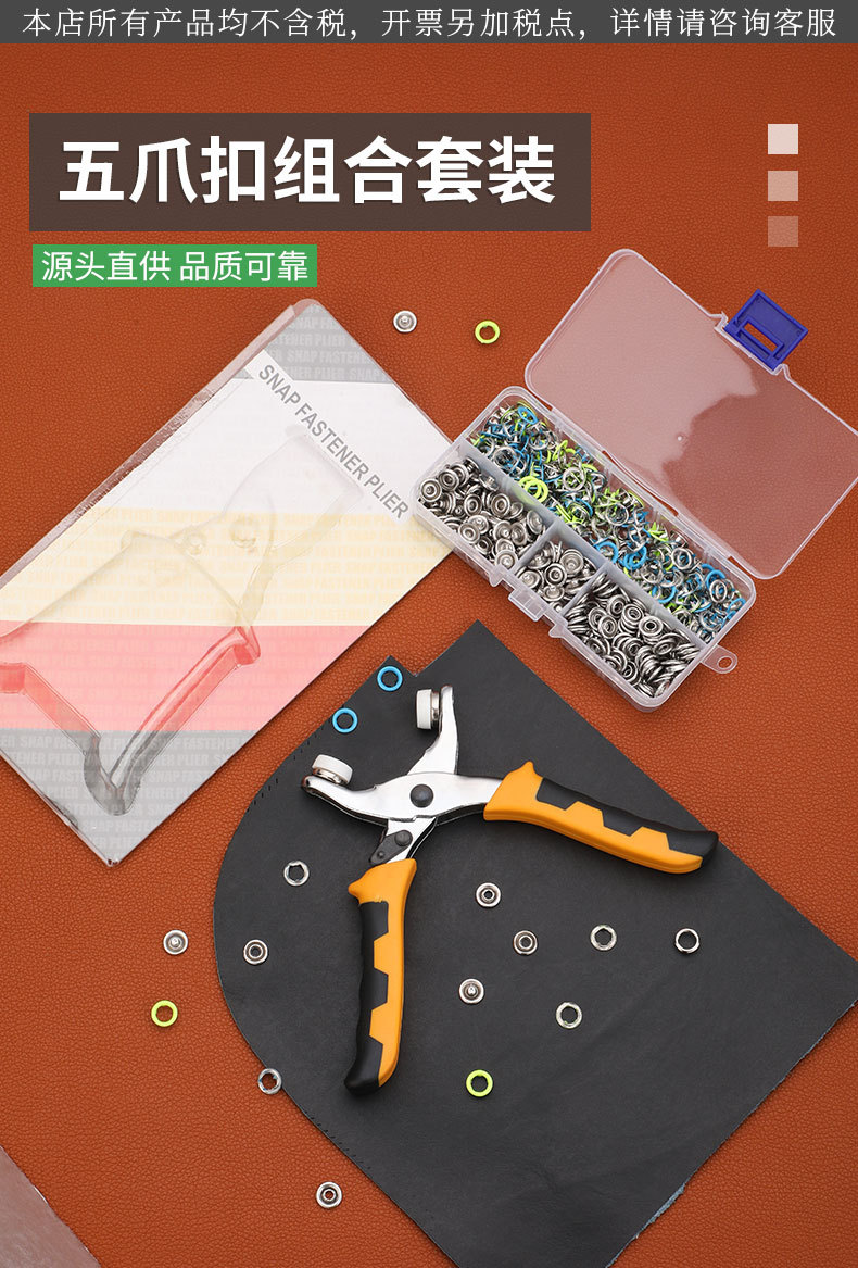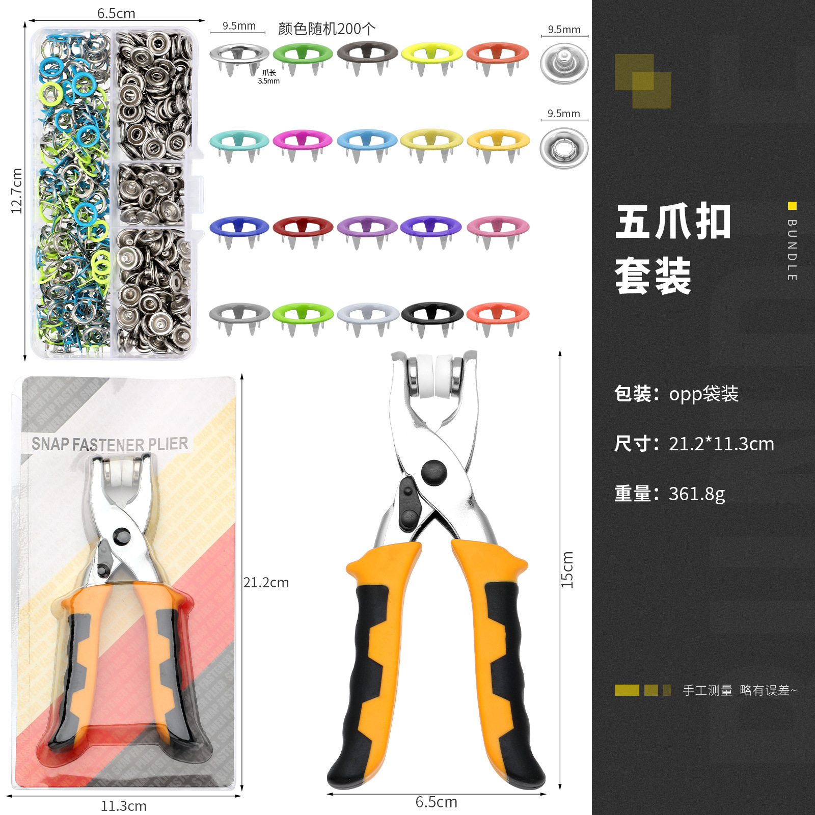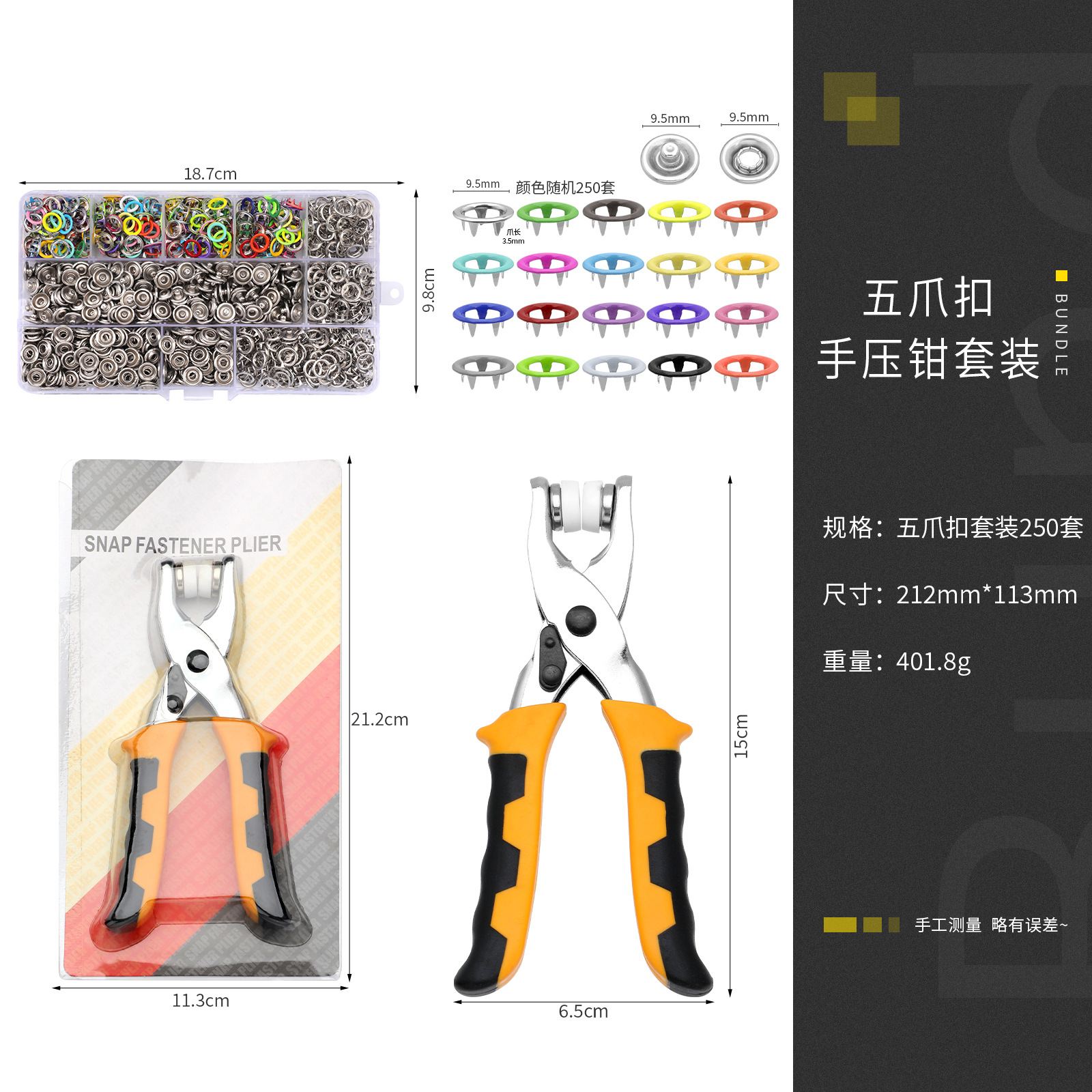 재고 컬러 중공 금속 5 발톱 버클 핸드 프레스 펜치 세트 숨겨진 버클 스냅 버튼 스테인레스 스틸 버클