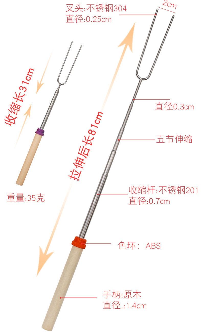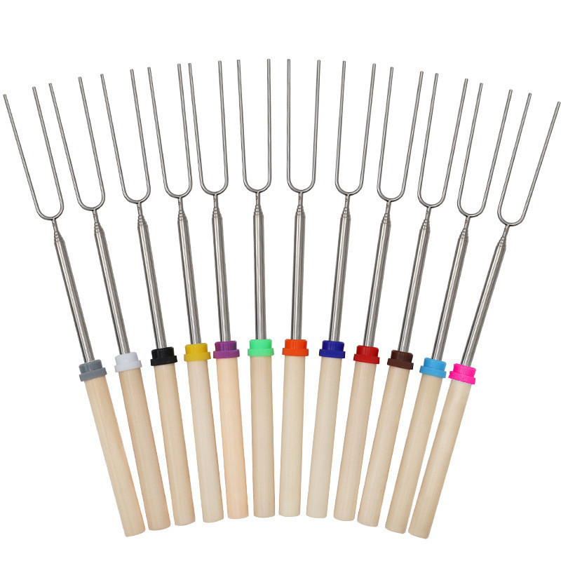 스테인레스 스틸 야외 구운 마시멜로 스틱 레그 텔레스코픽 핫 세일 Q 바베큐 바베큐 포크 스틱 닭 날개 기타