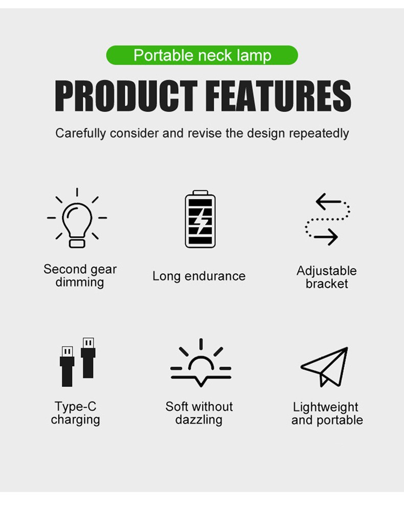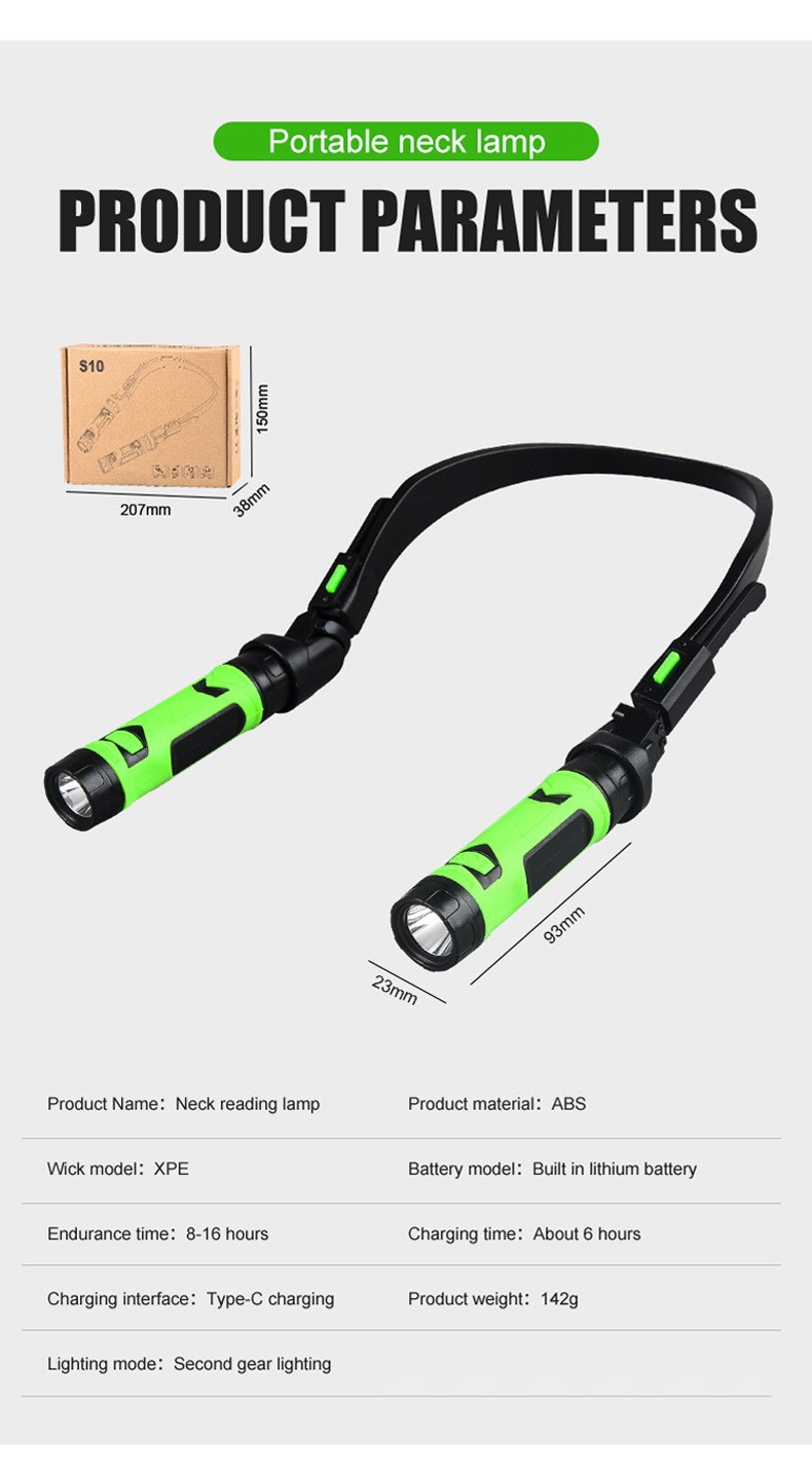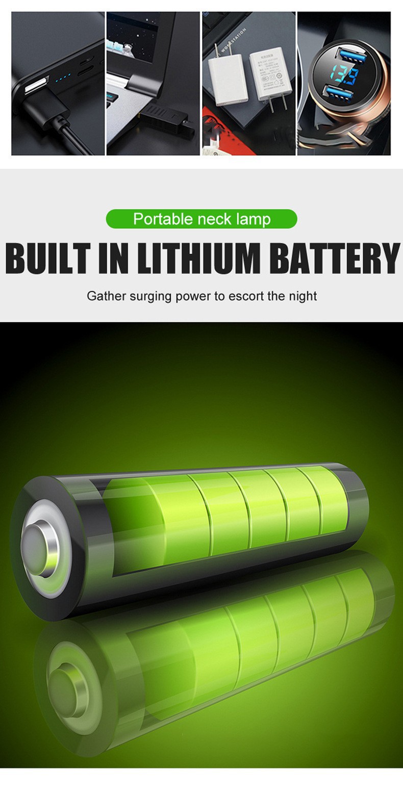 국경 간 USB 충전식 LED 교수형 목 이중 조명 독서 및 학습 조명 야외 캠핑 야간 라이딩 야간 달리기 비상 감지 조명