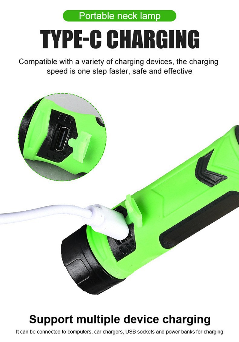국경 간 USB 충전식 LED 교수형 목 이중 조명 독서 및 학습 조명 야외 캠핑 야간 라이딩 야간 달리기 비상 감지 조명스토어 가기