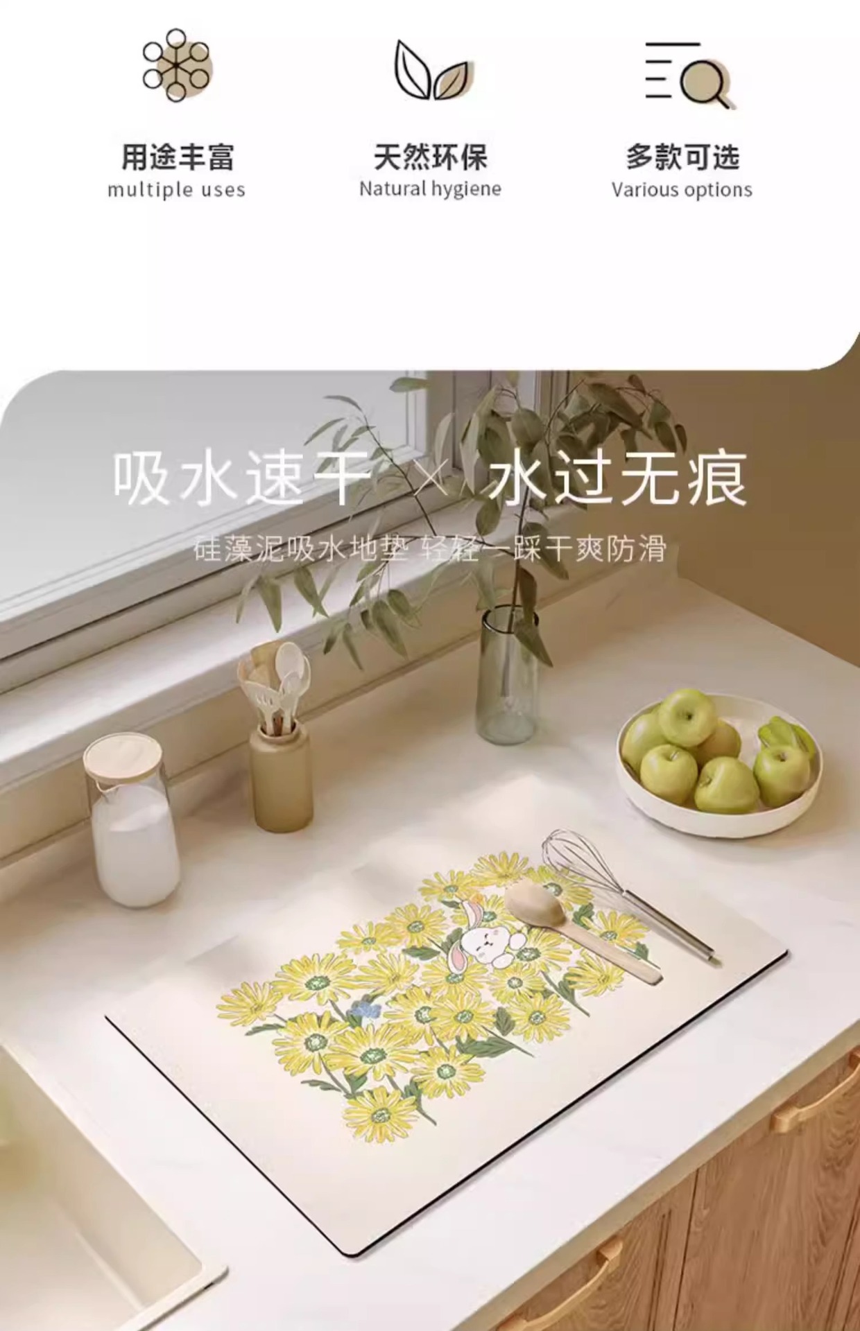 Diatom 진흙 건조 매트 주방 조리대 흡수성 매트 바 코스터 매트 스토브 싱크 무세척 단열스토어 가기