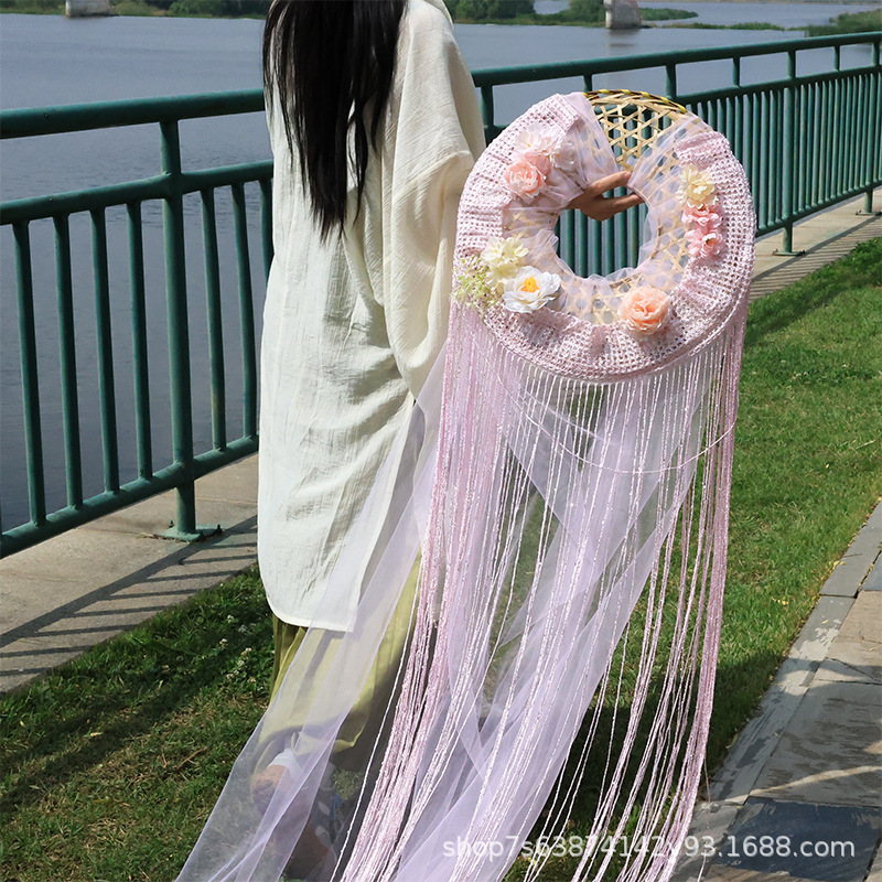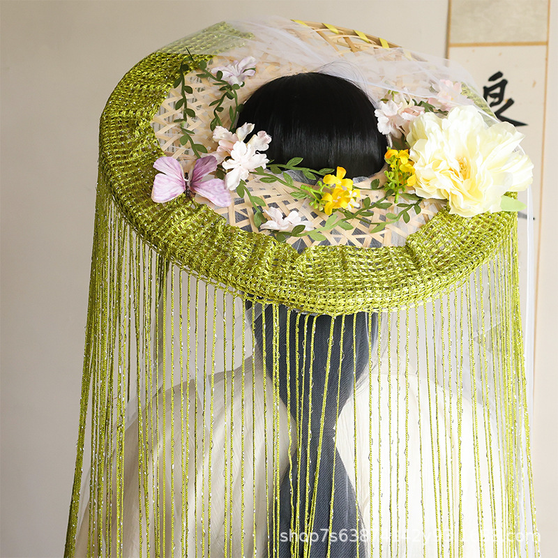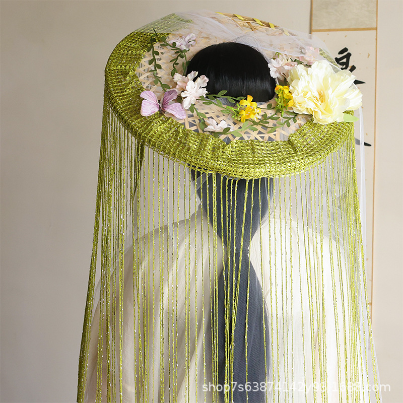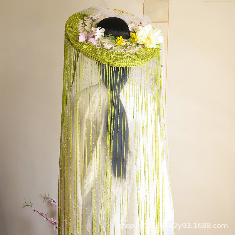 골동품 한푸 슈퍼 요정 윌로우 커튼 모자 술 모자 긴 황혼 헤지 분위기 센스 베일 모자 초상화 모델링 소품