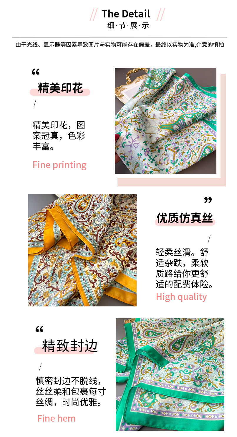 빈티지 캐슈 인쇄 실크 스카프 스퀘어 스카프 고급 목도리 올매치 넥 작은 스퀘어 스카프 여성용 스카프스토어 가기