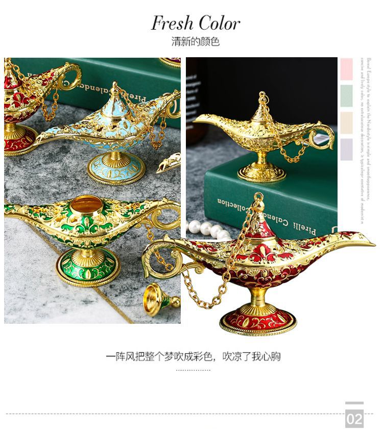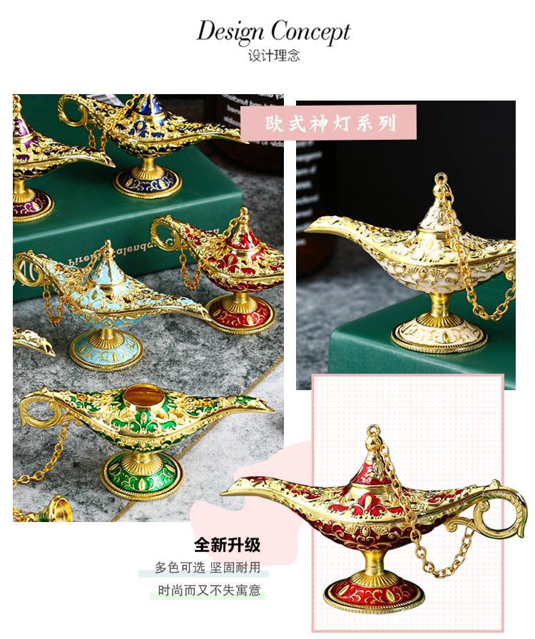 알라딘의 마술 램프 소원 집 복고풍 장식품 빛 럭셔리 소원 램프 창조적 인 장식품 수공예품 소원 마술 램프스토어 가기