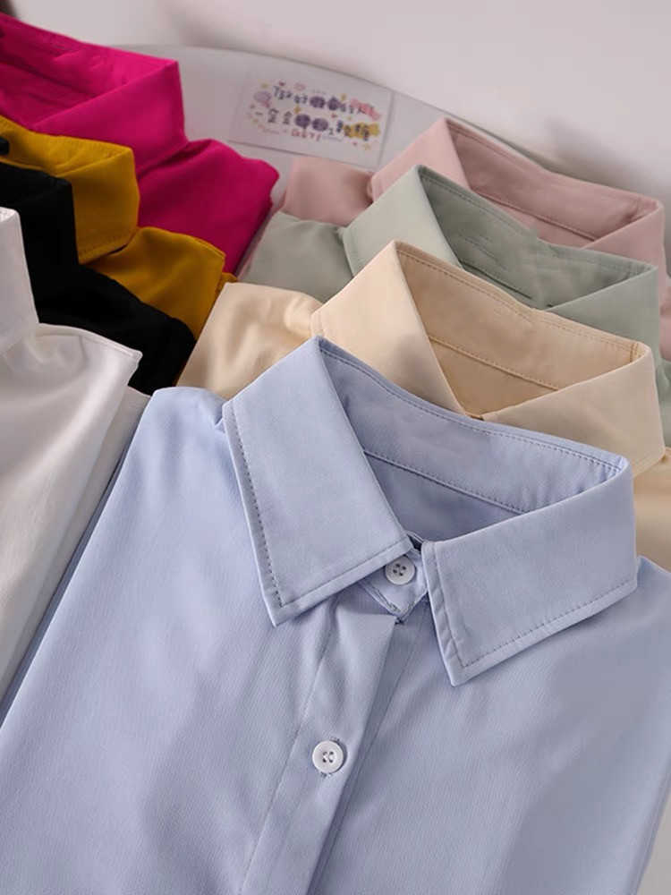여성용 레이지 스타일 폴로 칼라 자외선 차단 셔츠, 긴팔 봄 여름 남자 친구 스타일 중간 길이 루즈 레이어드 탑 재킷스토어 가기