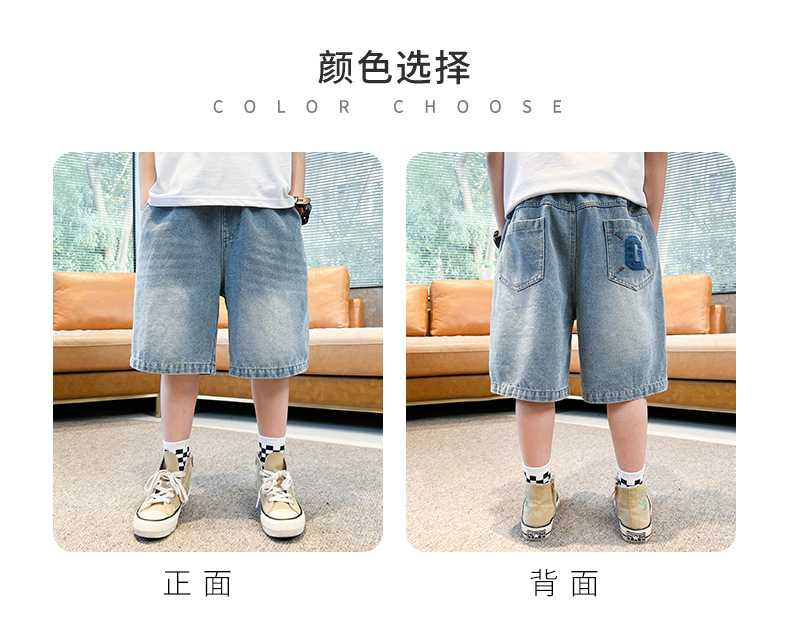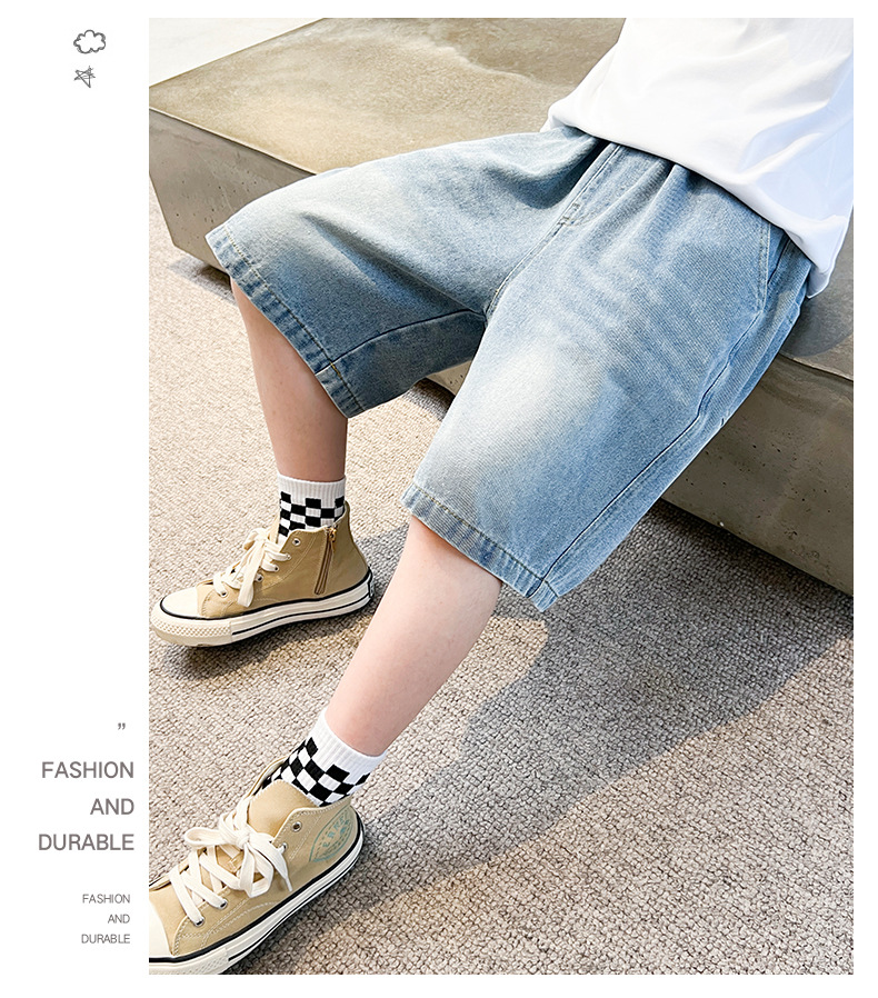 아동복 소년 데님 반바지 여름 2025 새로운 스타일 중대형 어린이 여름 느슨한 바지 소년 5부 중간 바지