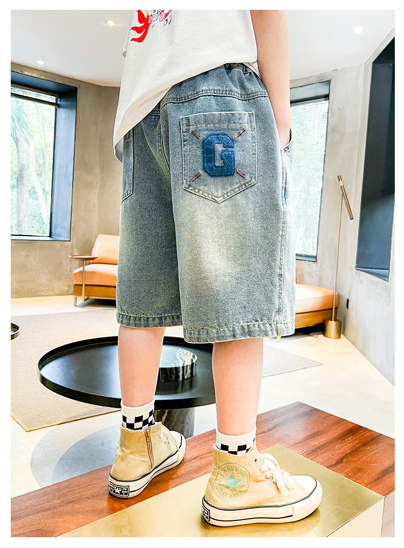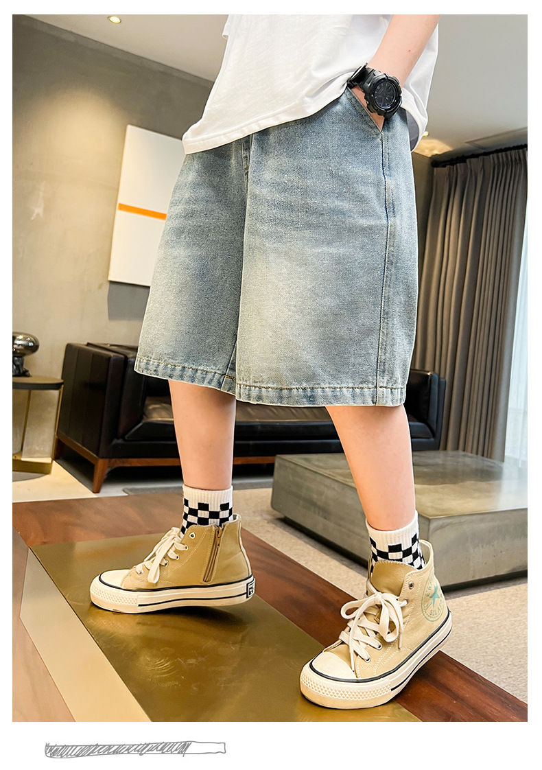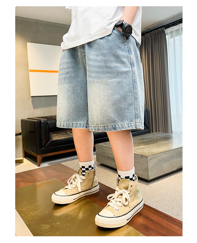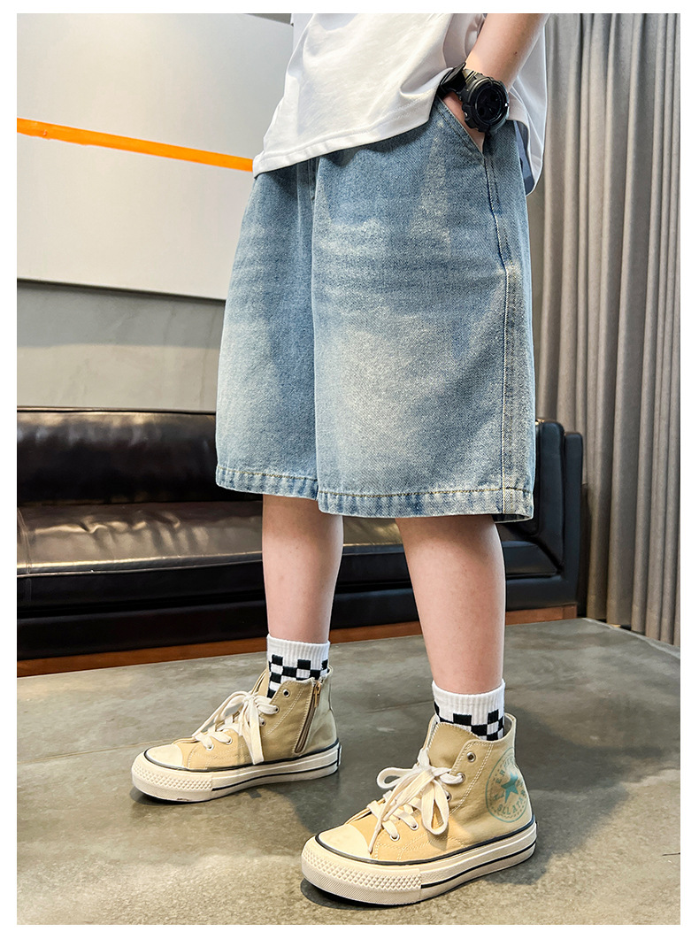 아동복 소년 데님 반바지 여름 2025 새로운 스타일 중대형 어린이 여름 느슨한 바지 소년 5부 중간 바지스토어 가기