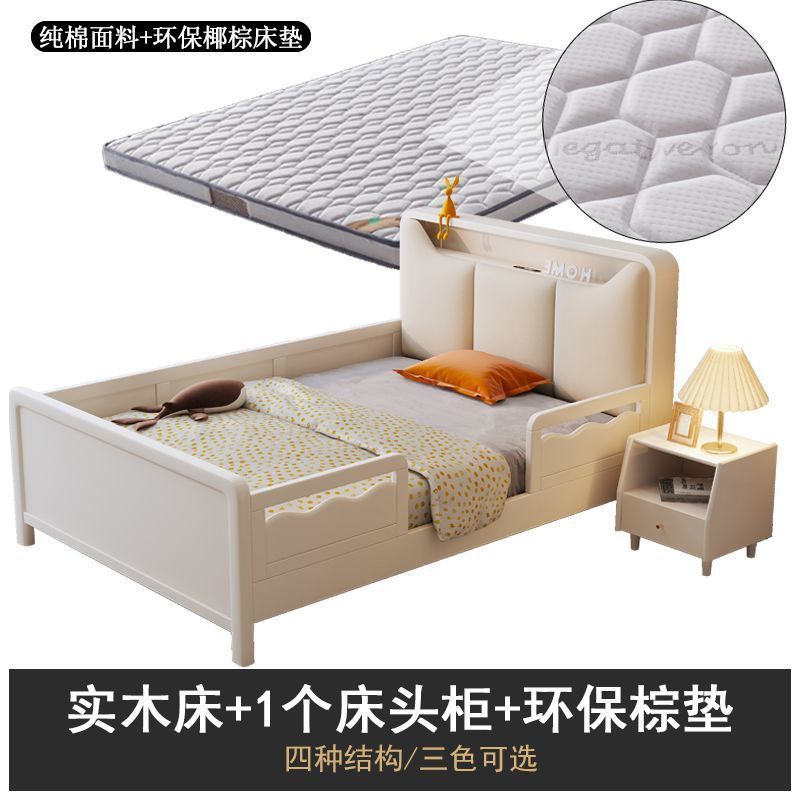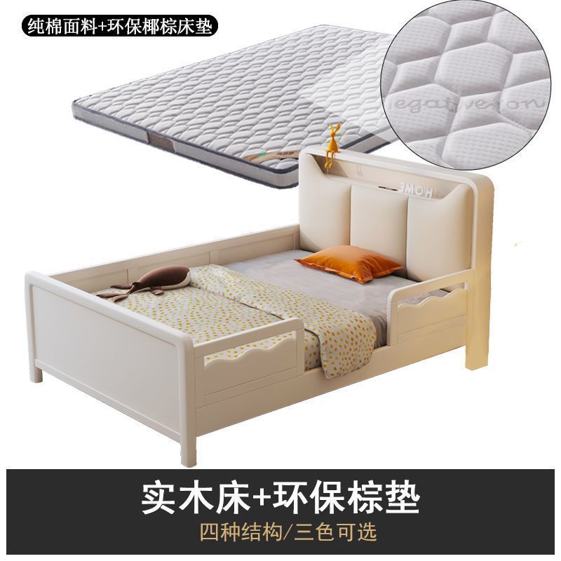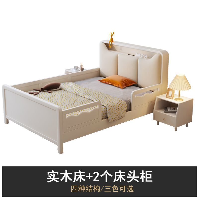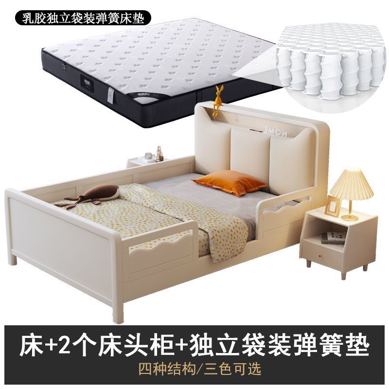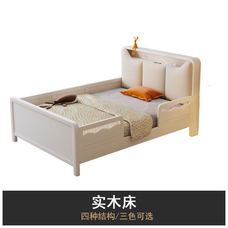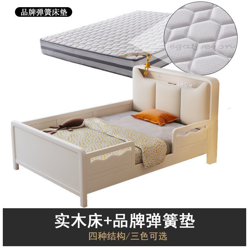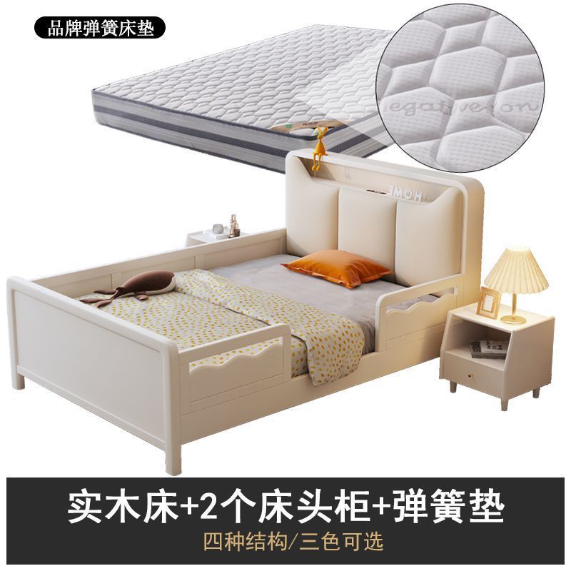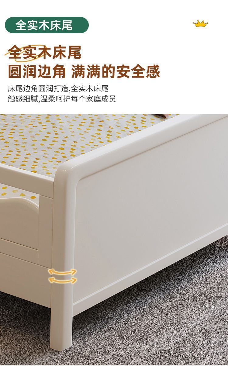 간단한 단단한 나무 침대 어린이 침대 방 마스터 침실 대형 침대 가벼운 럭셔리 흰색 소년과 소녀 보호대