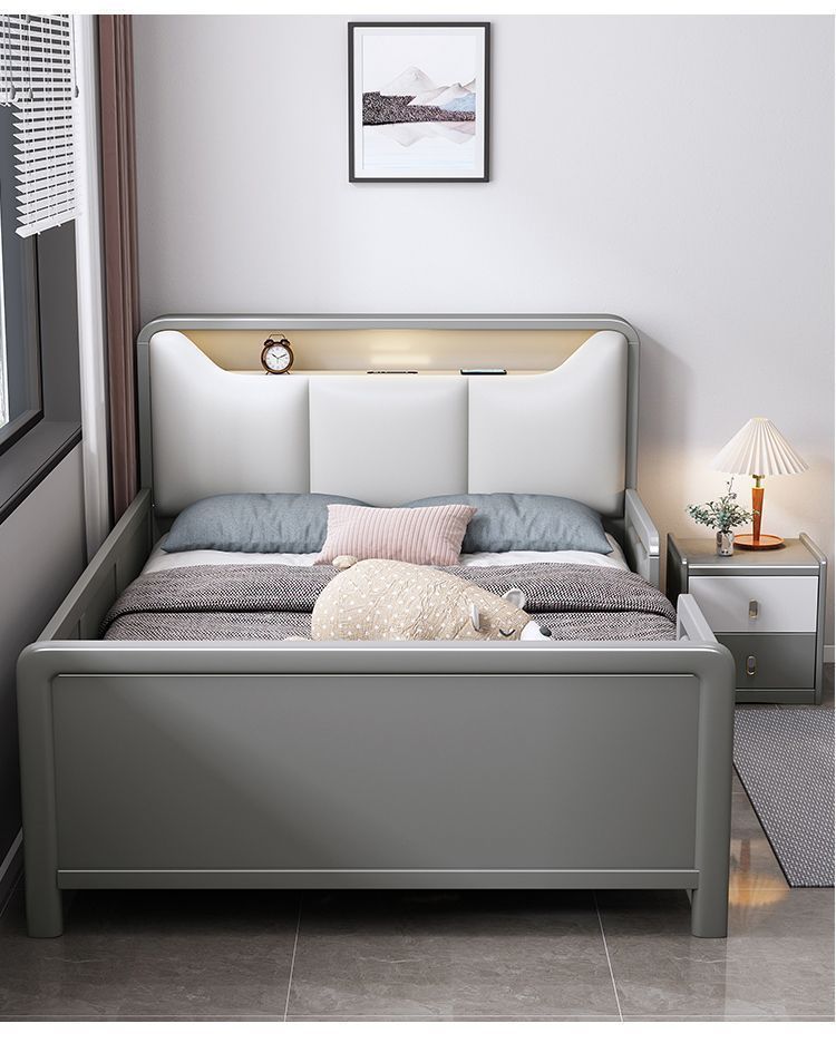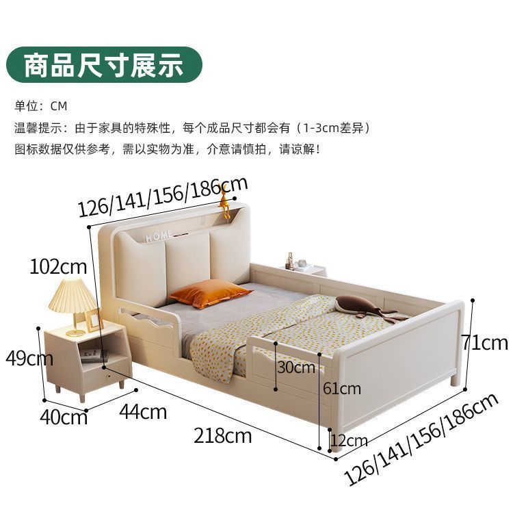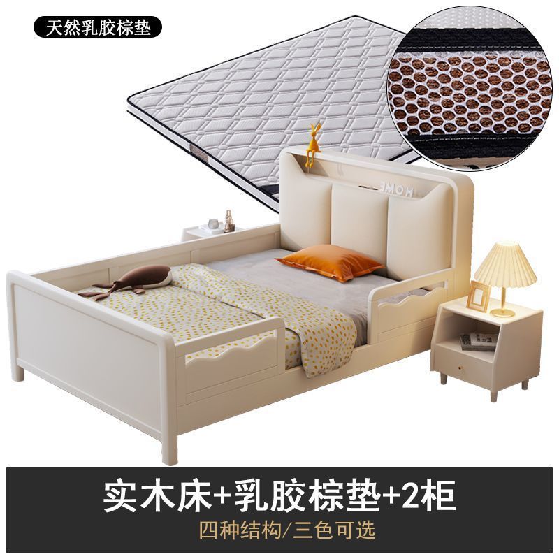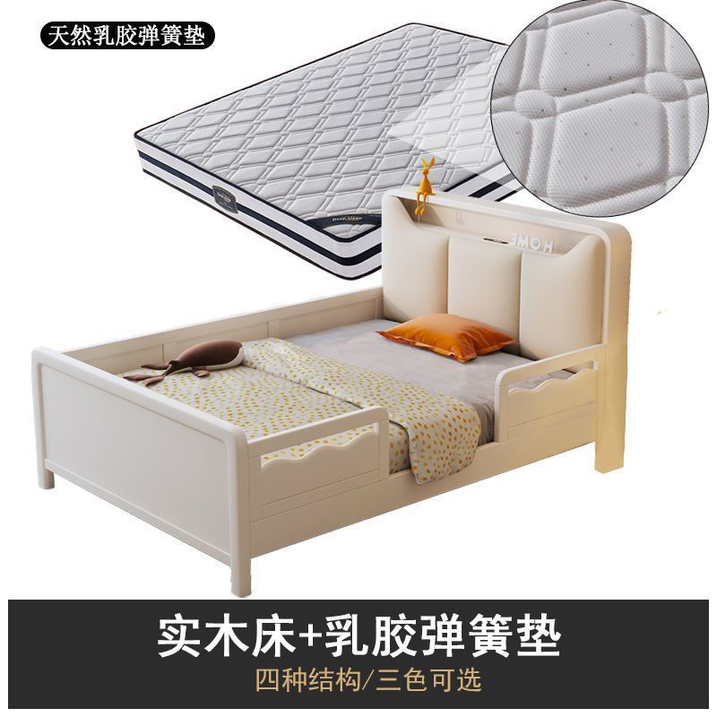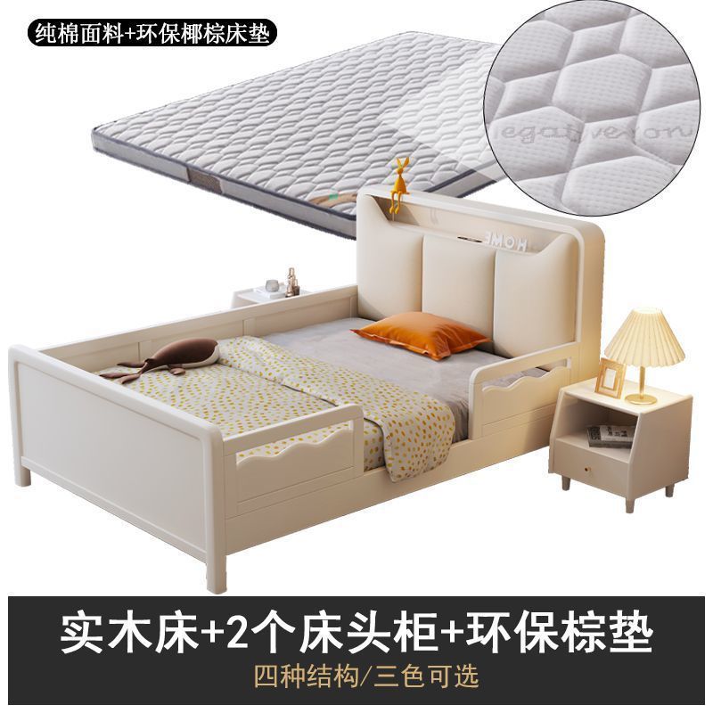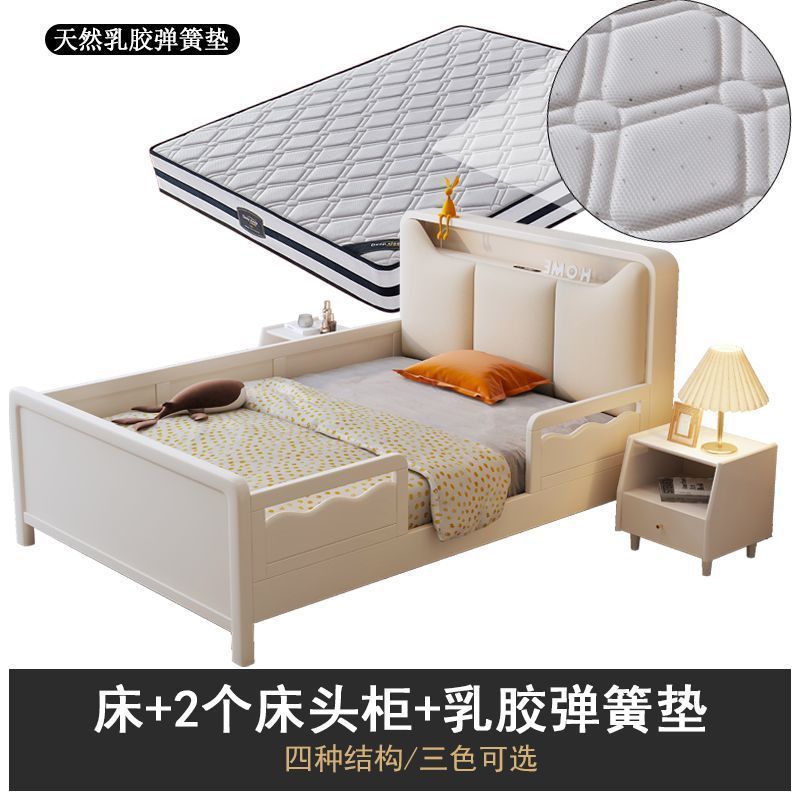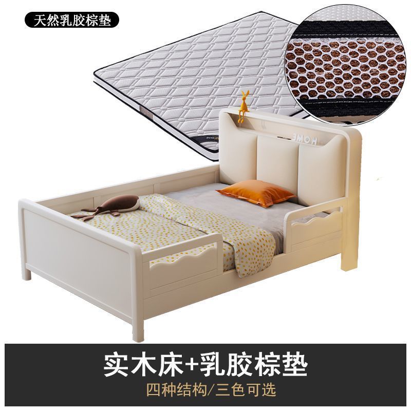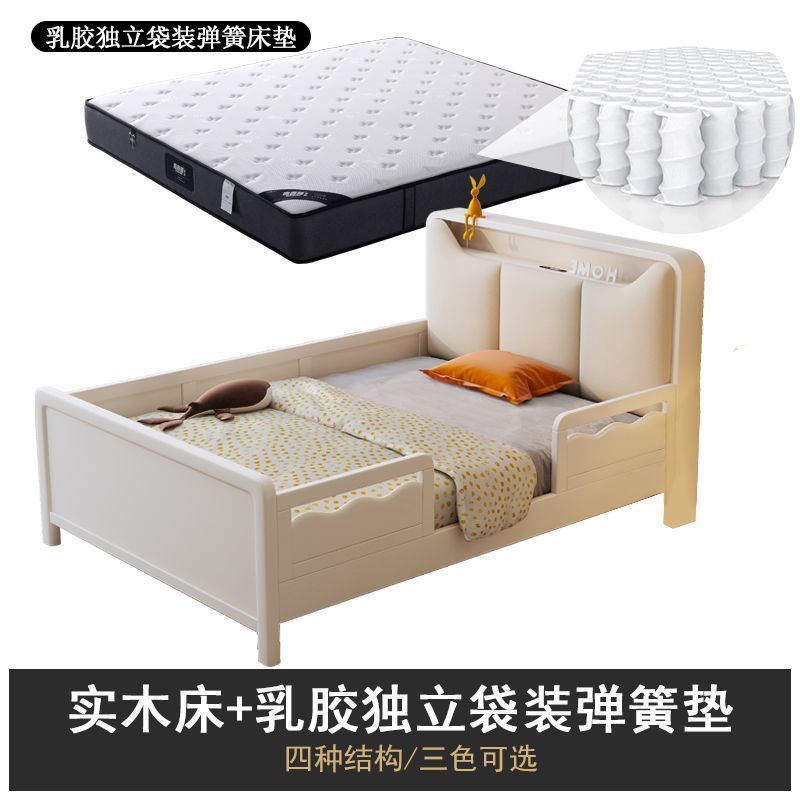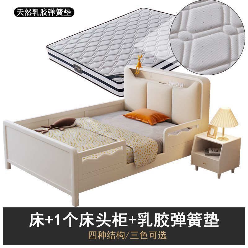 간단한 단단한 나무 침대 어린이 침대 방 마스터 침실 대형 침대 가벼운 럭셔리 흰색 소년과 소녀 보호대
