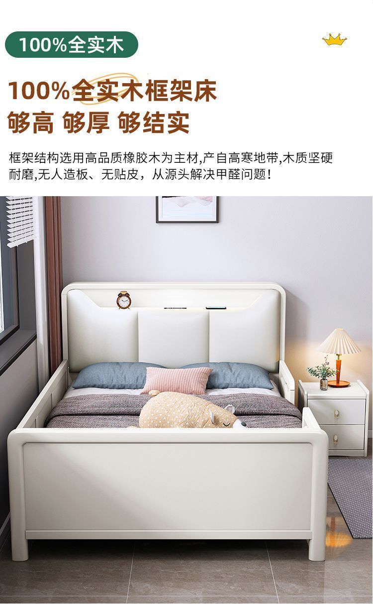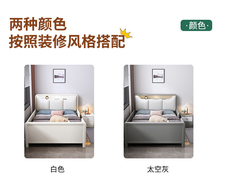 간단한 단단한 나무 침대 어린이 침대 방 마스터 침실 대형 침대 가벼운 럭셔리 흰색 소년과 소녀 보호대스토어 가기