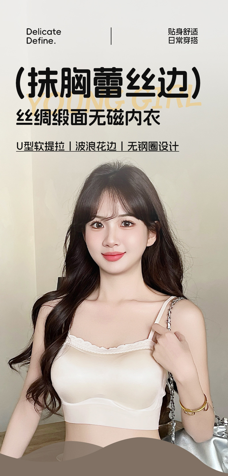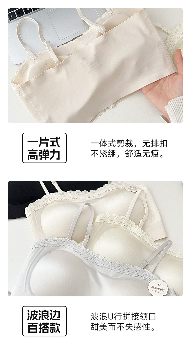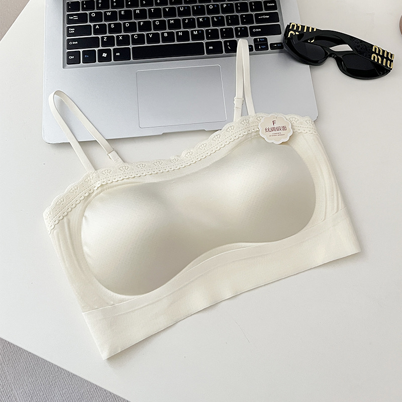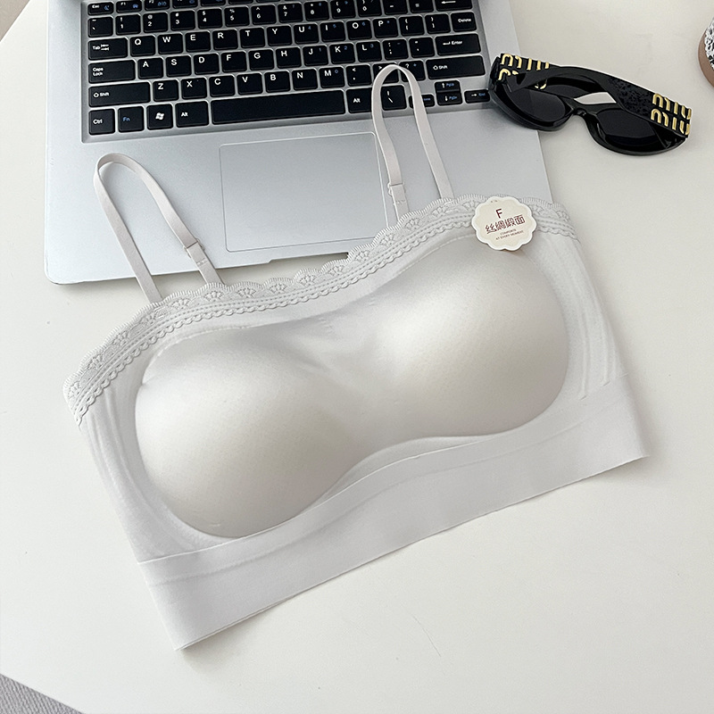 여름 쿨 소녀의 속옷 제로 바운드 스트랩리스 레이스 스틸 링 디자인 실크 새틴 비 자기 속옷
