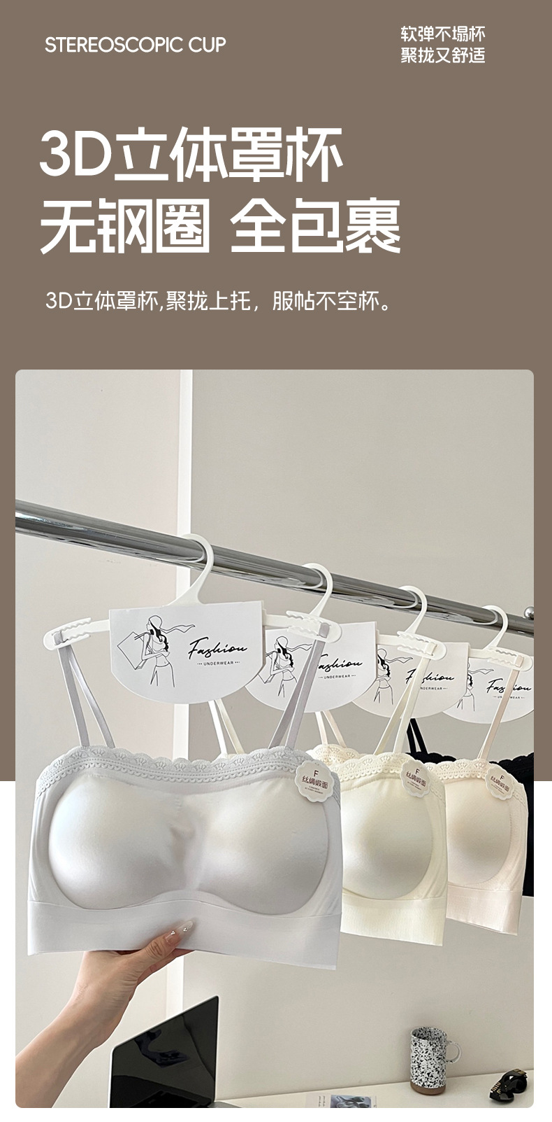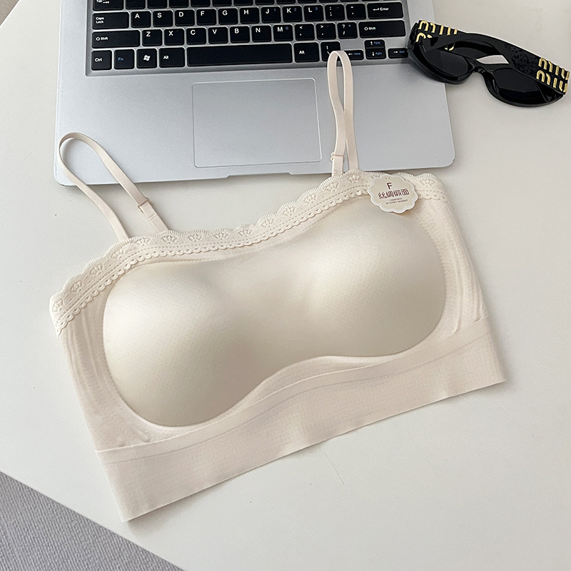 여름 쿨 소녀의 속옷 제로 바운드 스트랩리스 레이스 스틸 링 디자인 실크 새틴 비 자기 속옷스토어 가기