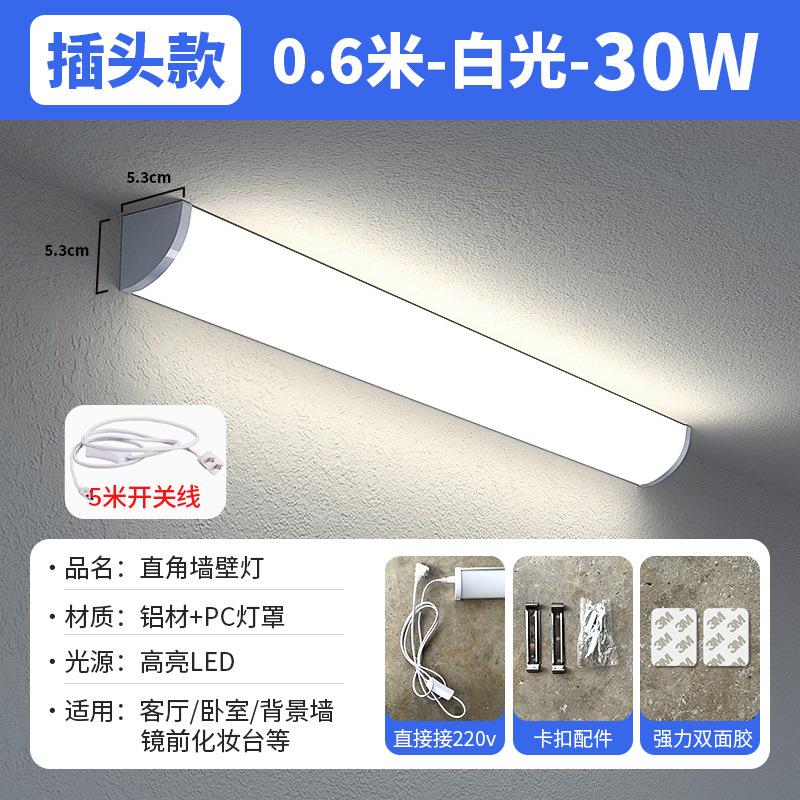 LED 플러그인 긴 벽 램프 홈 90도 직각 벽 램프 계단 머리맡 침실 주방 코너 램프 조명