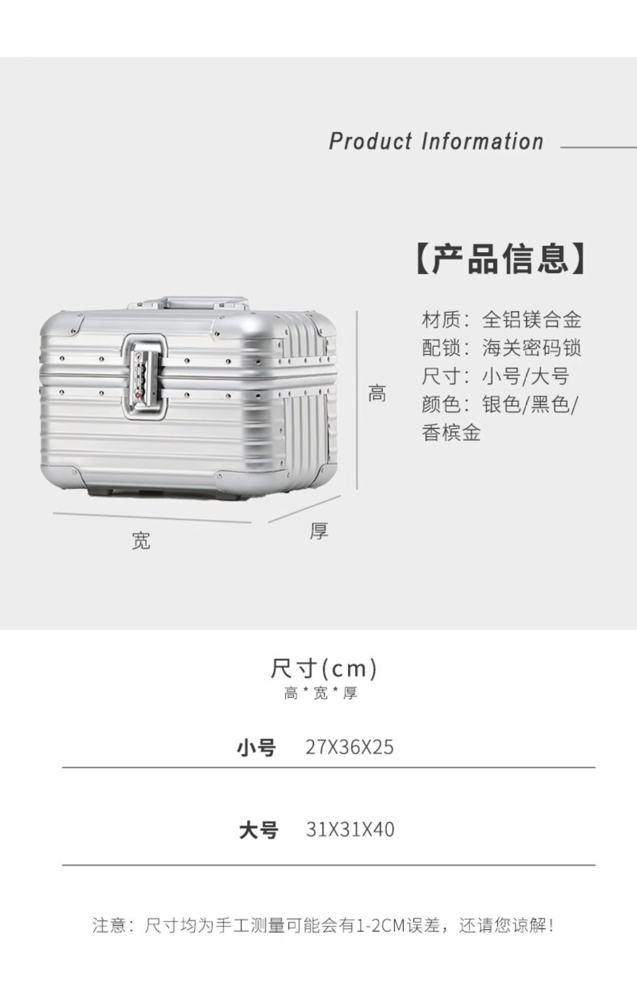 모든 마그네슘 알루미늄 합금 화장품 케이스 14inch 미니 경량 휴대용 뷰티 백 12비밀번호 여행용 탑승 케이스 도구 상자