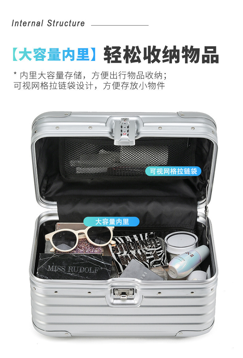 모든 마그네슘 알루미늄 합금 화장품 케이스 14inch 미니 경량 휴대용 뷰티 백 12비밀번호 여행용 탑승 케이스 도구 상자스토어 가기