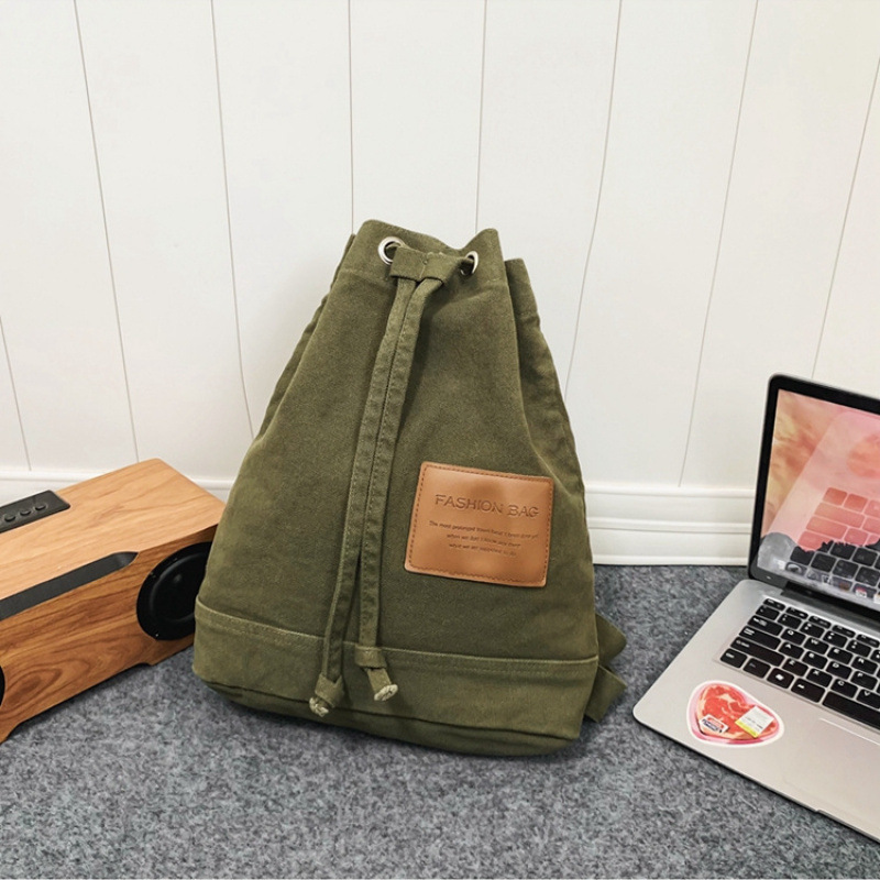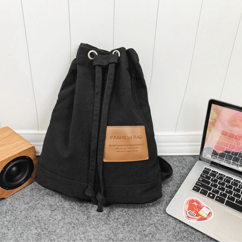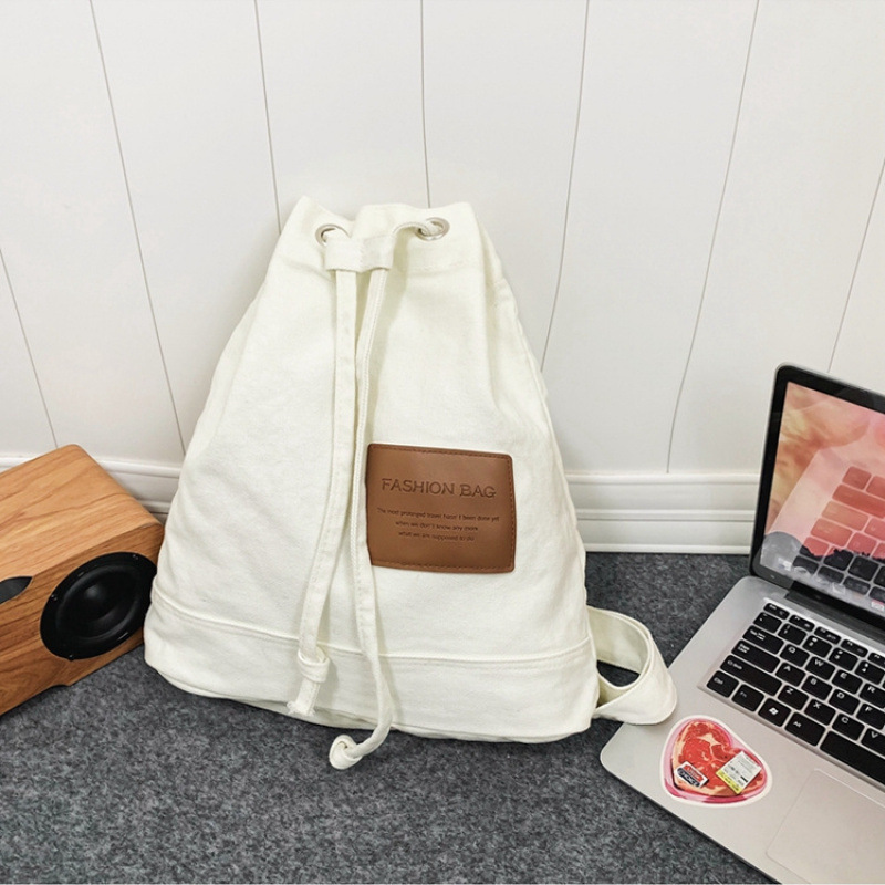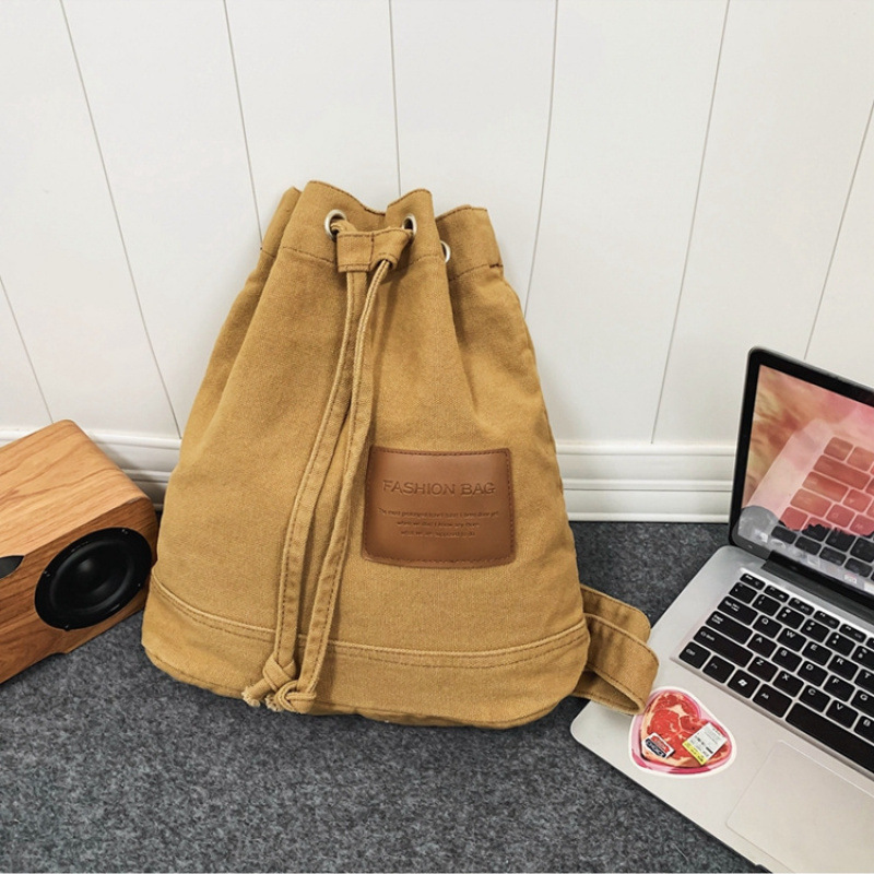 드로우 스트링 백팩 여성 캔버스 백 2025 새로운 간단한 모리 스타일 한국 백팩 번들 포켓 레트로 학생 스쿨백스토어 가기