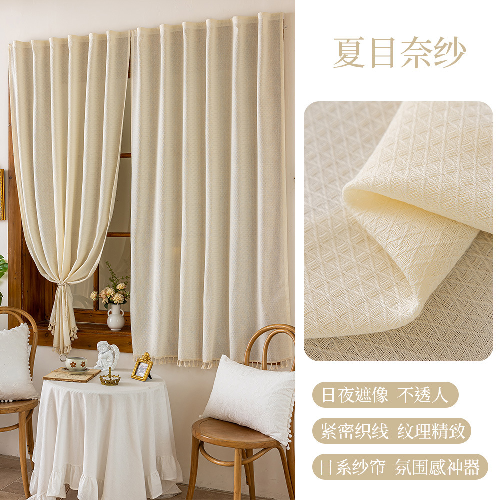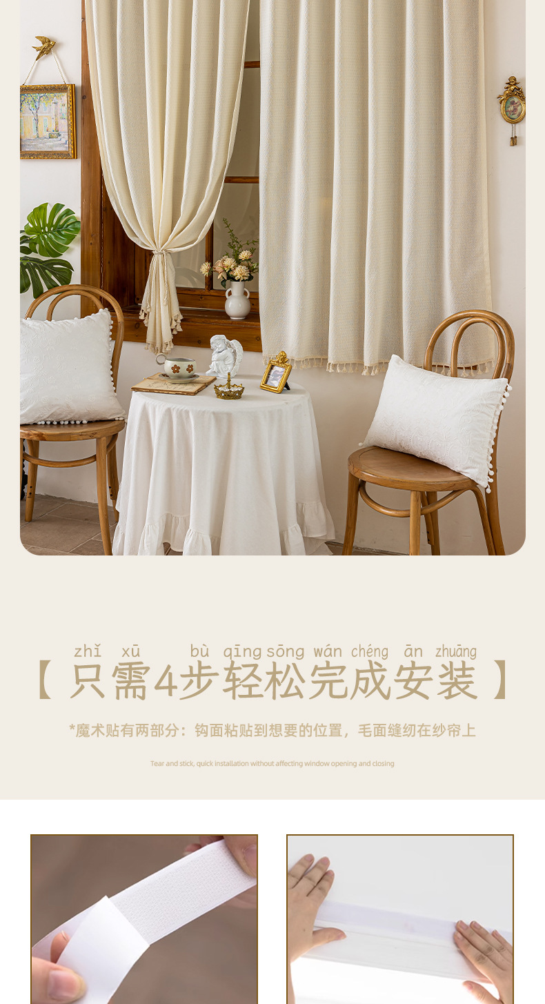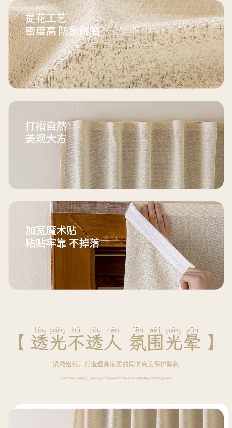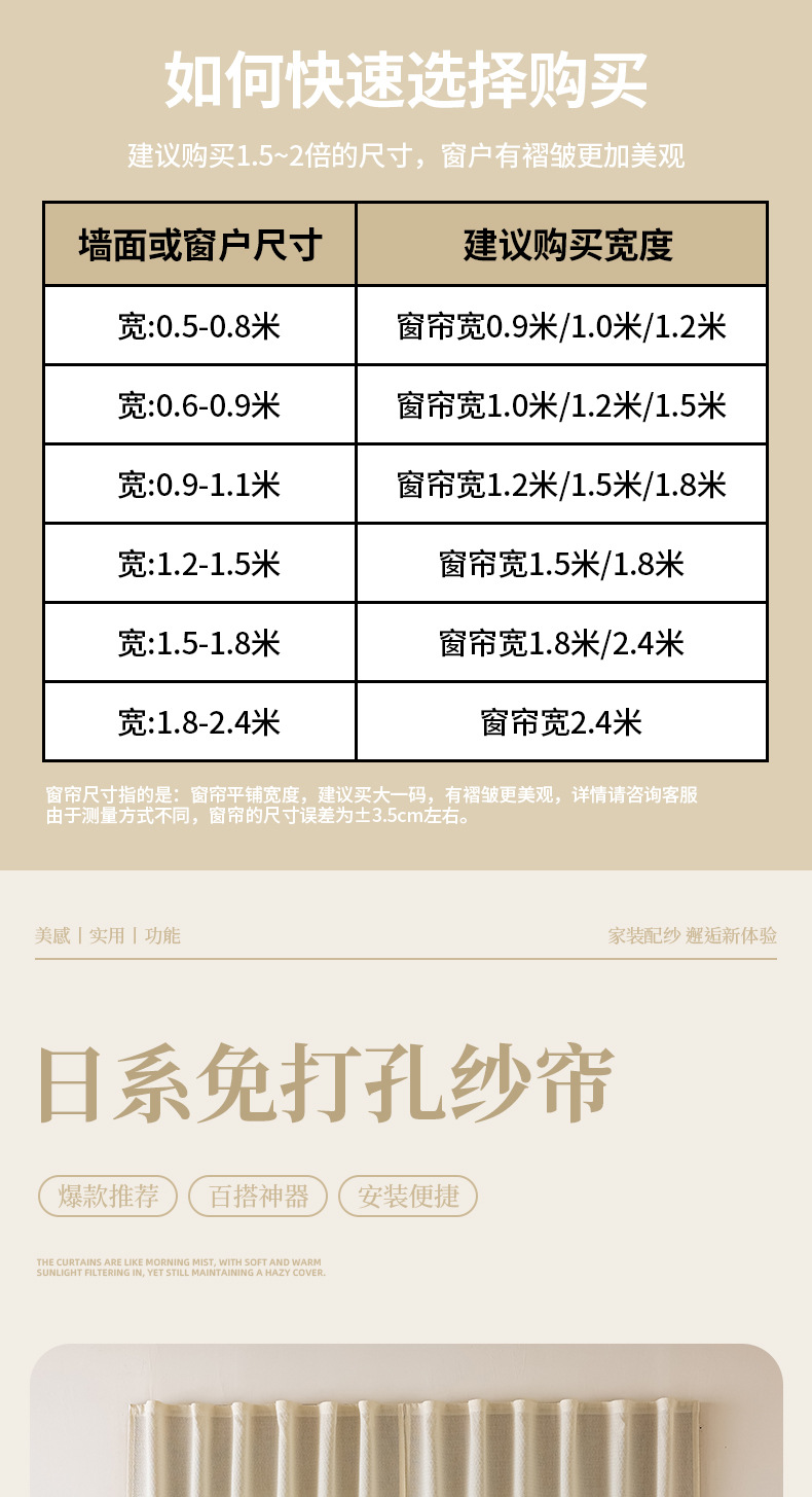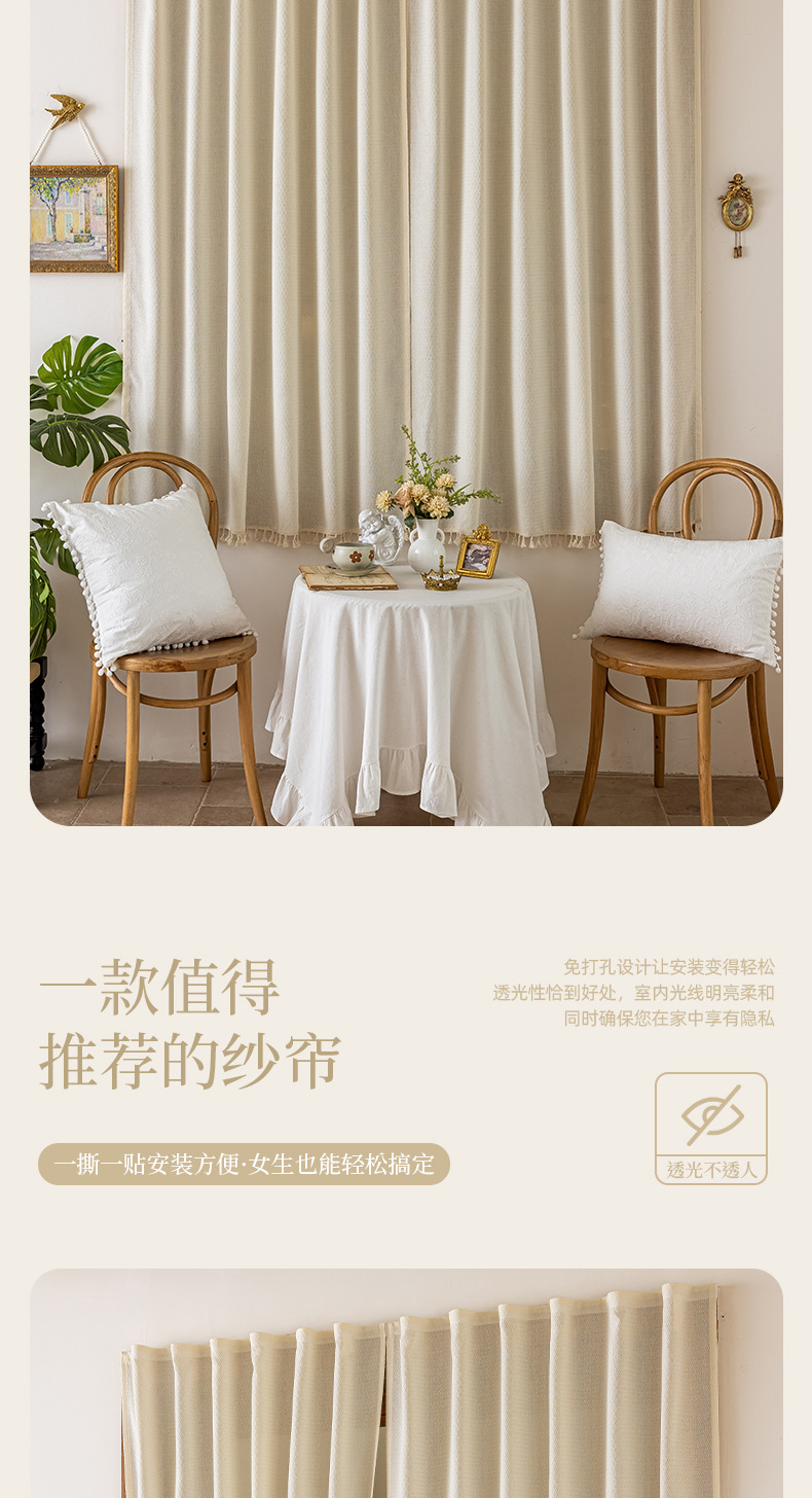 일본식 벨크로 거즈 커튼 투명한 관통형 커튼 비 천공 설치 짧은 하프 커튼 양산 문 커튼 베이 창 천스토어 가기