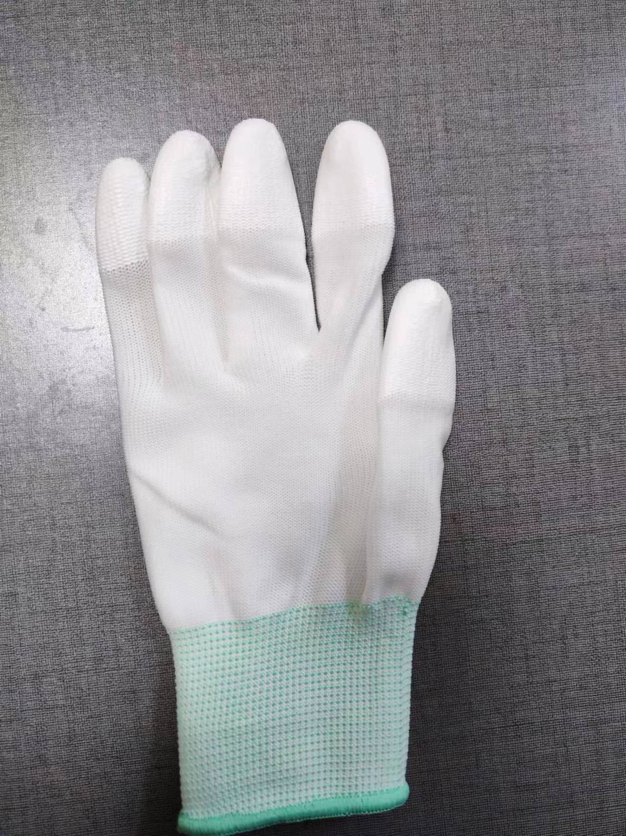 나일론 흰색 PU 코팅 손가락 장갑, 고무 함침 노동 보호 장갑, 터치 스크린 두꺼운 정전기 방지 손가락 장갑, 부드러운스토어 가기