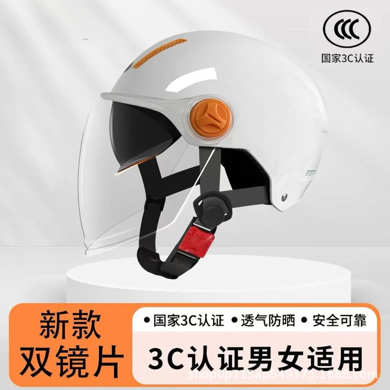 신형 국가 표준 인증 이중 렌즈 전기 자전거 헬멧 남녀 공용 자외선 차단 반헬멧 안전모 라이딩 고화질 렌즈