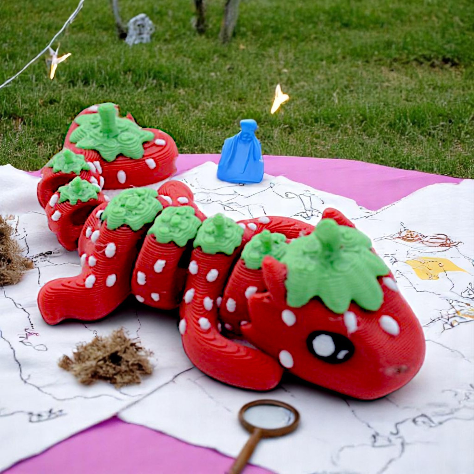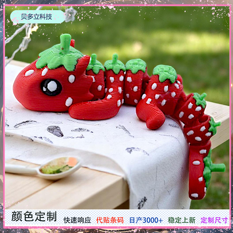跨境新款3d打印复活节装饰品摆件创意礼物仿真可爱草莓龙儿童玩具